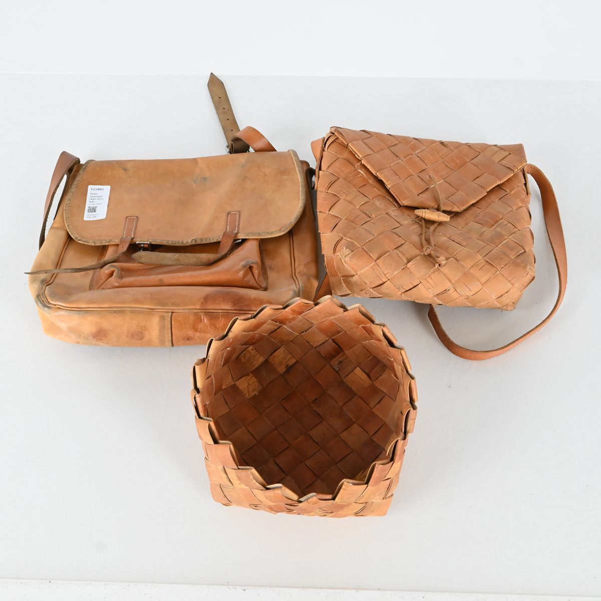 Bilder Väska näverslöjd, väska skinn, skål näverslöjd
