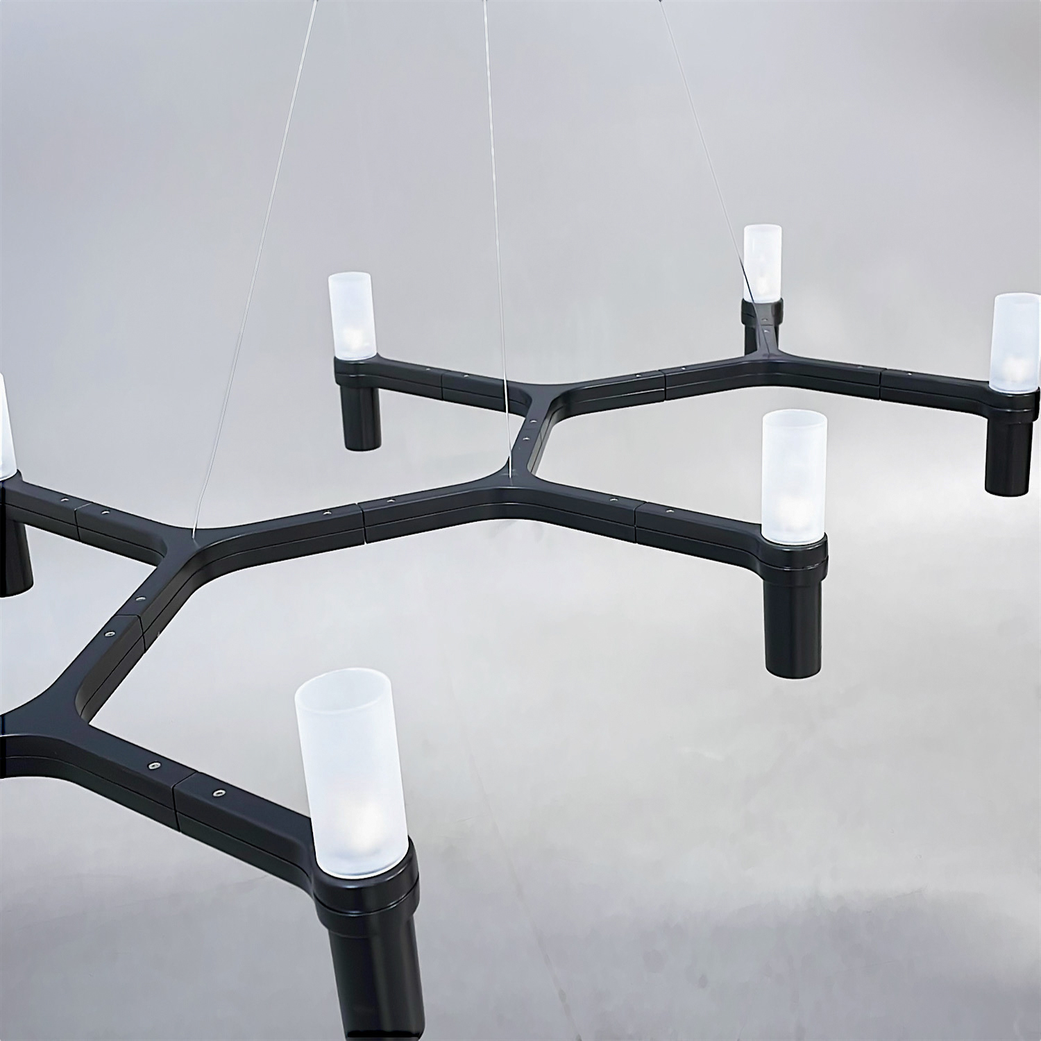 Takkrona från italienska Nemo Lighting designad av den tyska duon Jehs + Laub. Modern ljuskrona inspirerad av geometri och matematik. Dess klusterform är inspirerad av M.C. Eschers konst och skapar en illusion av oändliga förbindelser.