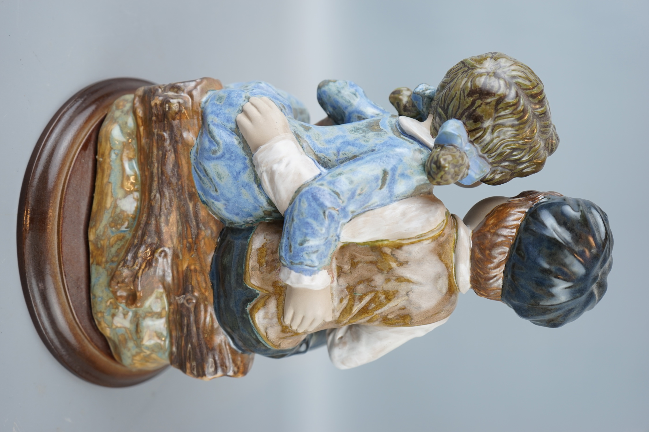 Figurin på träsockel, porslin/trä, Tengra, Spanien.