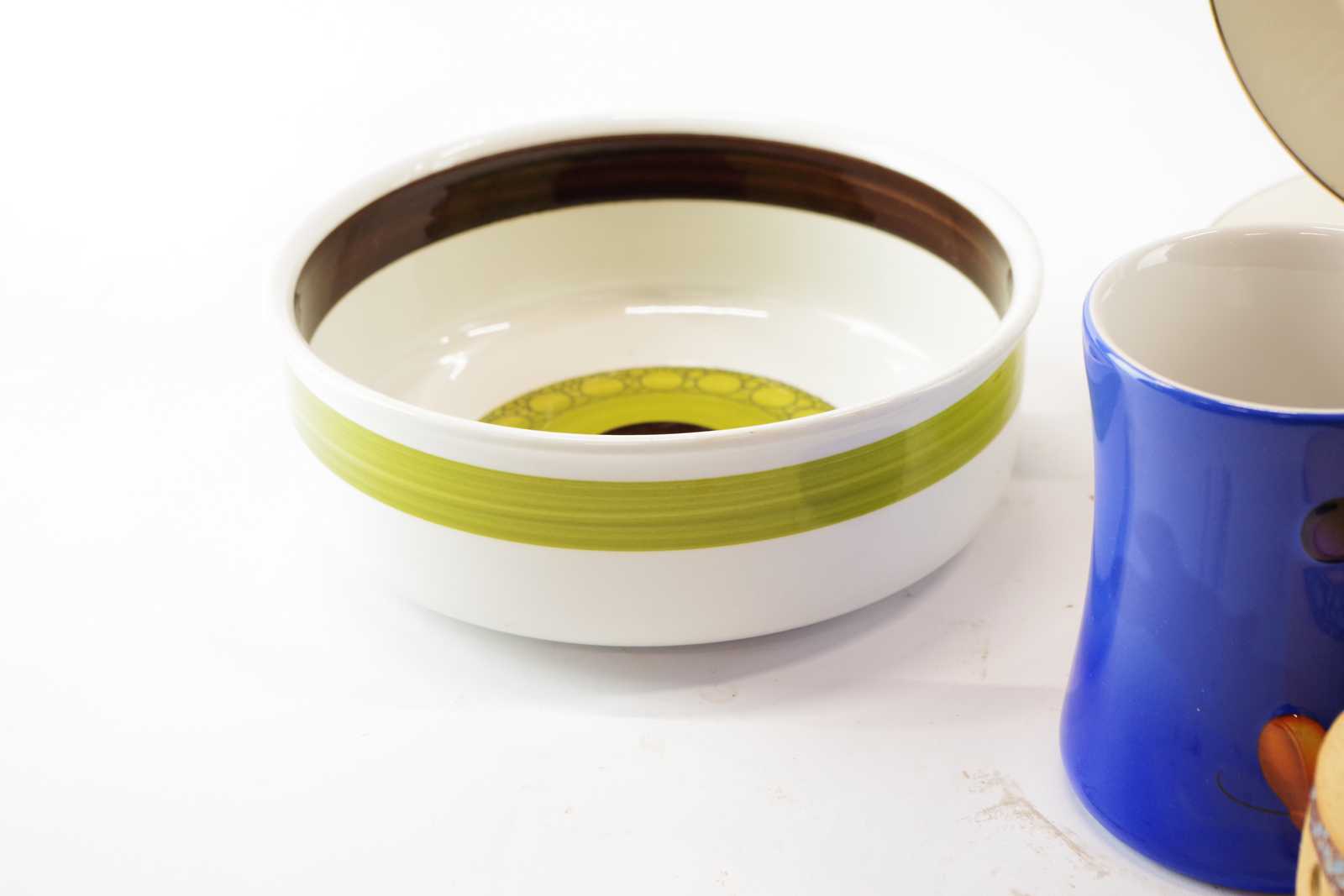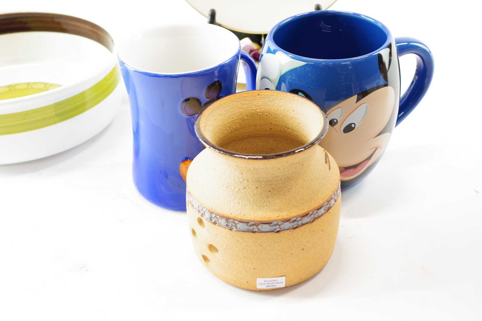 Bilder MUGGAR, ASSIETTER, SKÅL Rörstrand "Drott" & LJUSLYKTA Arvika keramik Olsén H:10,5 cm