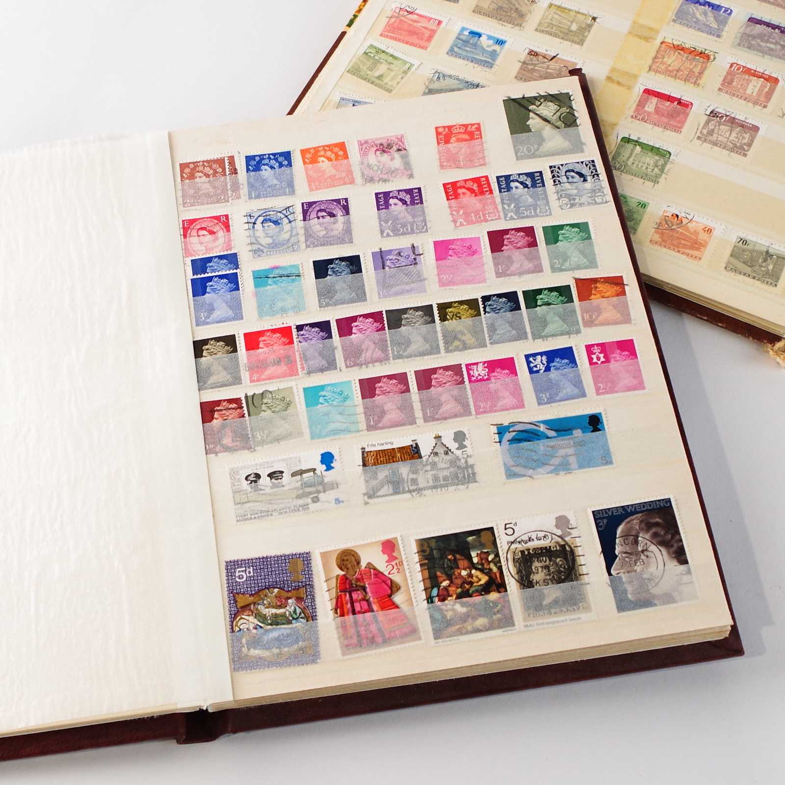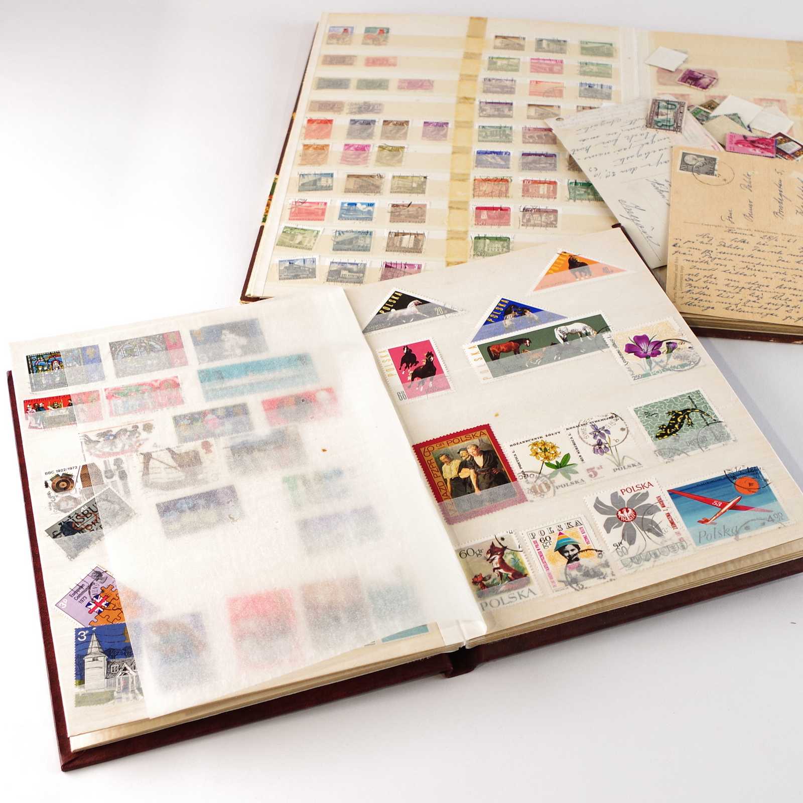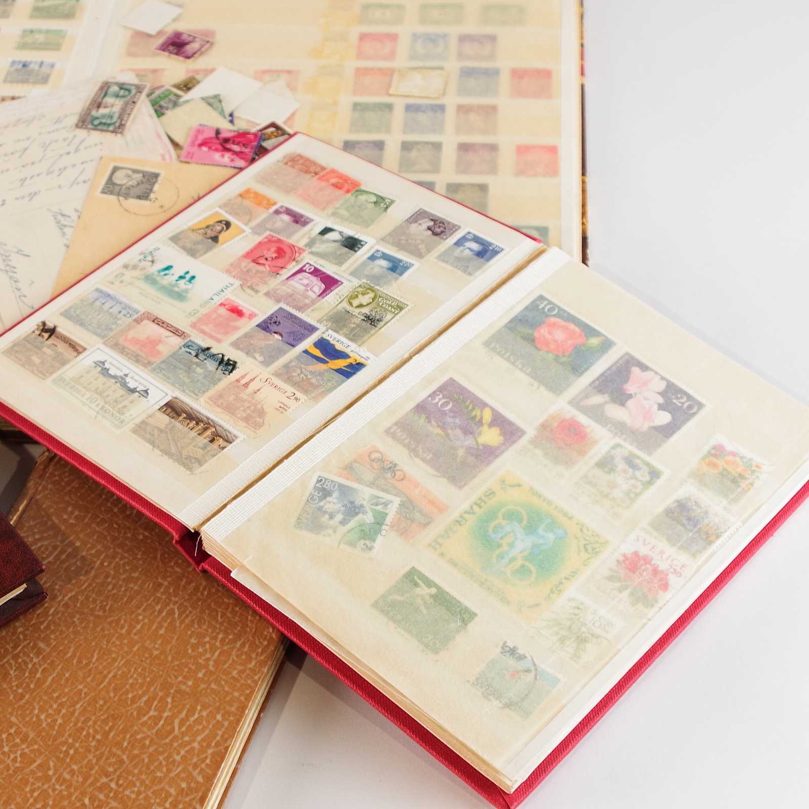 Bilder Parti FRIMÄRKSALBUM med innehåll.