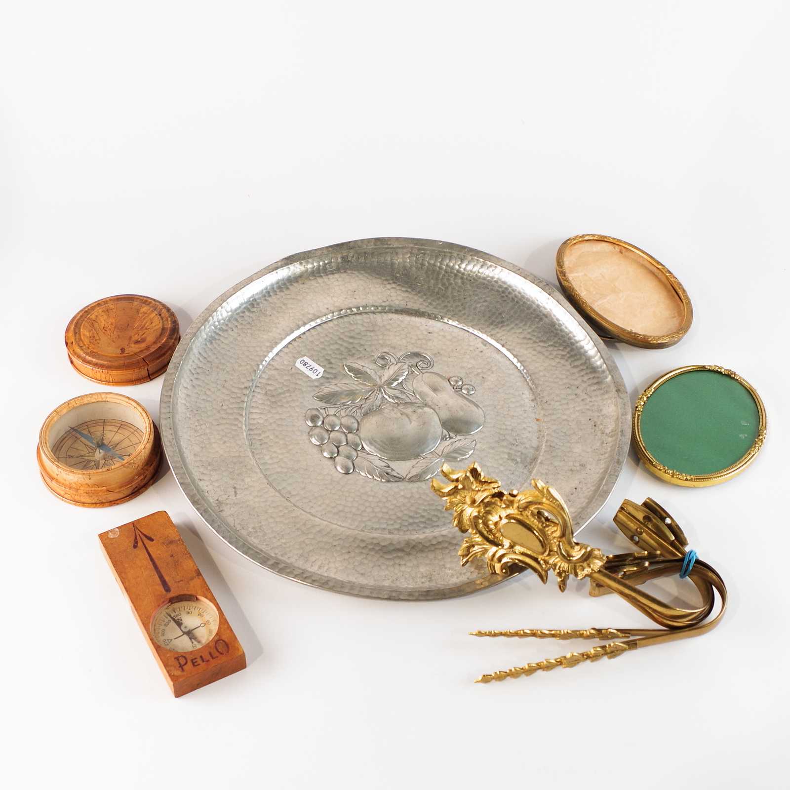 Bilder Parti GARDINOMTAG mässing, KOMPASSER äldre bl.a. masurbjörk.