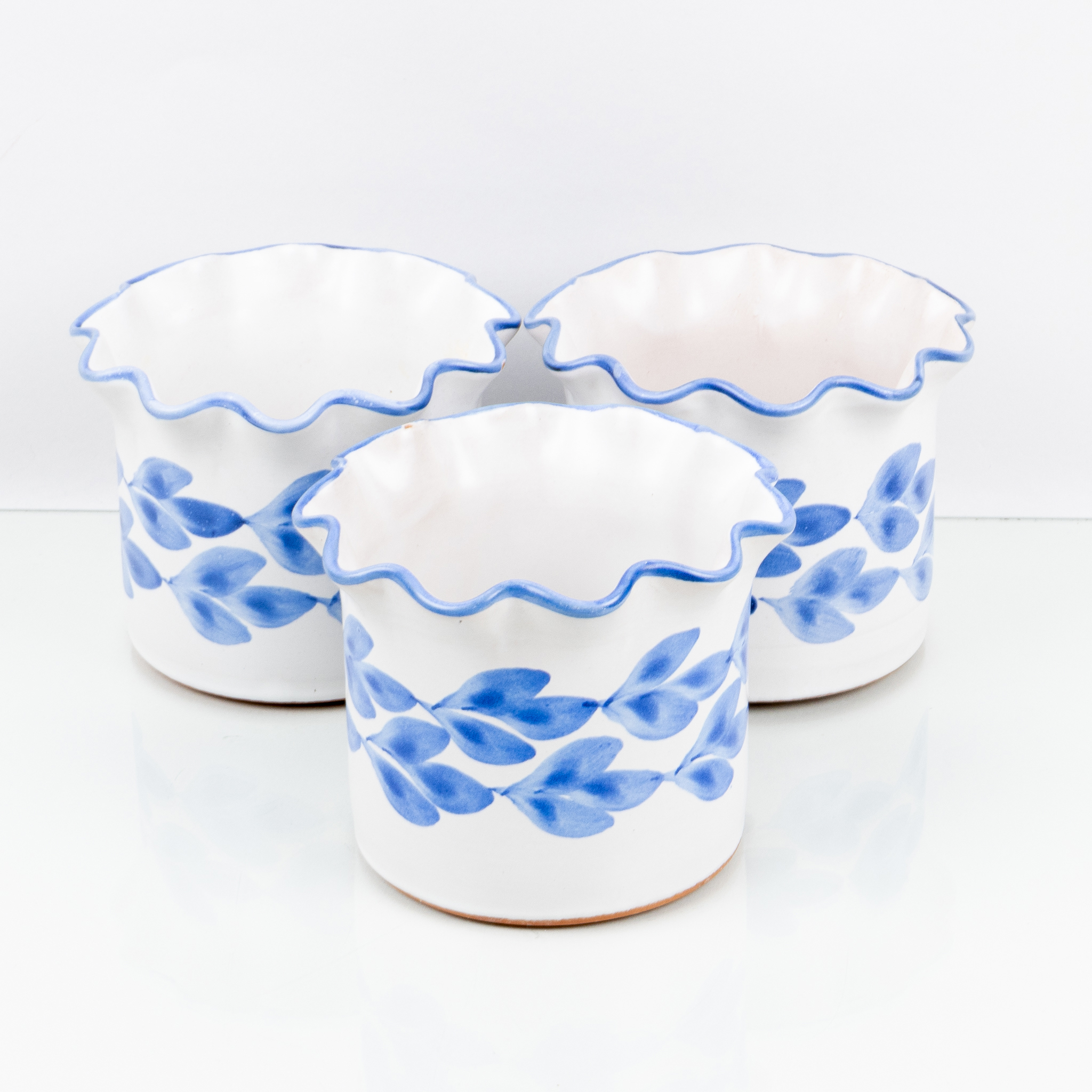 Målad dekor av blåa blommor, höjd ca 11,5, diameter 16 cm