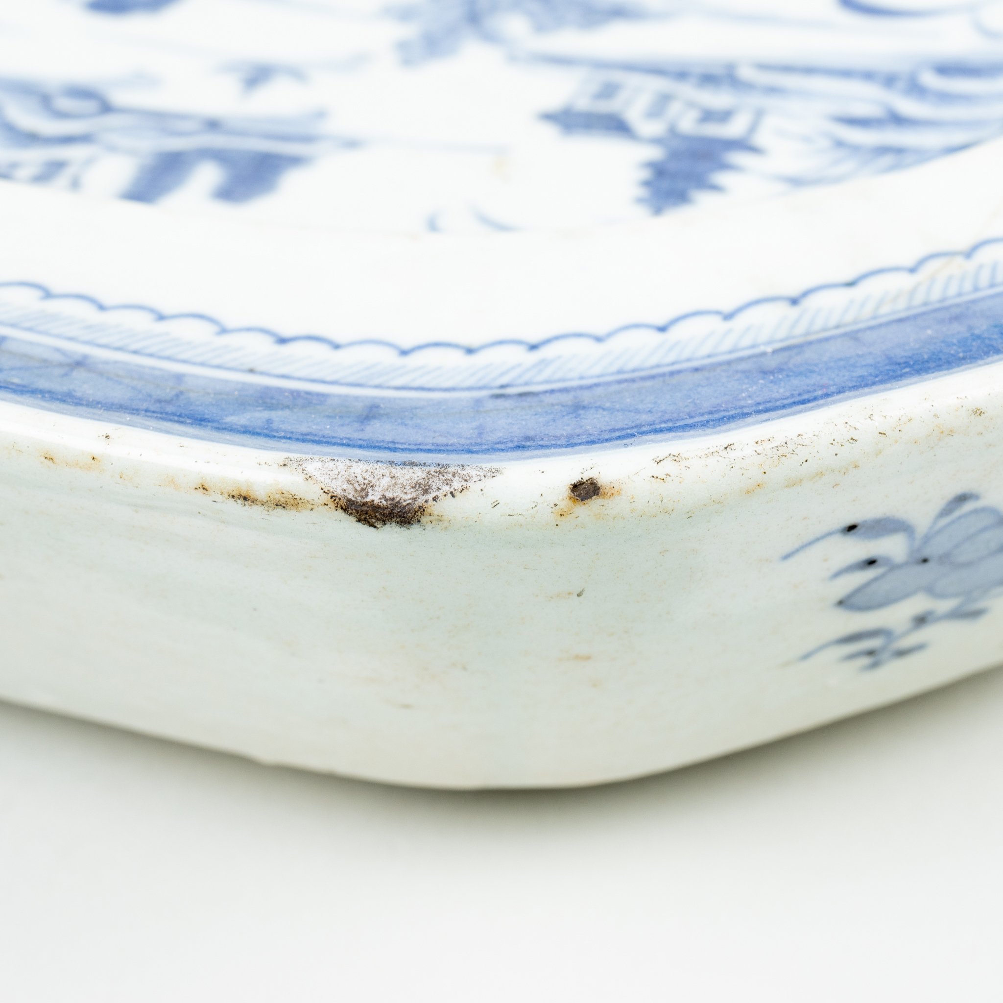 Blå dekor av flodlandskap, höjd 6,5, 37 x 24,5 cm