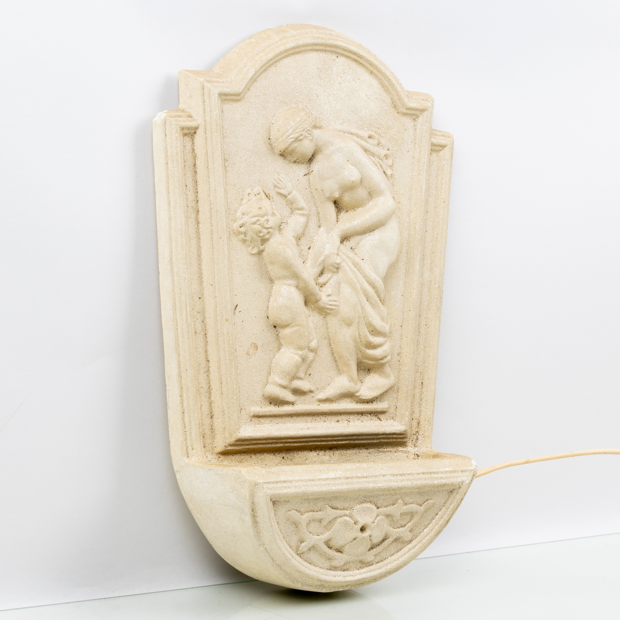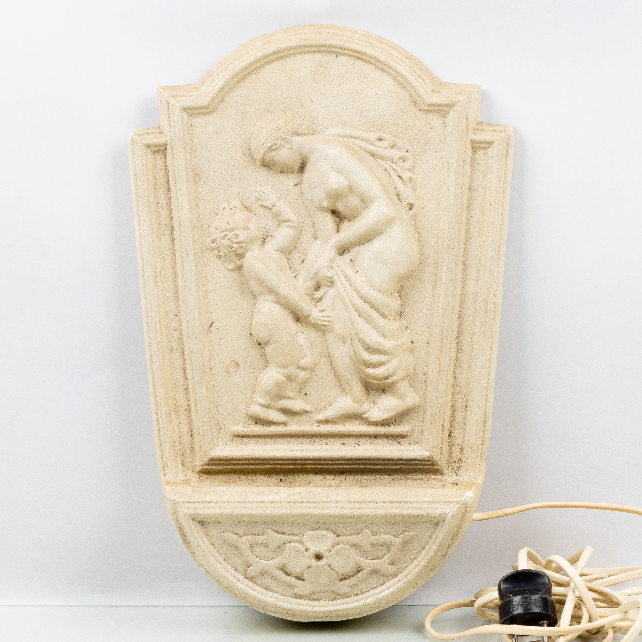 Reliefdekor av figurscen, en ljuspunkt, höjd ca 40, 26 x 10 cm