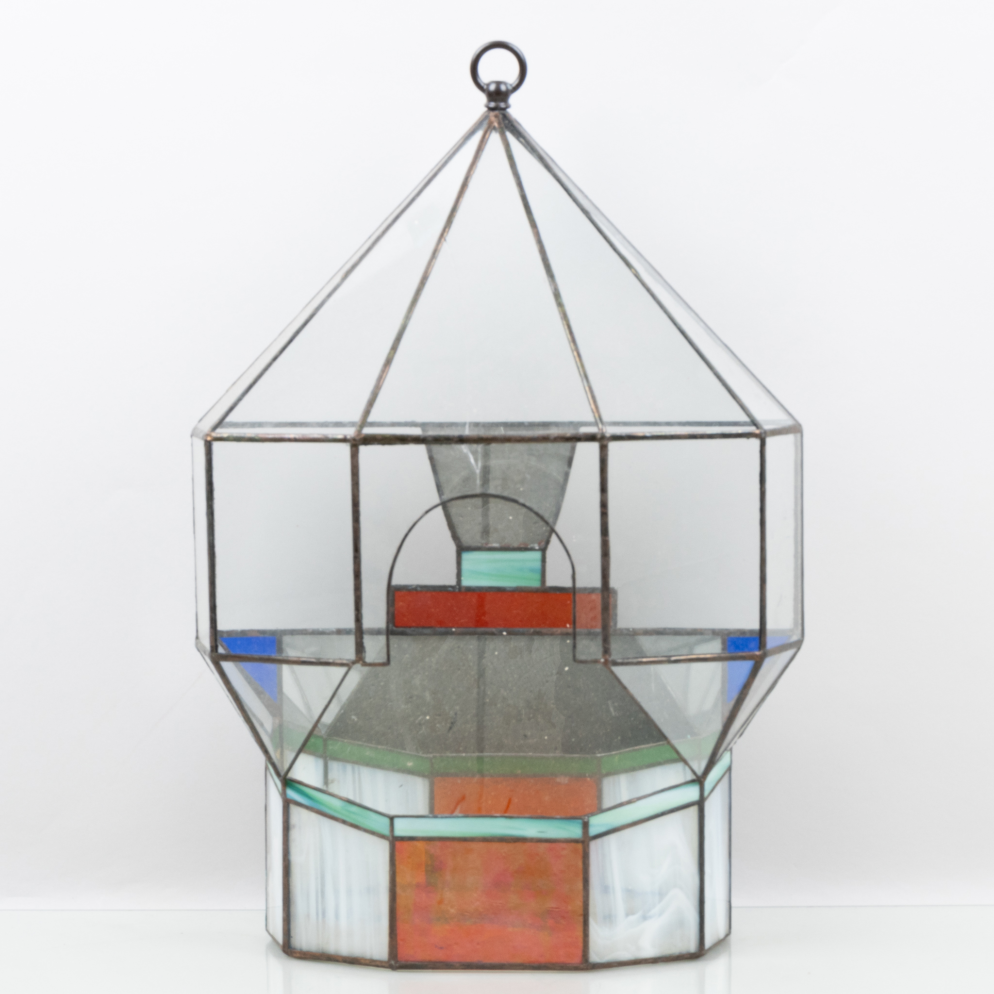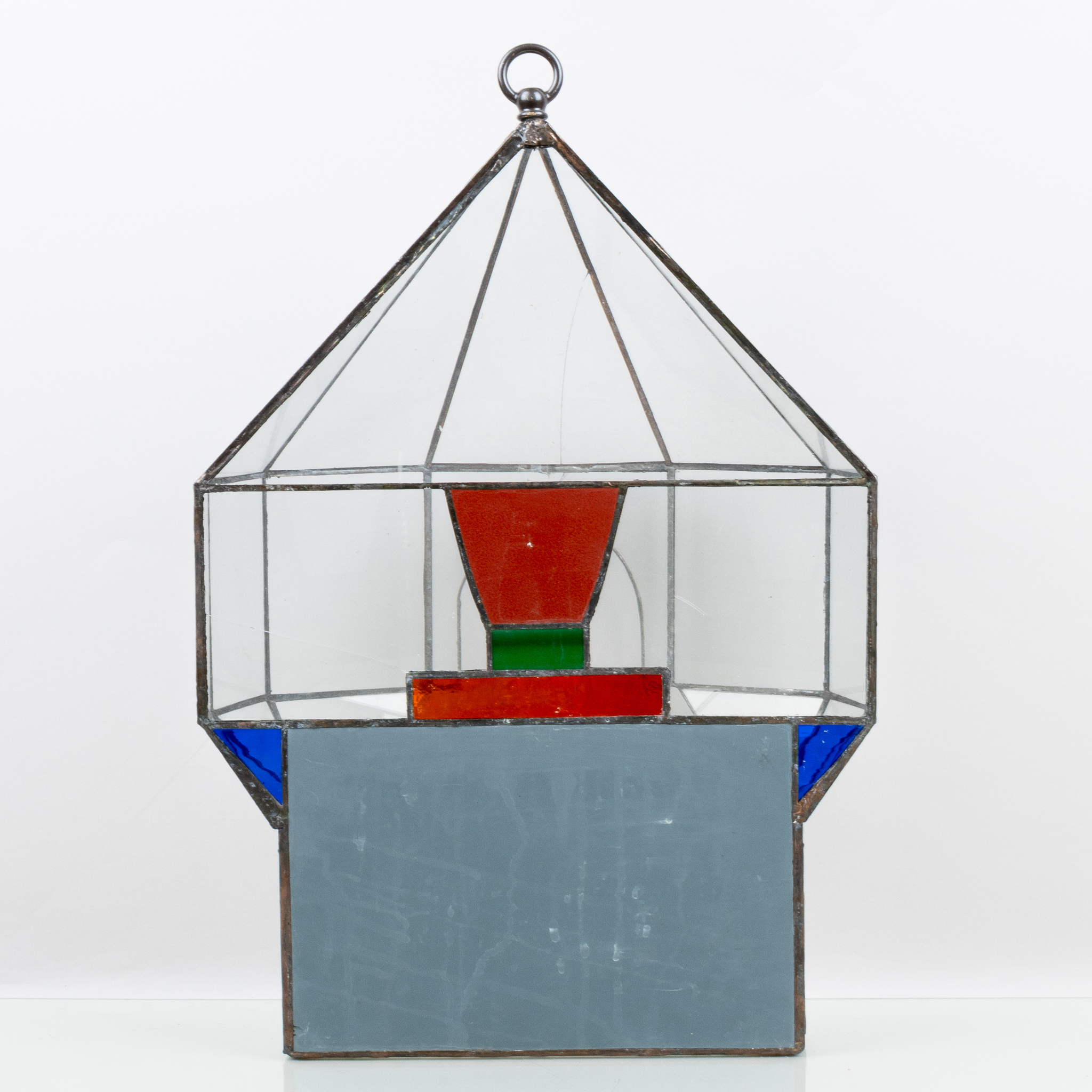VÄGGHYLLA, blyinfattat glas, sannolikt 1900-talets mitt