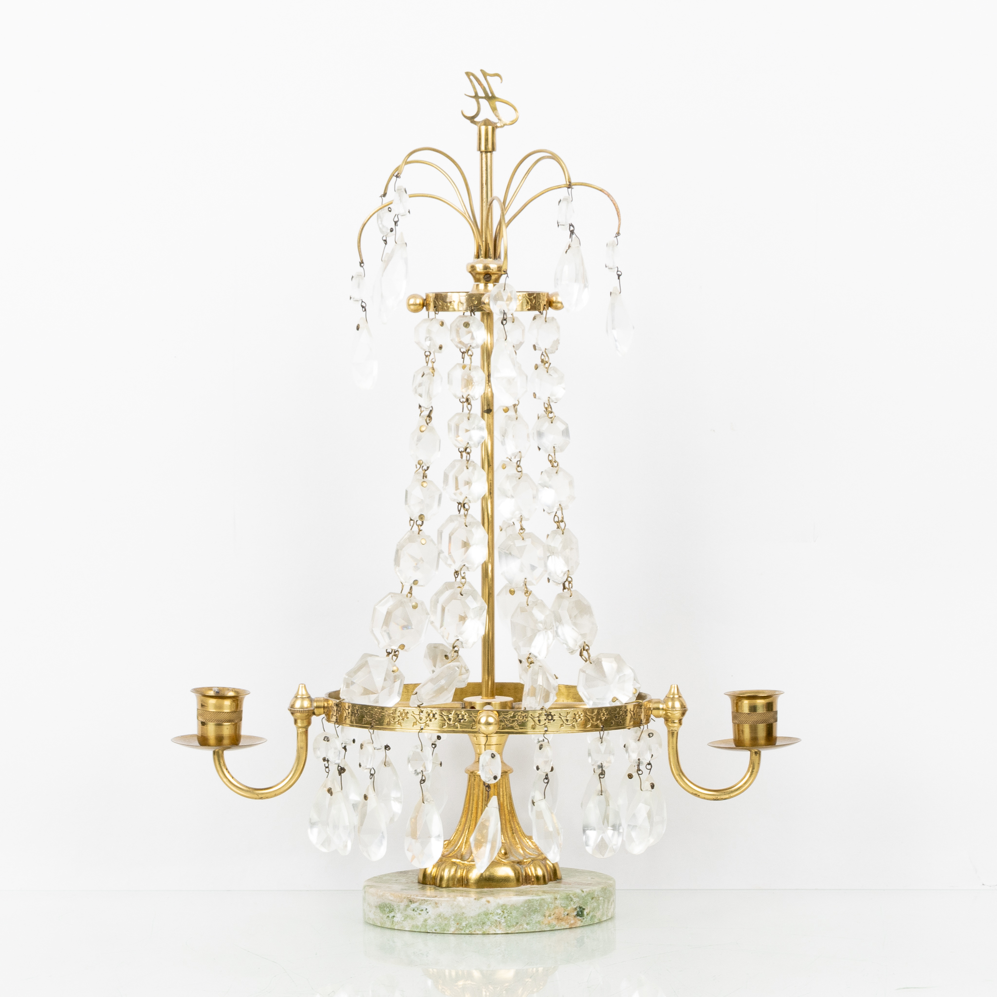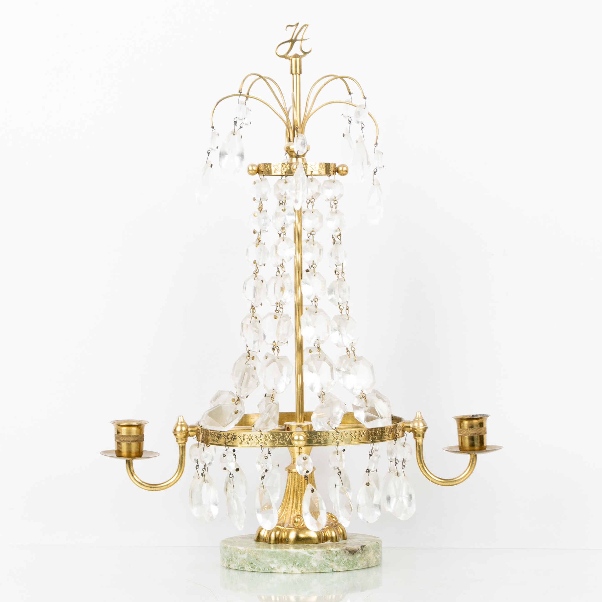 Med prismor, för två ljus, krönt av monogram JA, höjd ca 43 cm