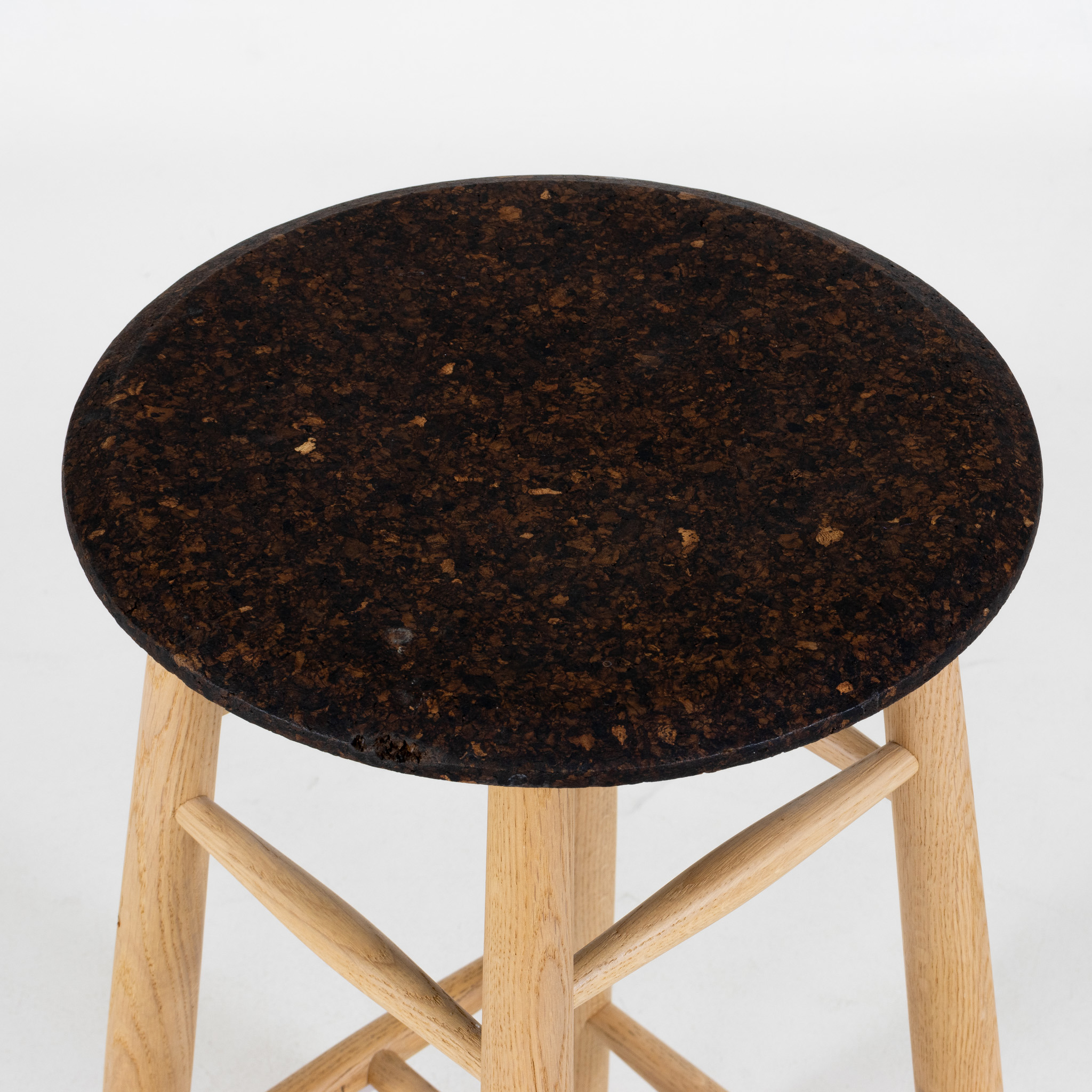 Beställning i ek, sits i vaxad kork, höjd ca 75, diameter 33 cm