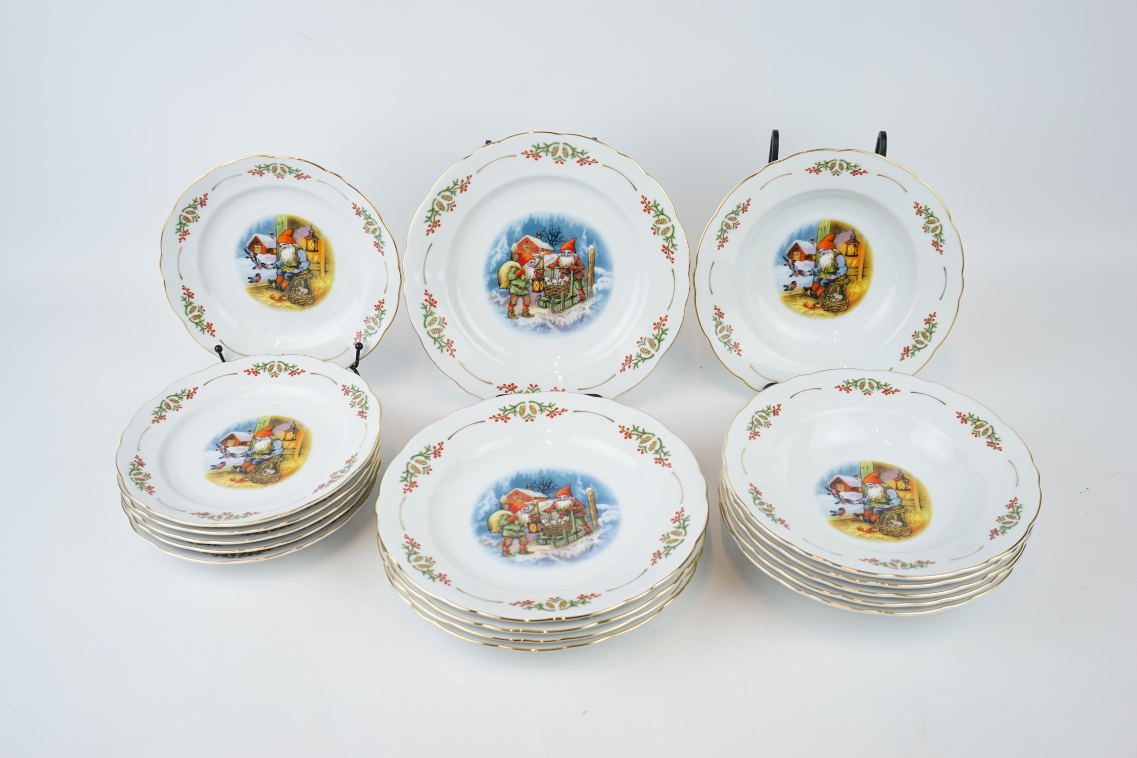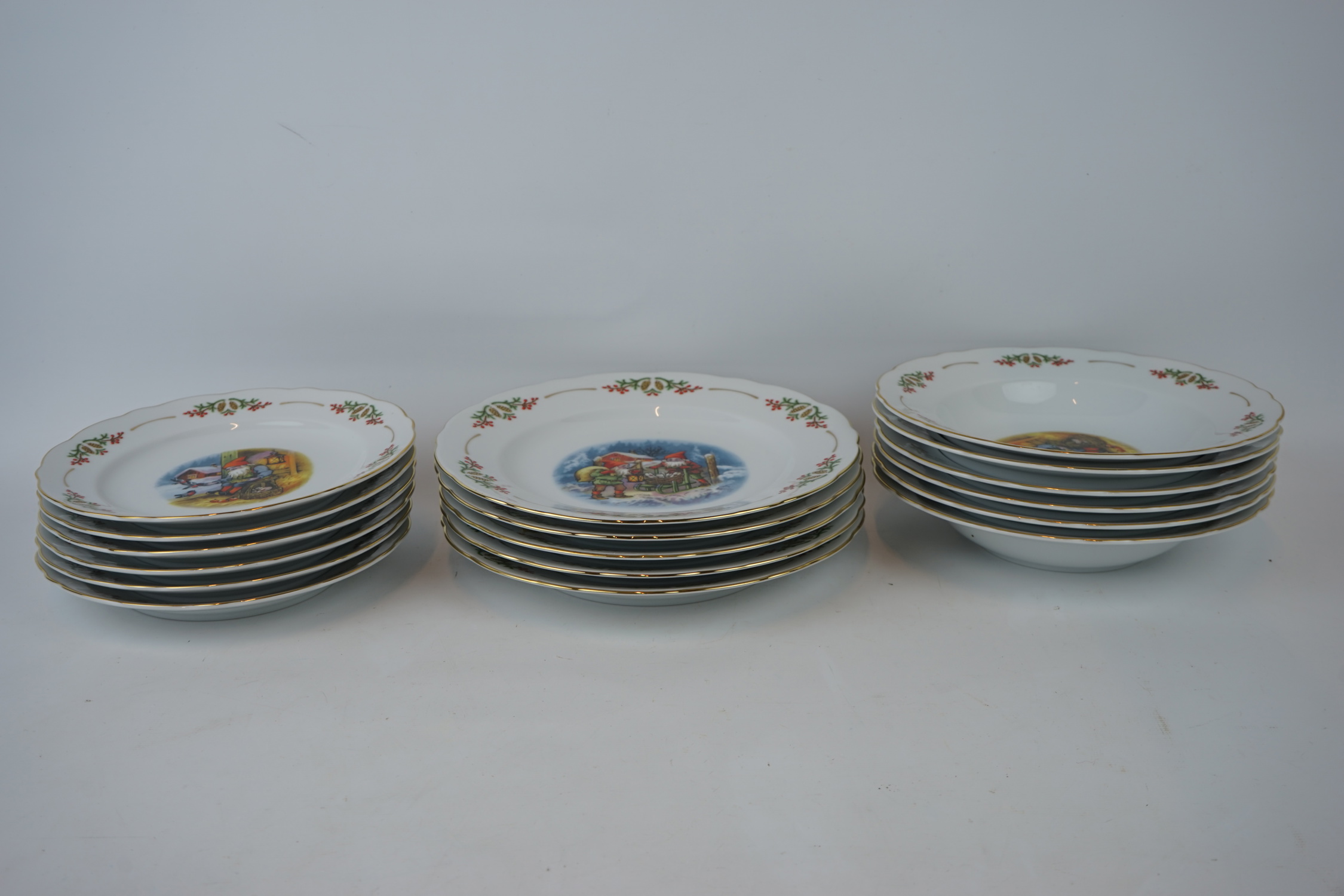 Auktioner Keramik & Porslin Lars Carlson, matservis, 17 st, porslin, "Gammaldags Jul", Christineholm.