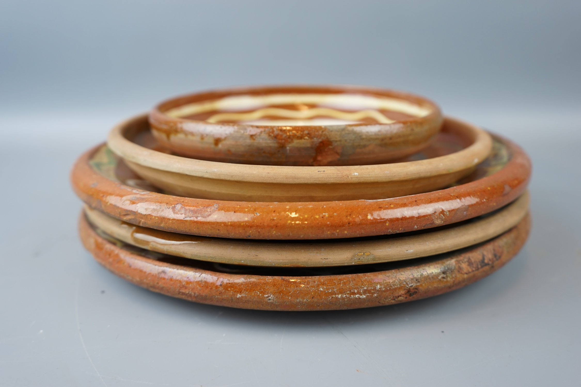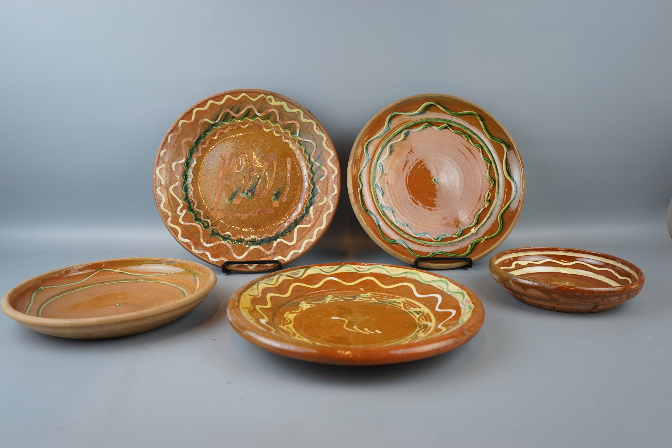 Skålar och fat, 5 delar, keramik, allmoge, 1900-tal.