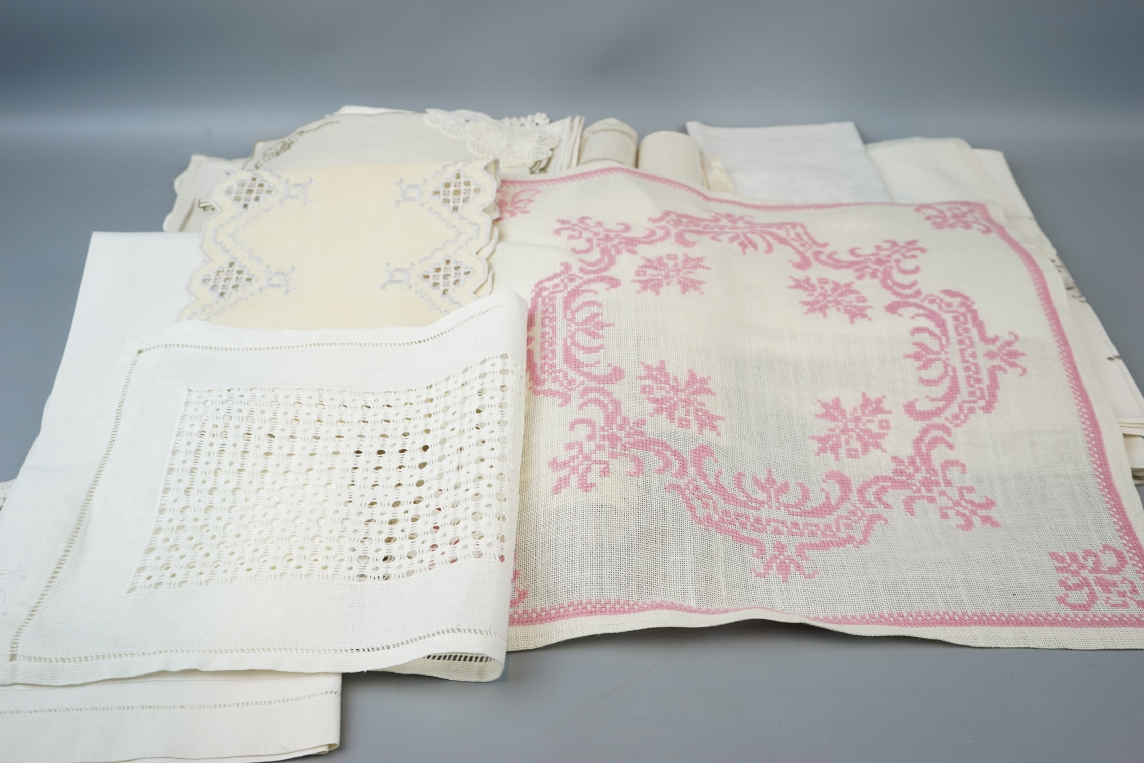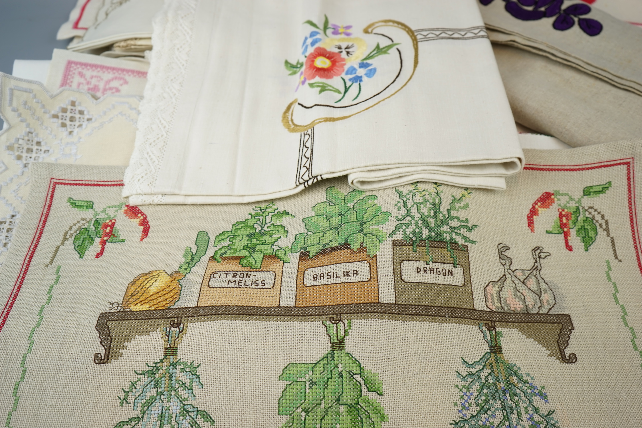 Bilder Dukar och tabletter ,ett parti, broderade.