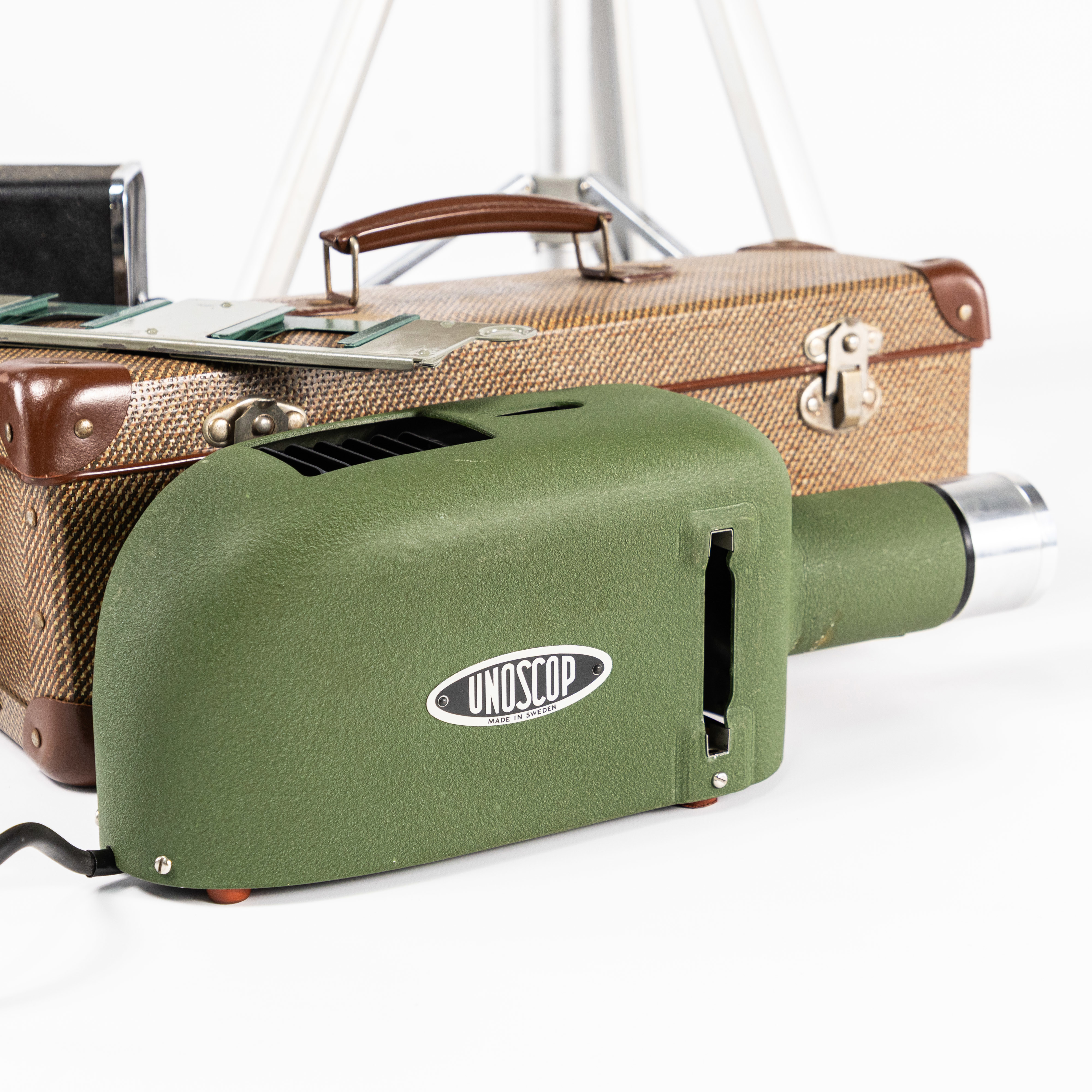 Projektor; Unoscop, filmkamera; Sankyo Super CM880, stativ, 3 delar