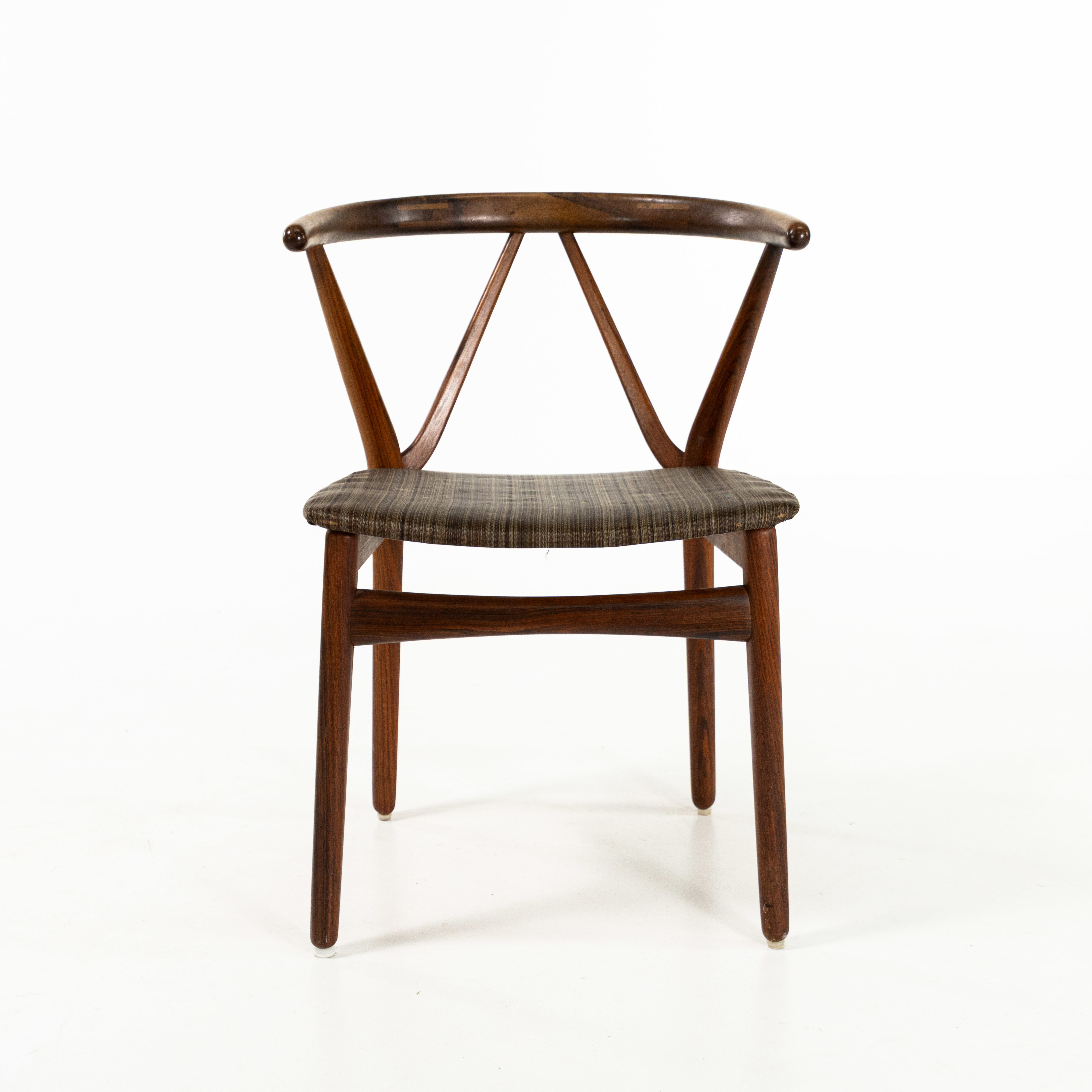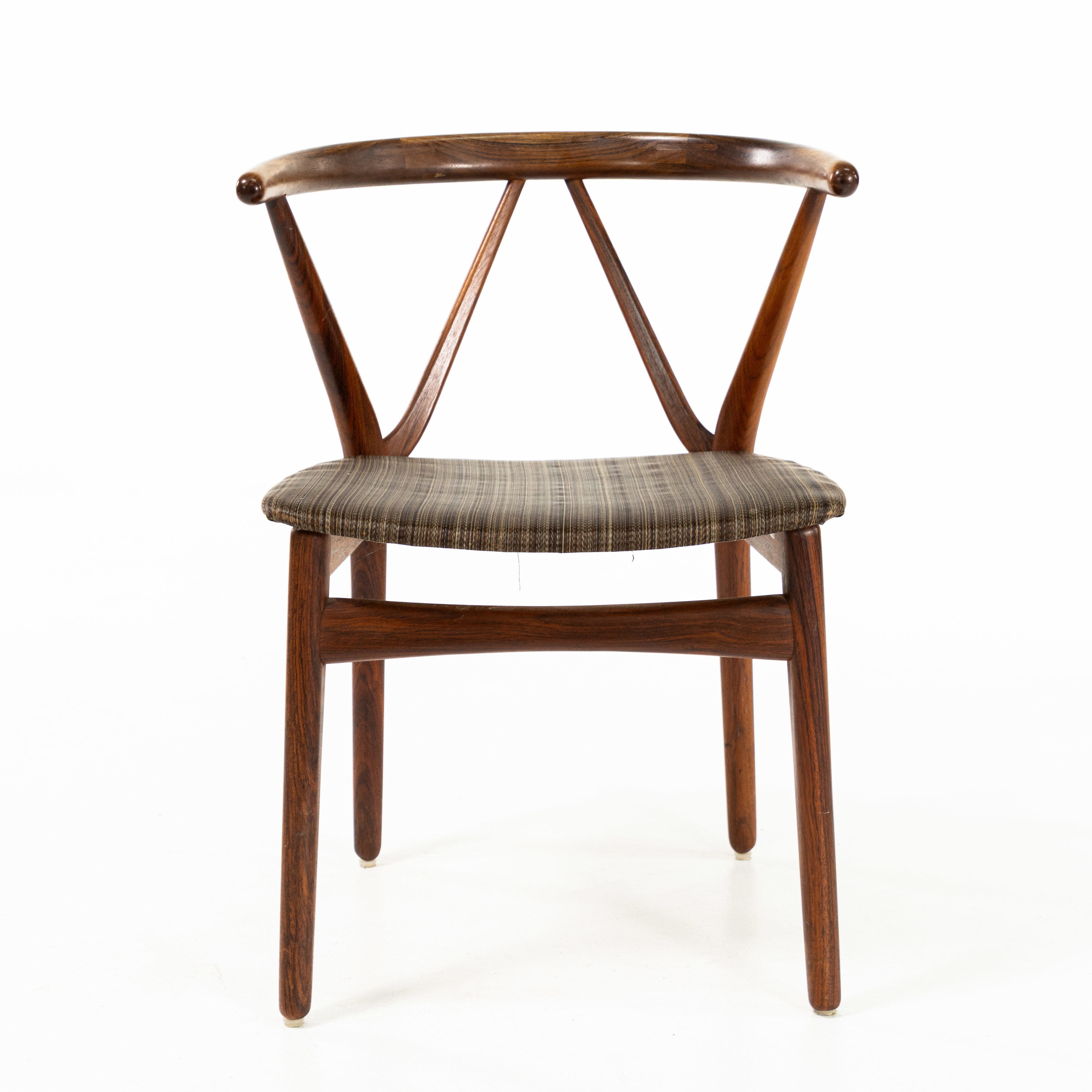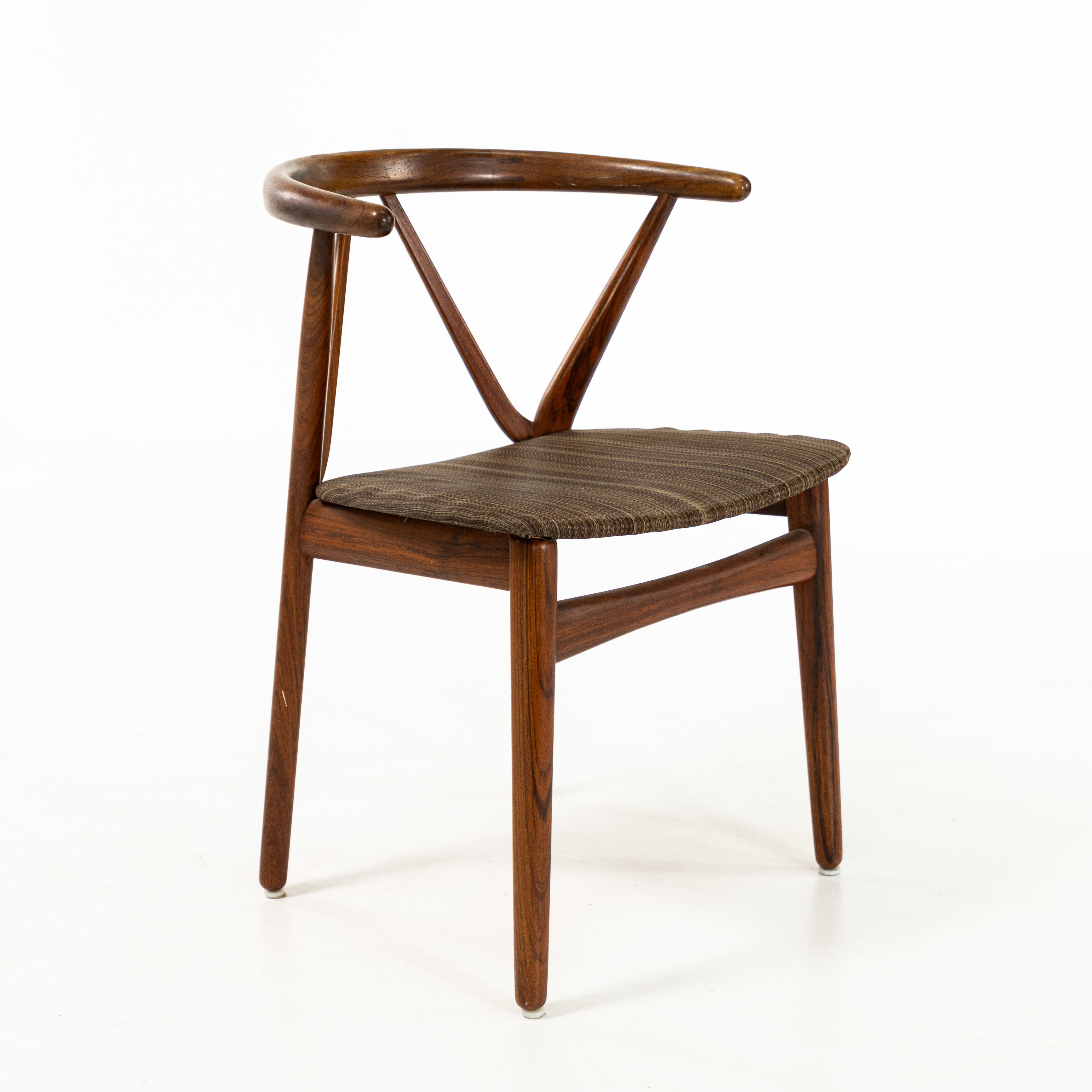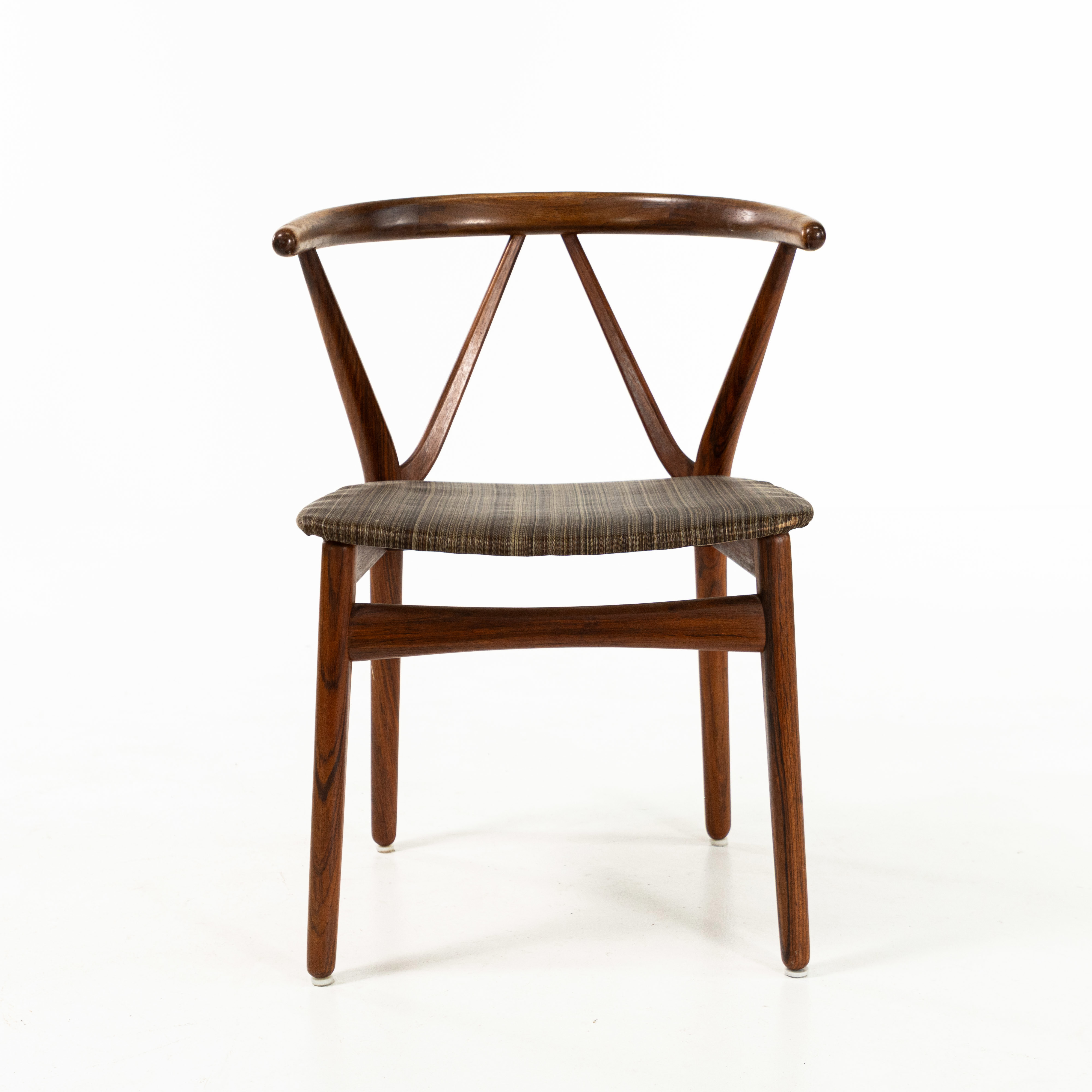 Henning Kjaernulf, stolar, 4 st, "Modell 255", stomme i jakaranda, klädda i hästtagel "Hermes" av Emil Rotter", Bruno Hansen, Danmark, stämpelmärkta