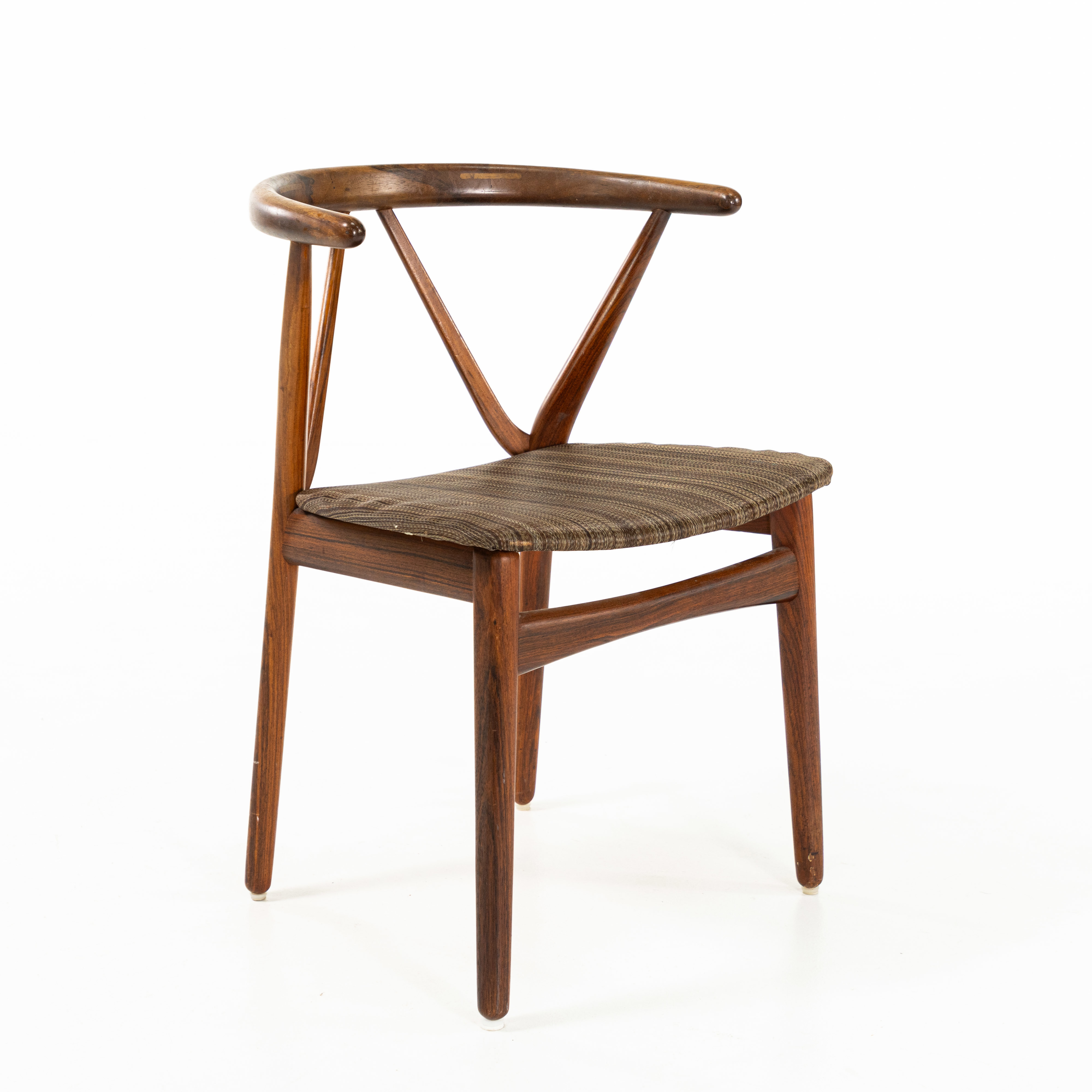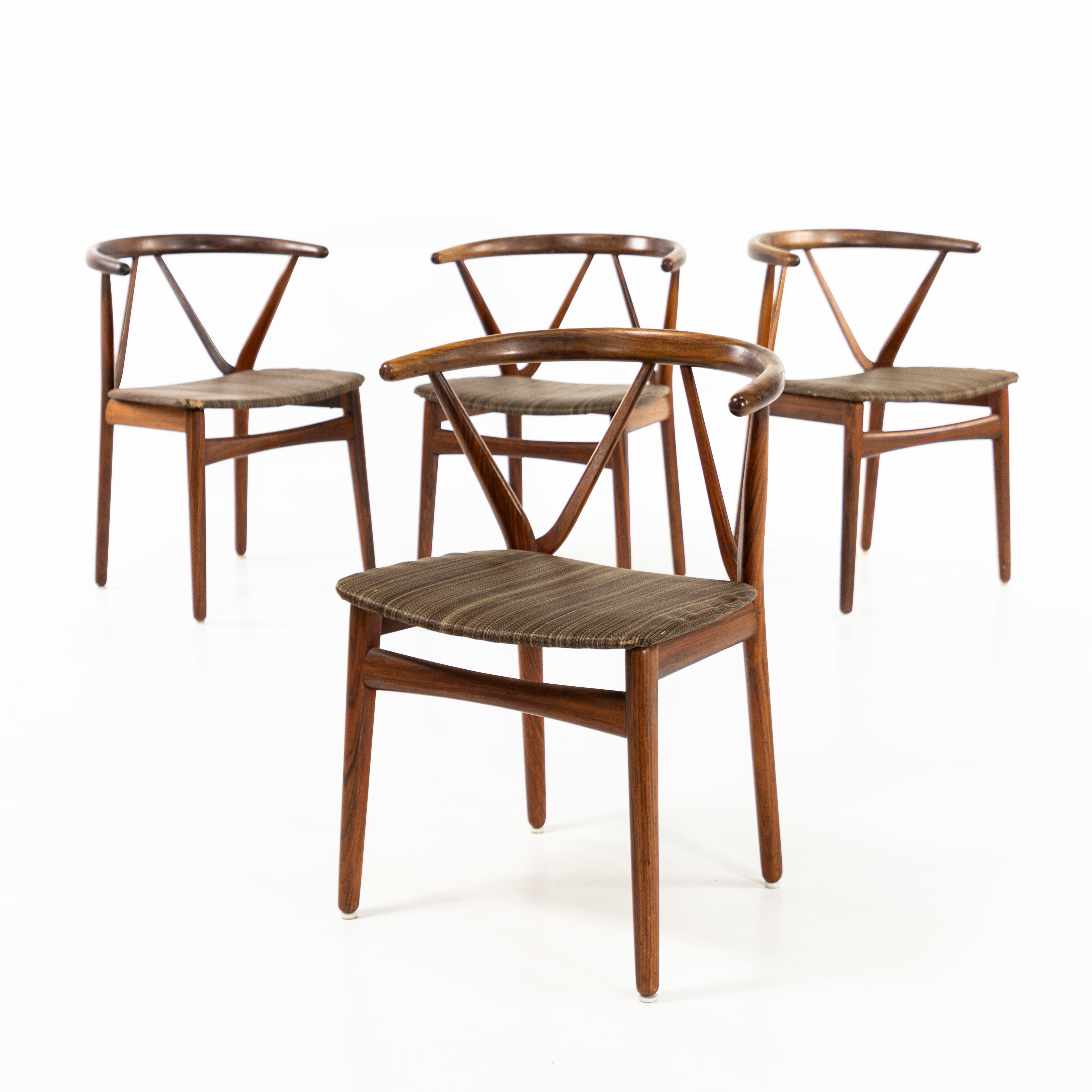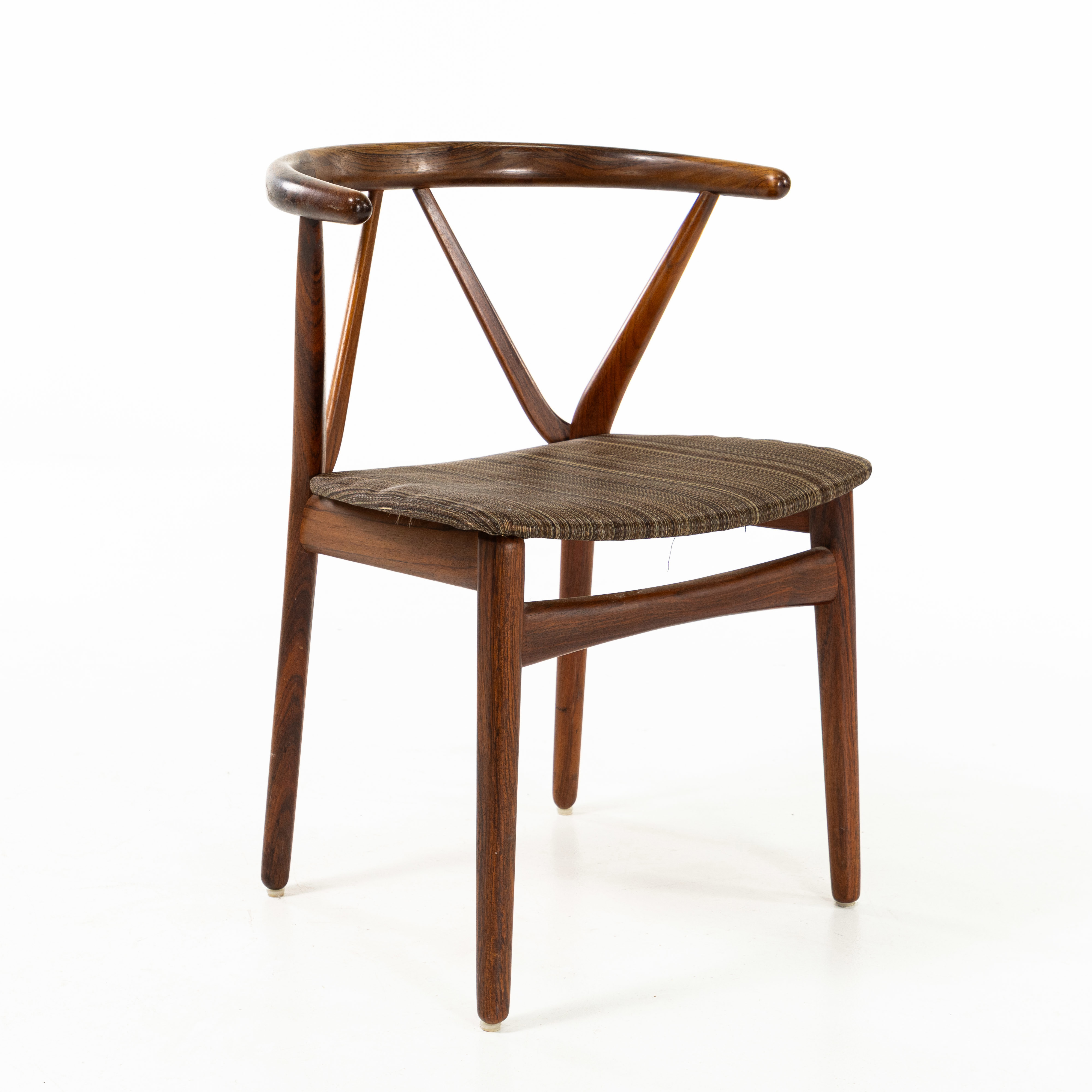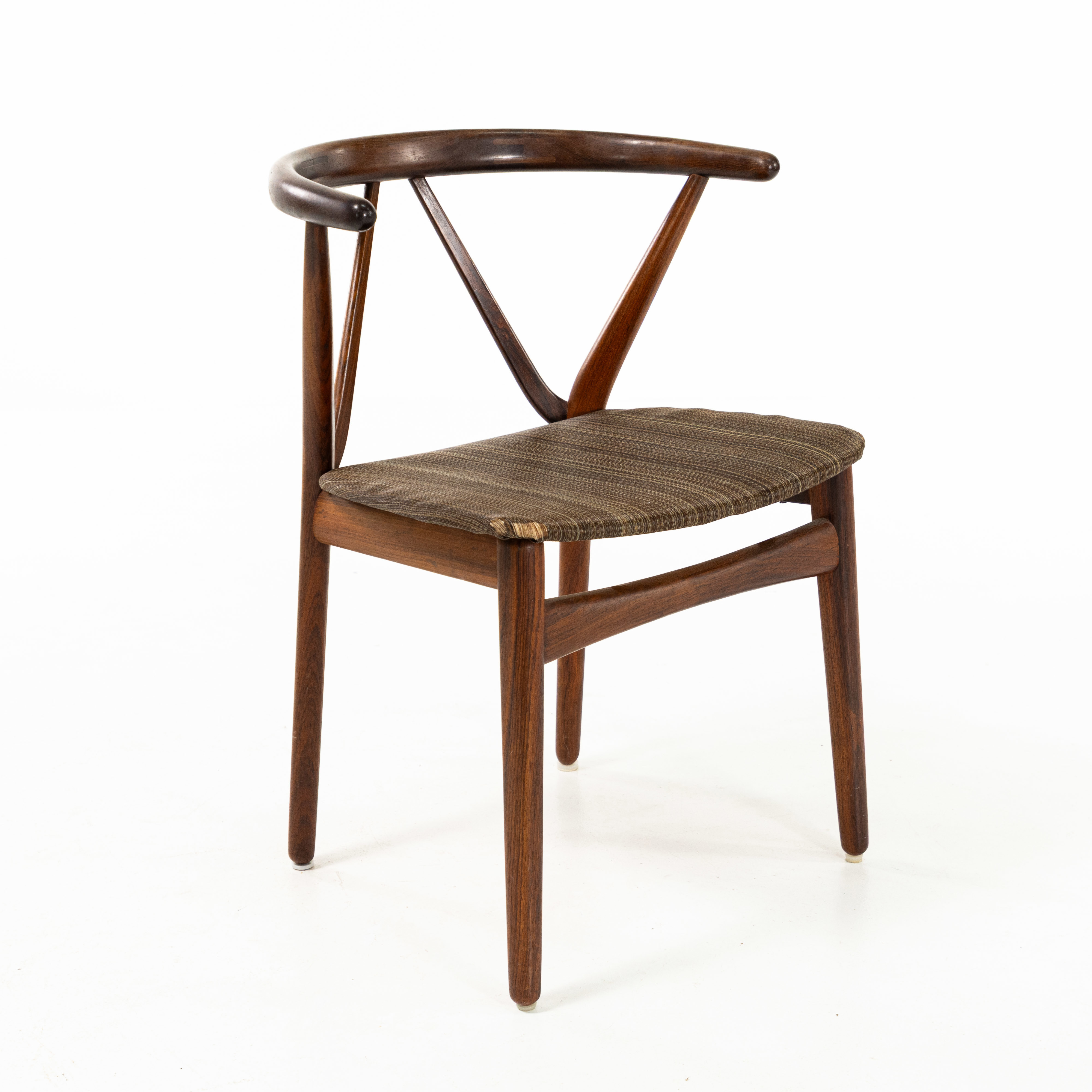 Henning Kjaernulf, stolar, 4 st, "Modell 255", stomme i jakaranda, klädda i hästtagel "Hermes" av Emil Rotter", Bruno Hansen, Danmark, stämpelmärkta