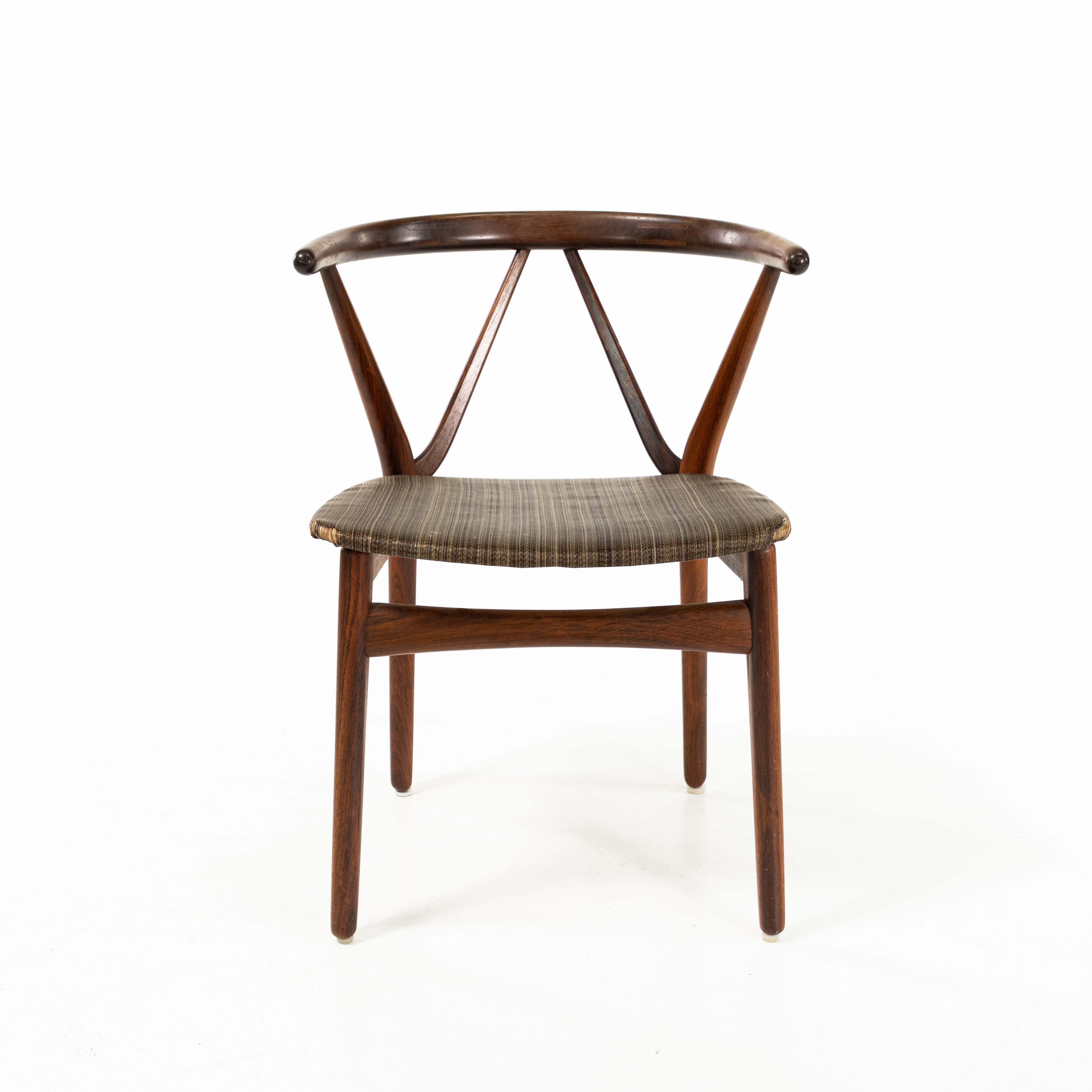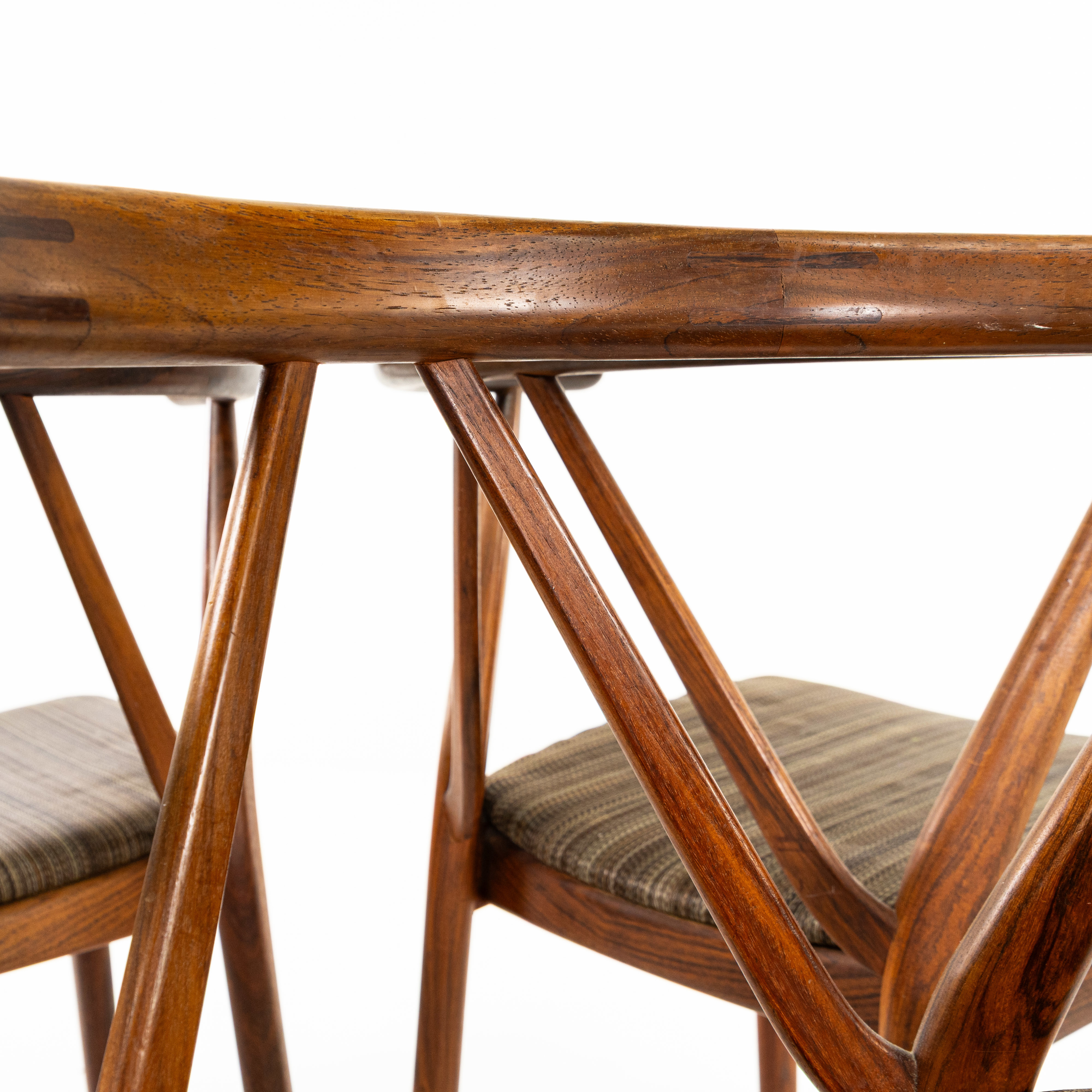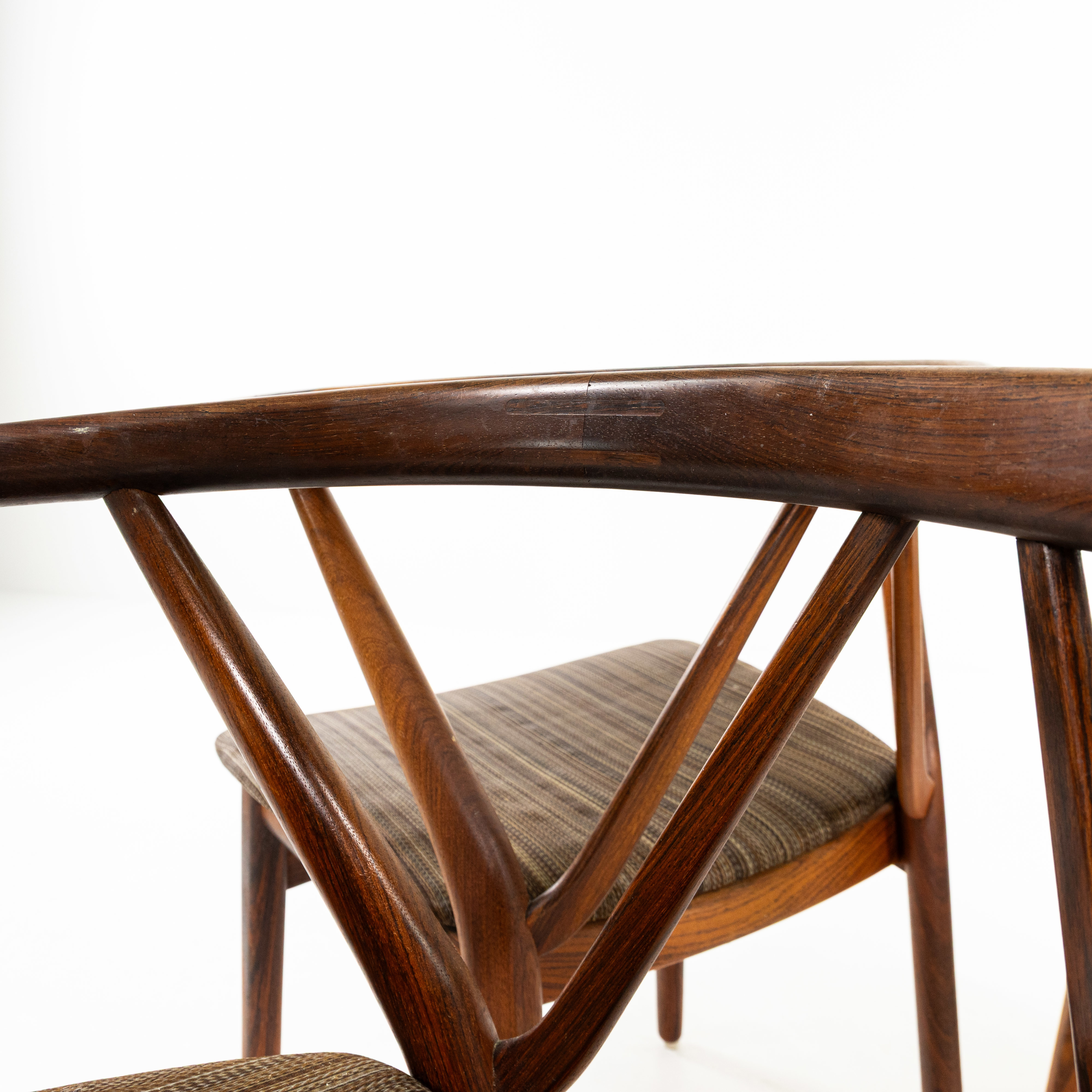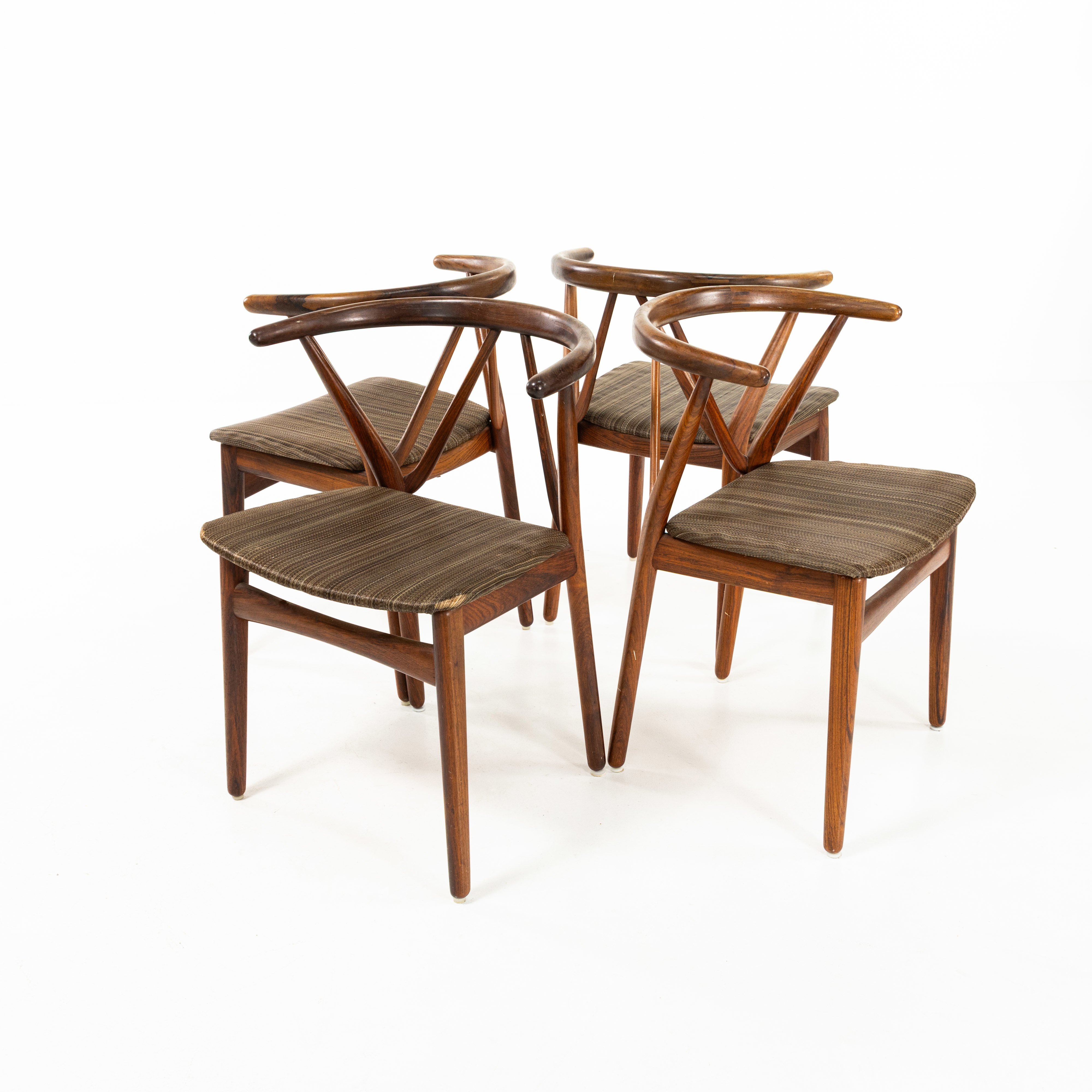 Henning Kjaernulf, stolar, 4 st, "Modell 255", stomme i jakaranda, klädda i hästtagel "Hermes" av Emil Rotter", Bruno Hansen, Danmark, stämpelmärkta