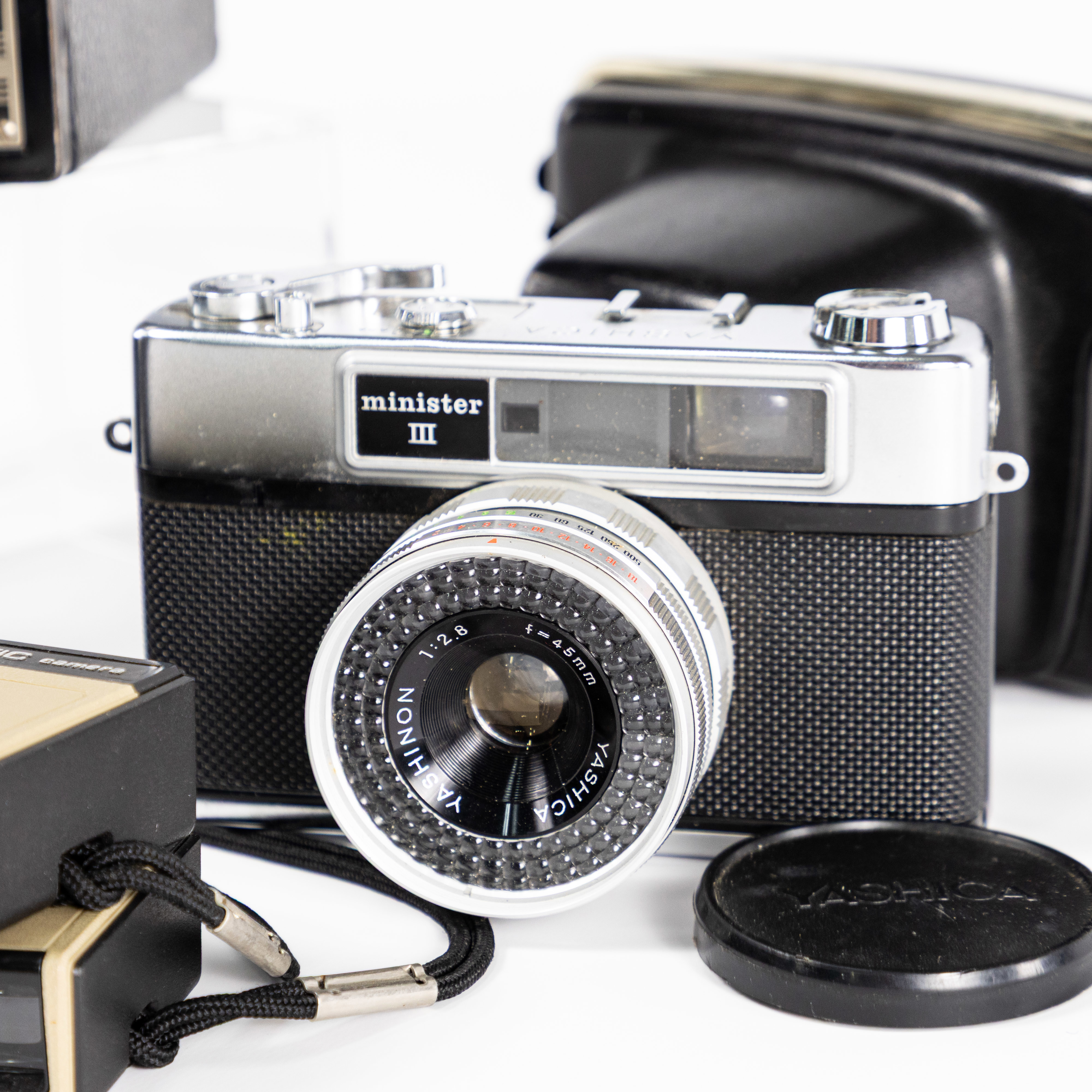 Kameror, 5 st, bl. a. Yashica Minister, Konica C35, Kodak Hawkeye Pocket, m.m.