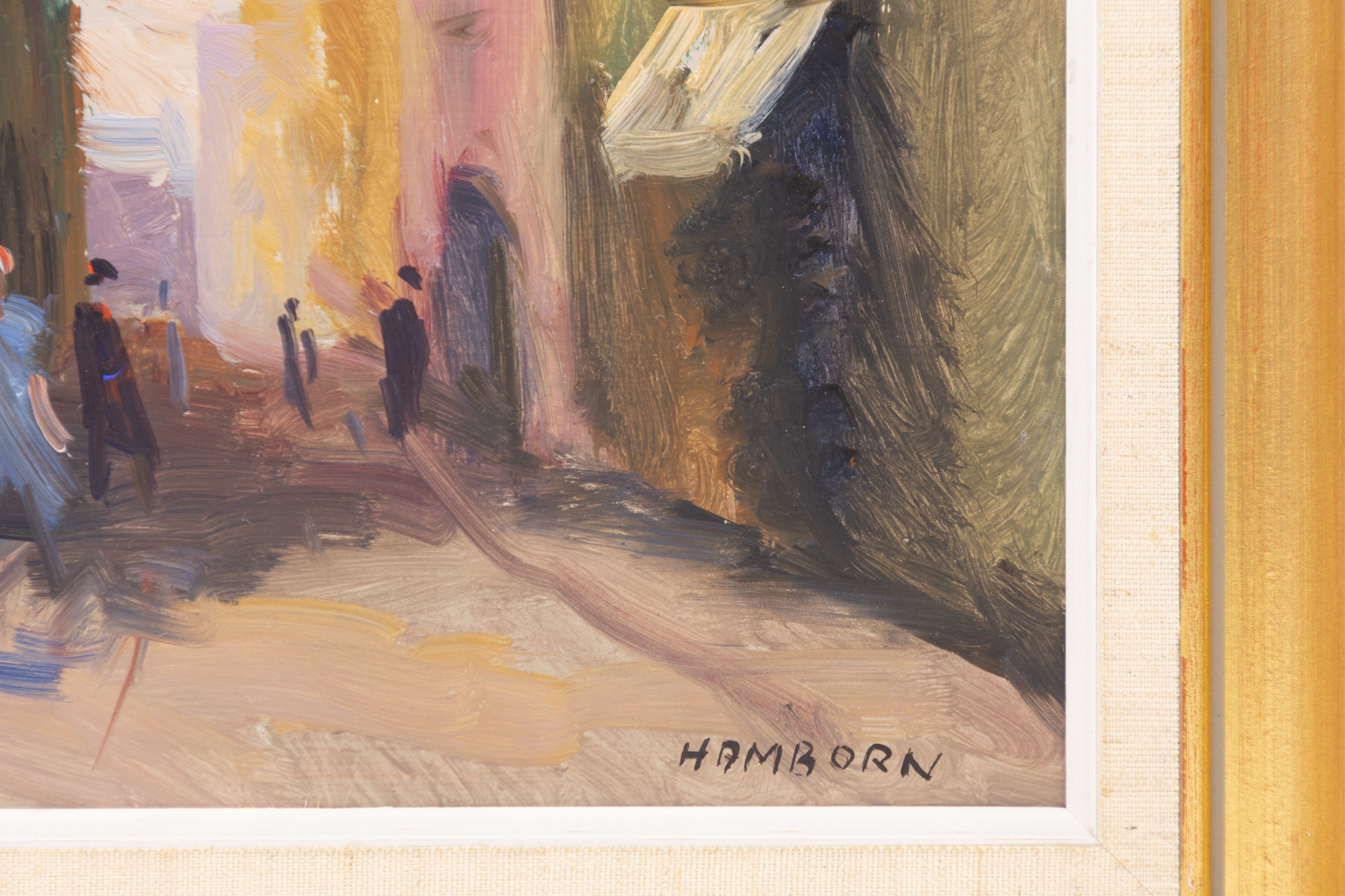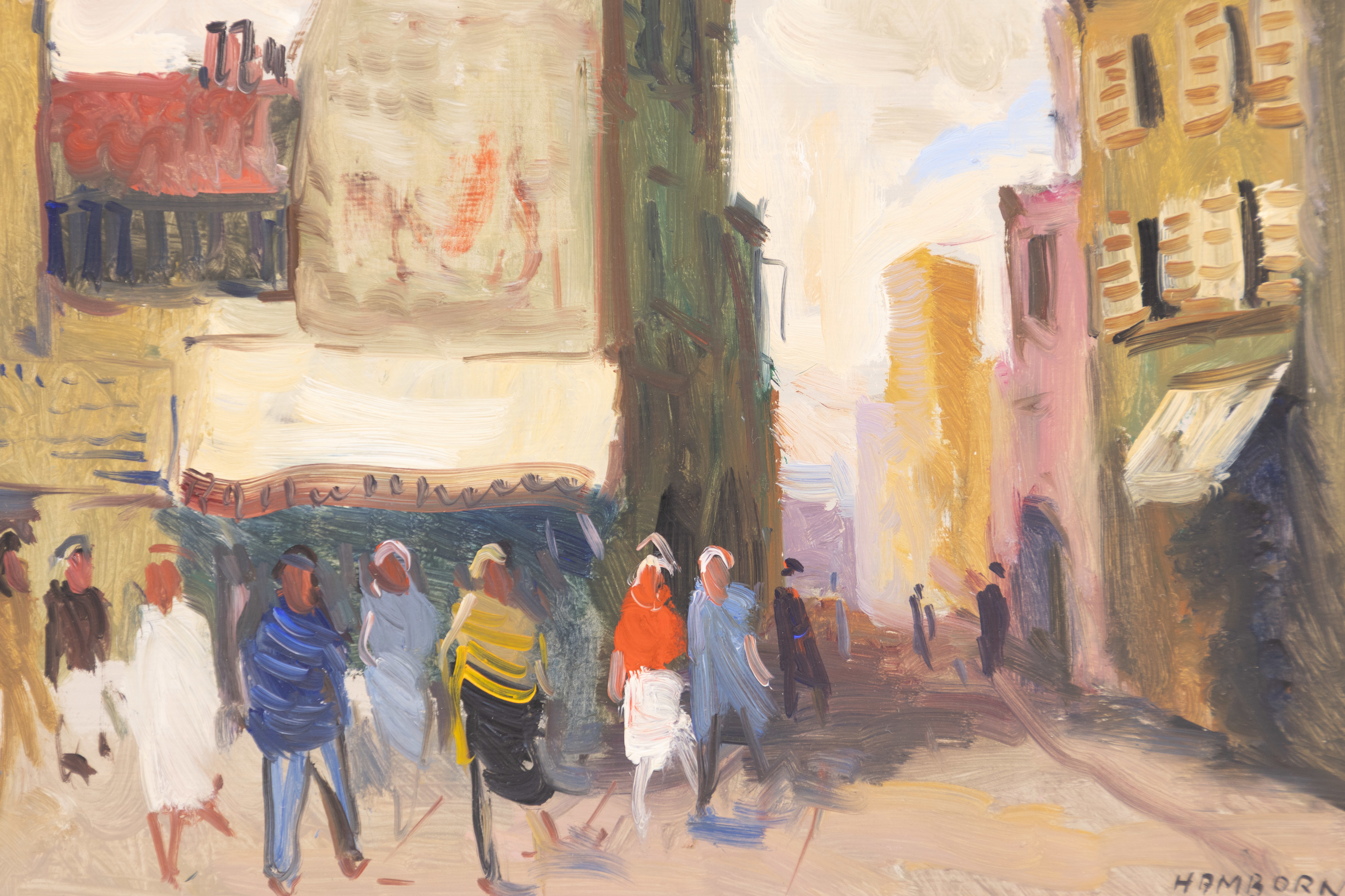 Axel Hamborn, olja på pannå, stadsmotiv, signerad, 45 x 37 cm med ram