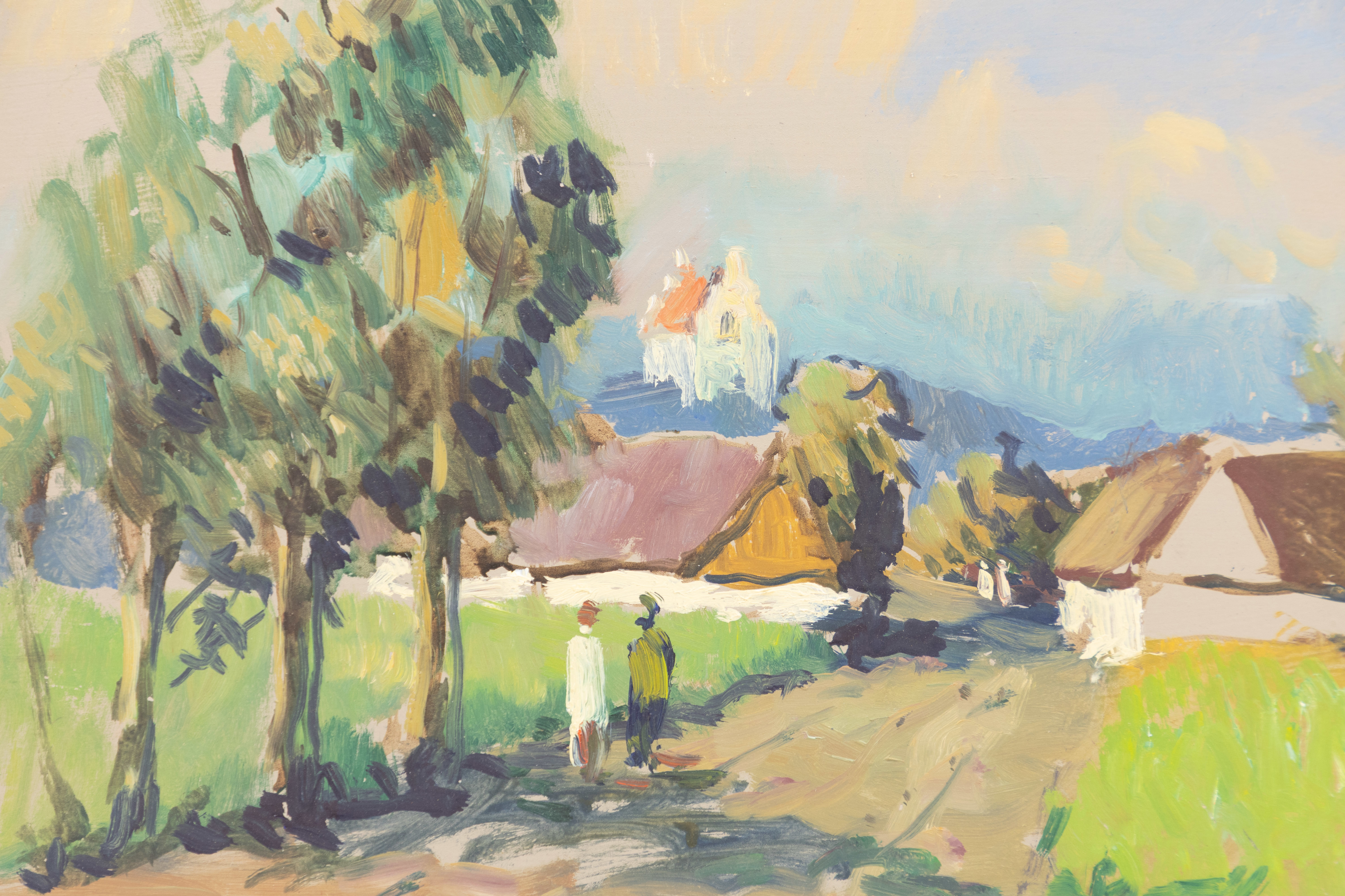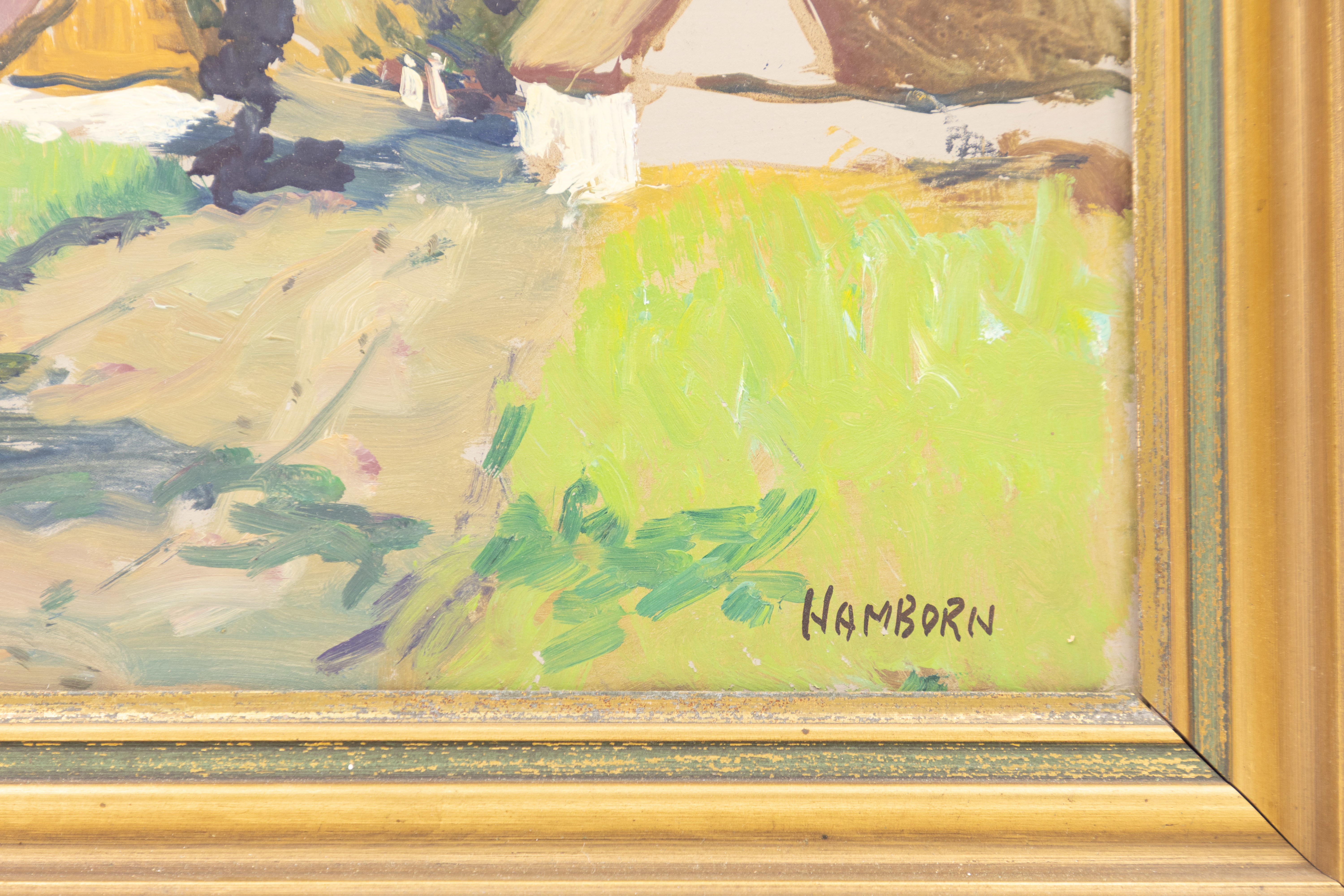 Axel Hamborn, olja på pannå, motiv med kyrka i bakgrunden, signerad, 56 x 48 cm med ram