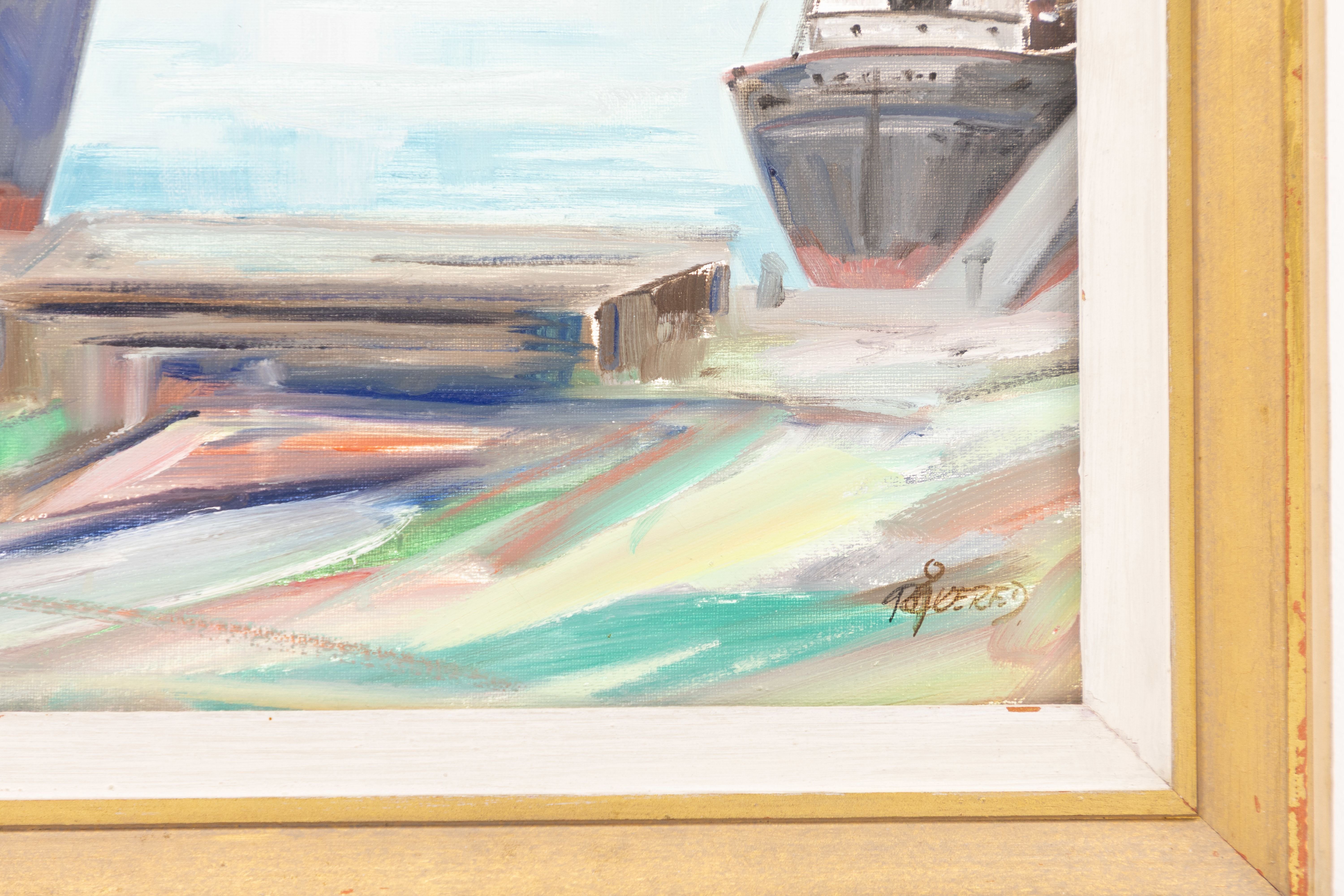 Pär Åkered, olja på duk, hamnmotiv, signerad, 58 x 50 cm med ram