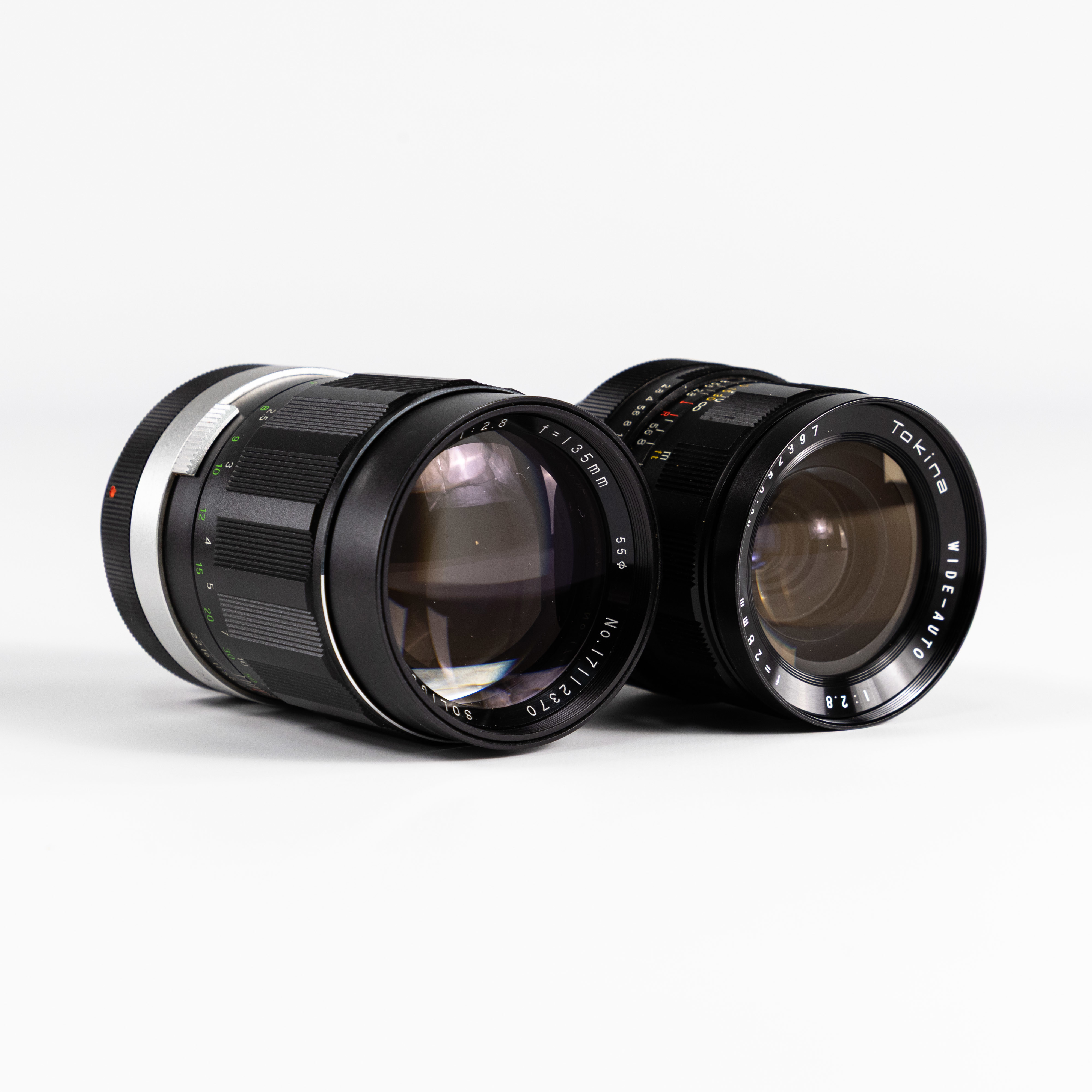 Systemkamera, Canon FX, Optik; Tokina Wide-auto 28 mm/1:2.8, Soligor Tele-auto 135 mm/1:2.8, ca mitten av 1960-talet, Japan