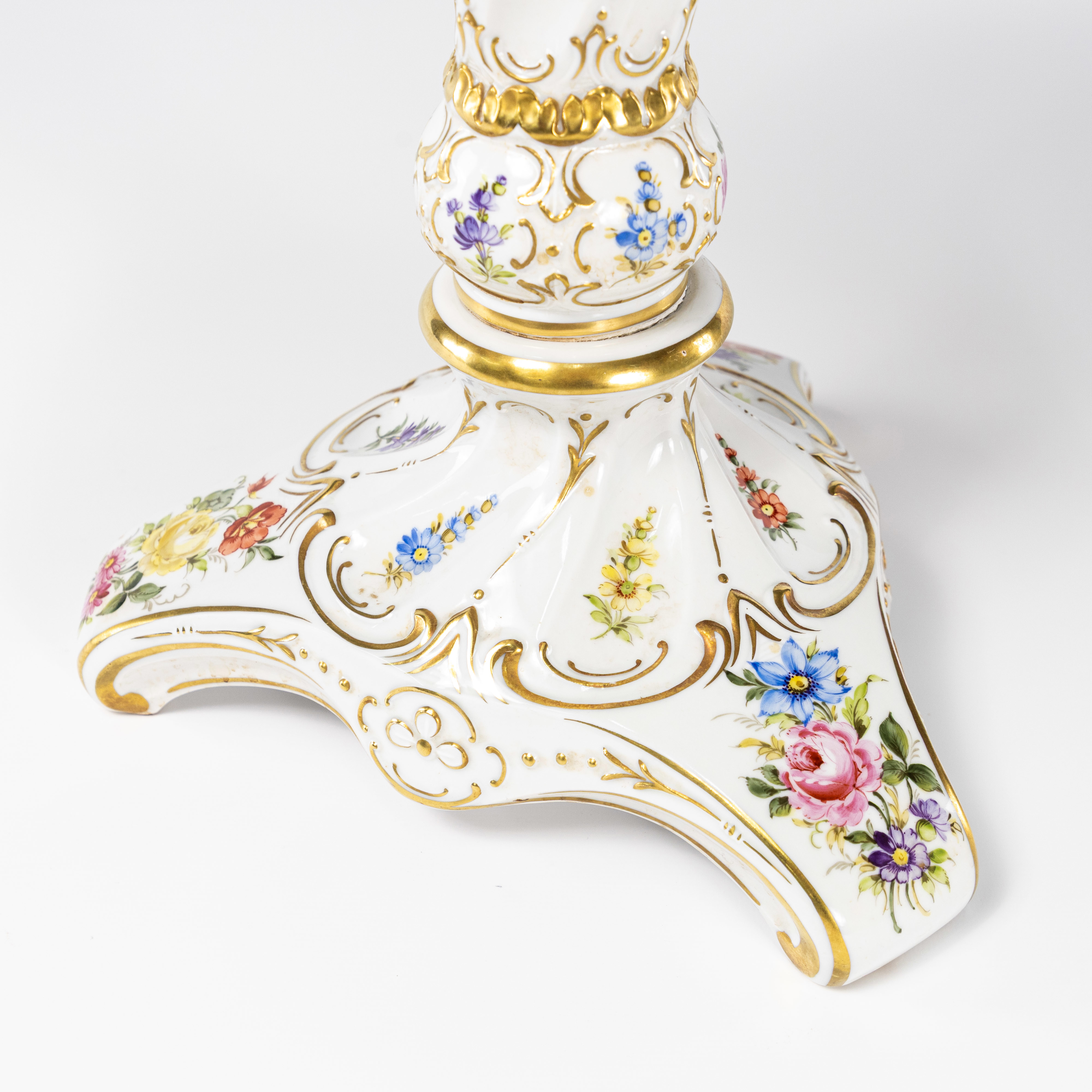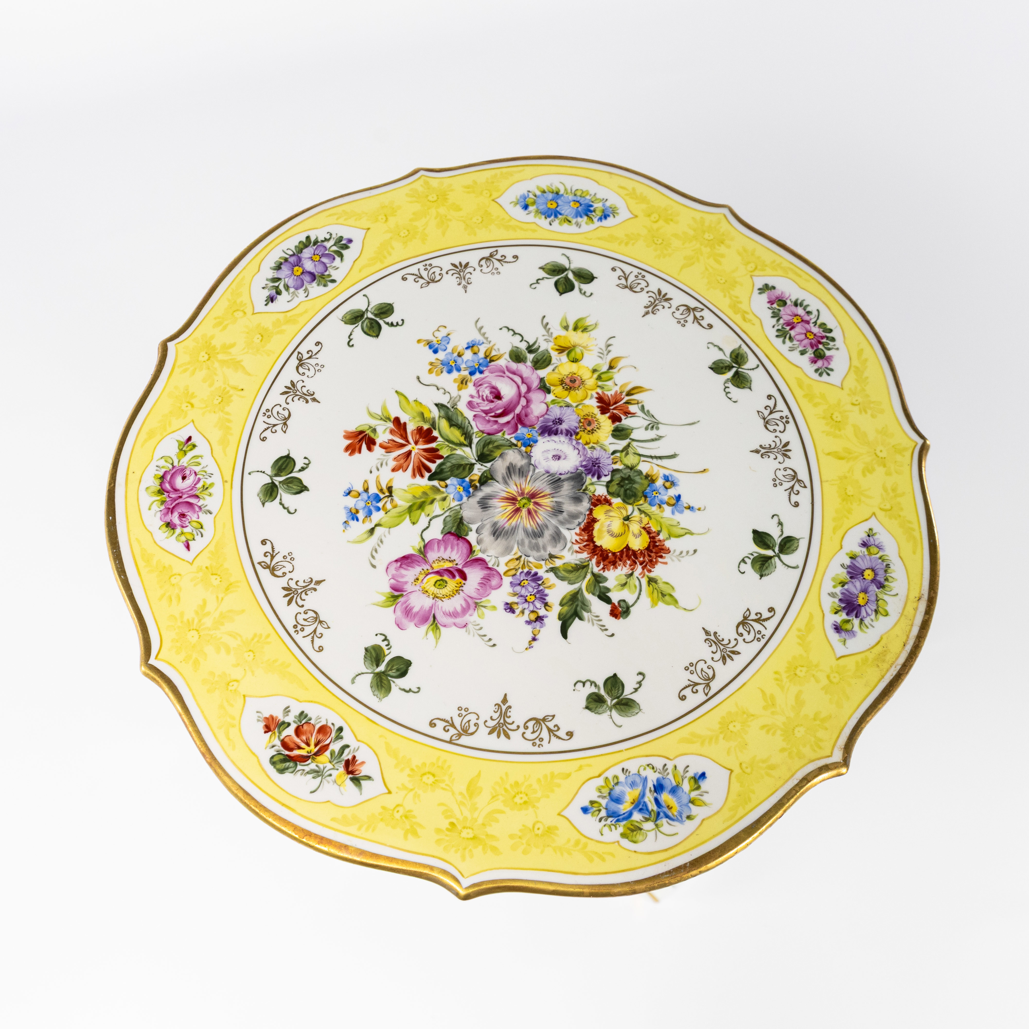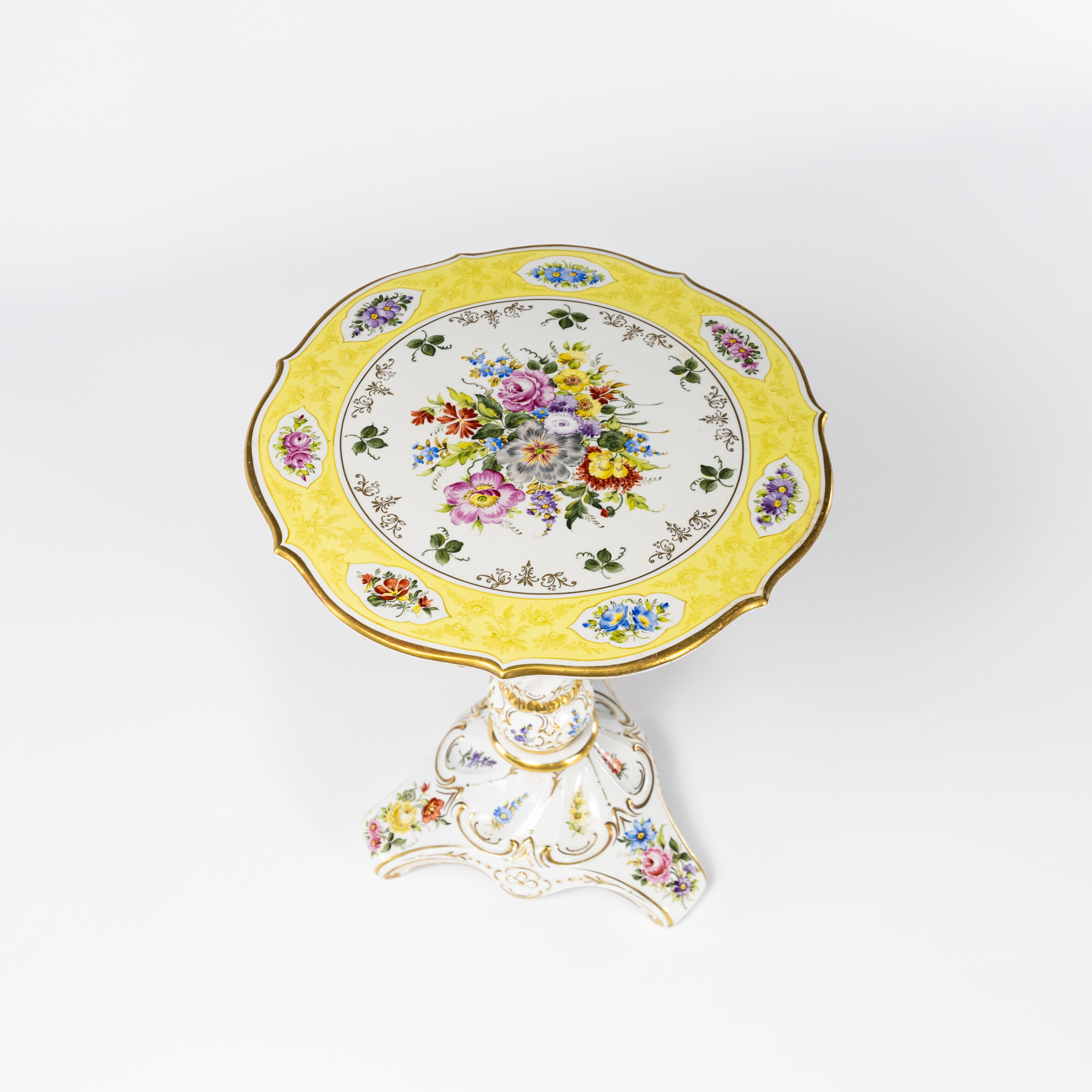 Pelarbord, porslin med handmålad dekor i gult samt blommor och guld, Porzellanmanufaktur Plaue, Tyskland, höjd 44 cm