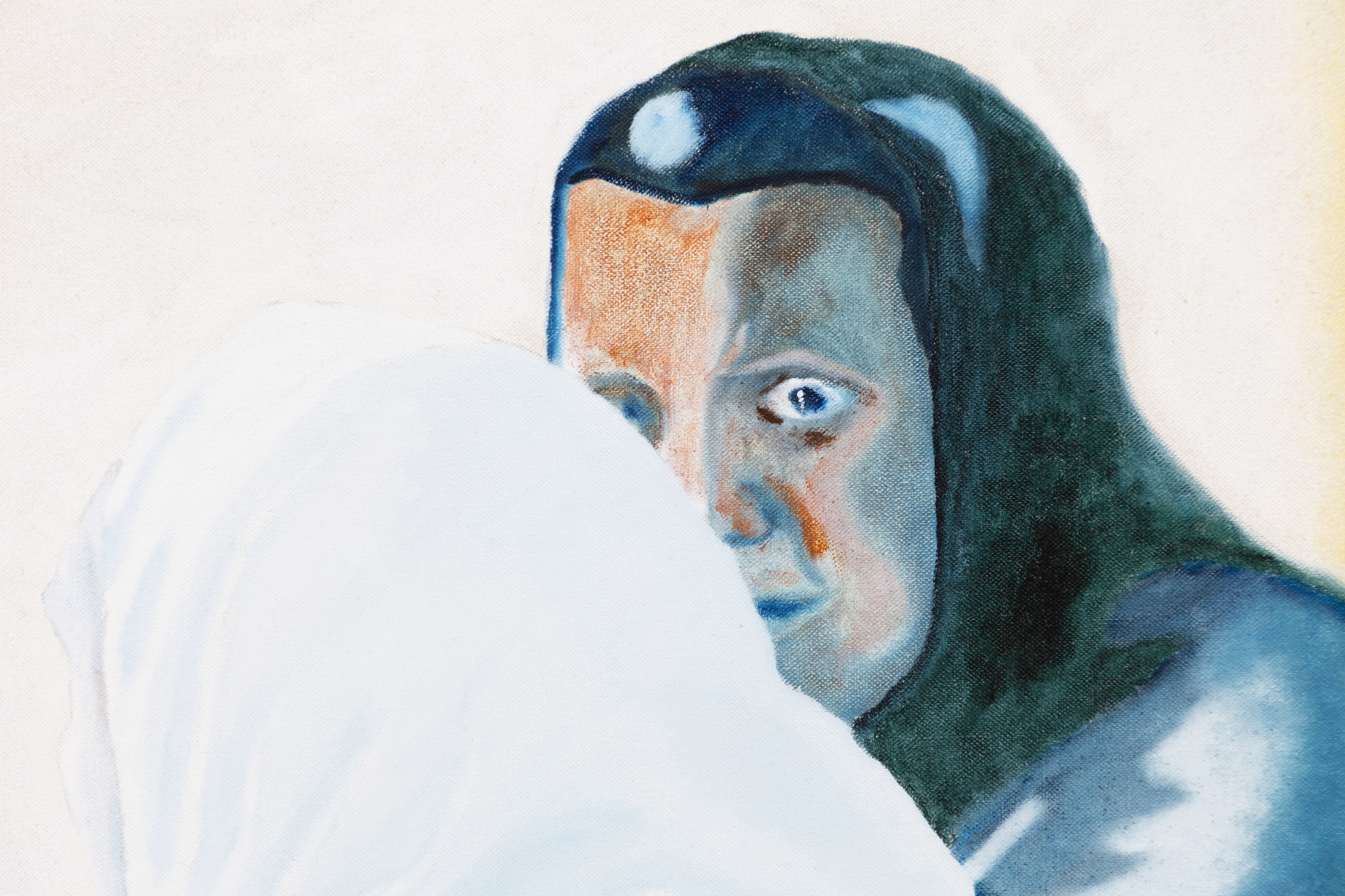 Carl E Larsson, olja på duk, motiv med bödelliknande karaktär samt kvinna, signerad, mått med ram ca 50 x 59 cm