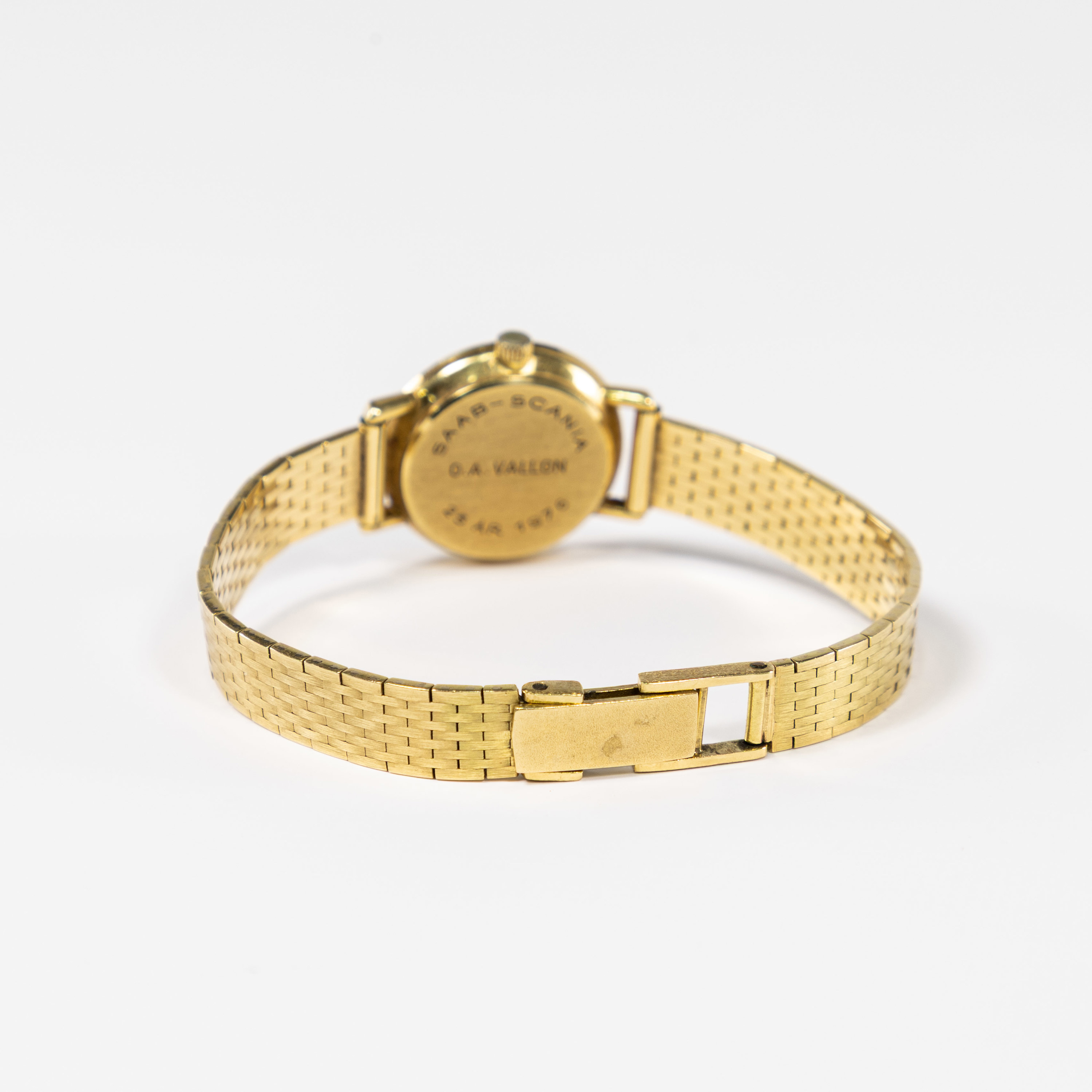 Omega, diameter exkl. krona ca 23,5 mm, 18k guld, länk i 18k guld, manuellt urverk, ca 1970-tal, gravyr; Saab-Scania, bruttovikt 40,1 gram