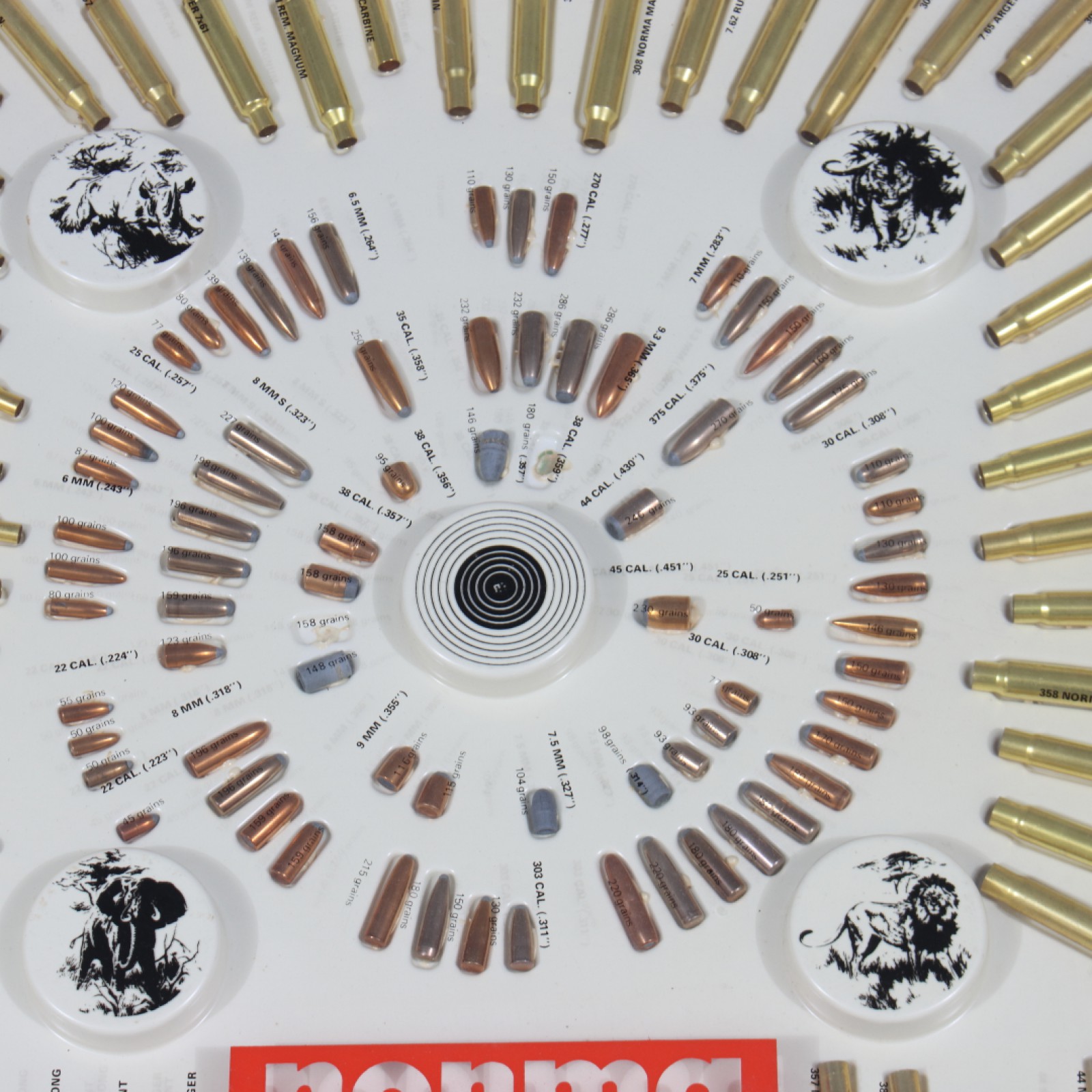Skylt i plast, patroner i metall, H.55, B.55, Dj.5,5 cm. (vån3)