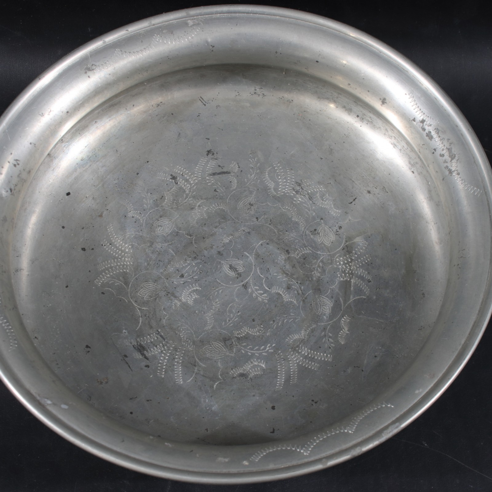 Tenn, 1928, invändigt med svarta fläckar, höjd 8 cm, diameter 23 cm. (vån3)