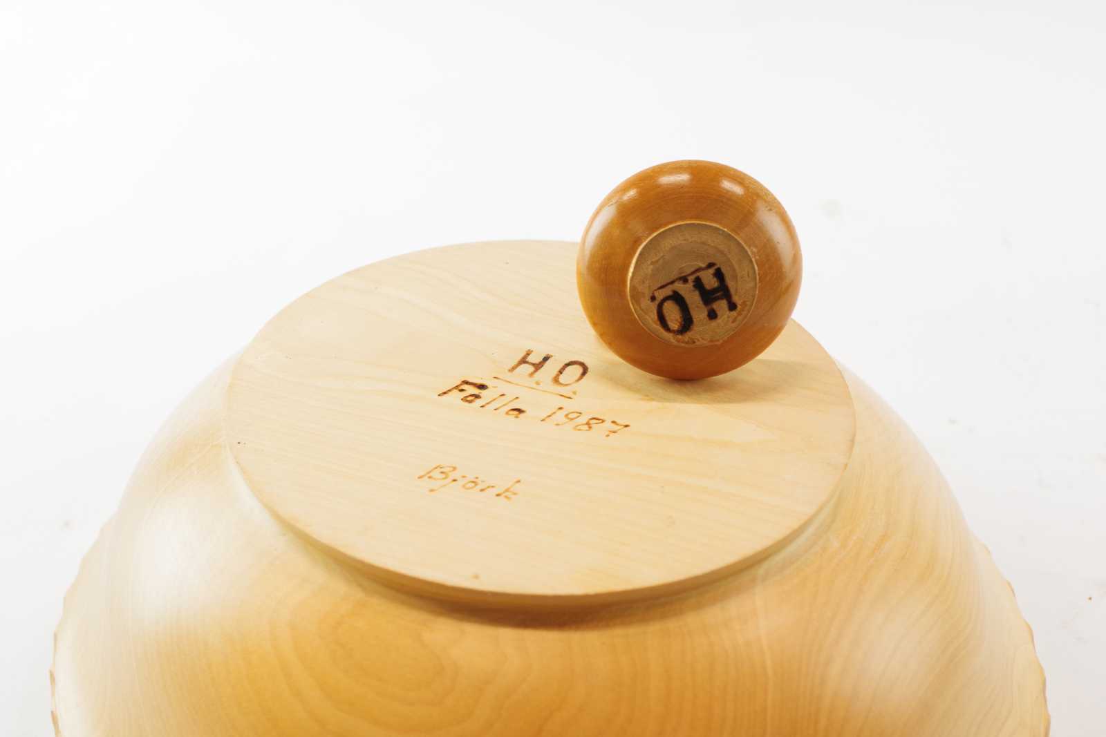 LJUSSTAKE &TRÄSKÅL Signerad HO i Falla 1987 (Harry) D:26 cm