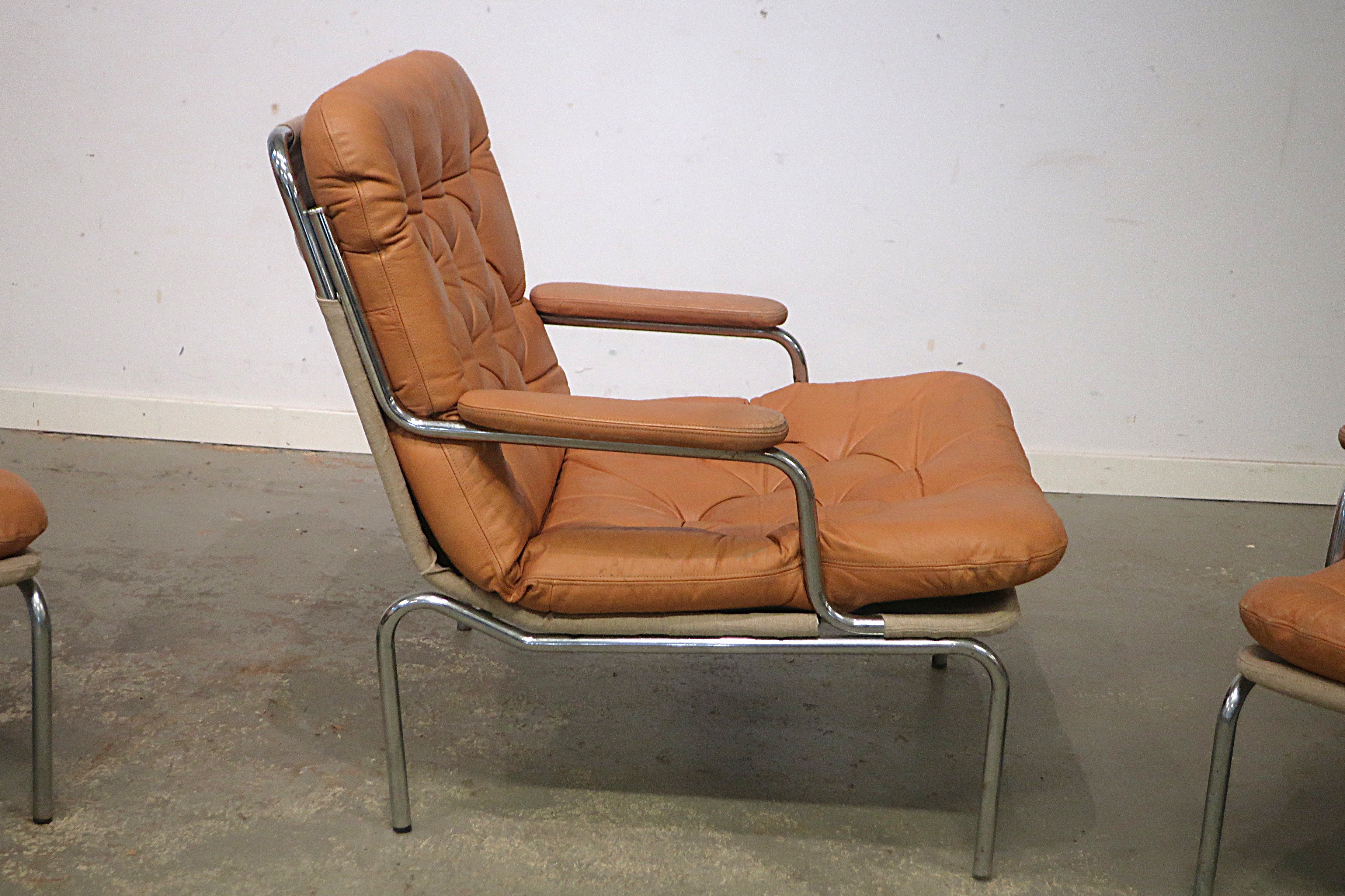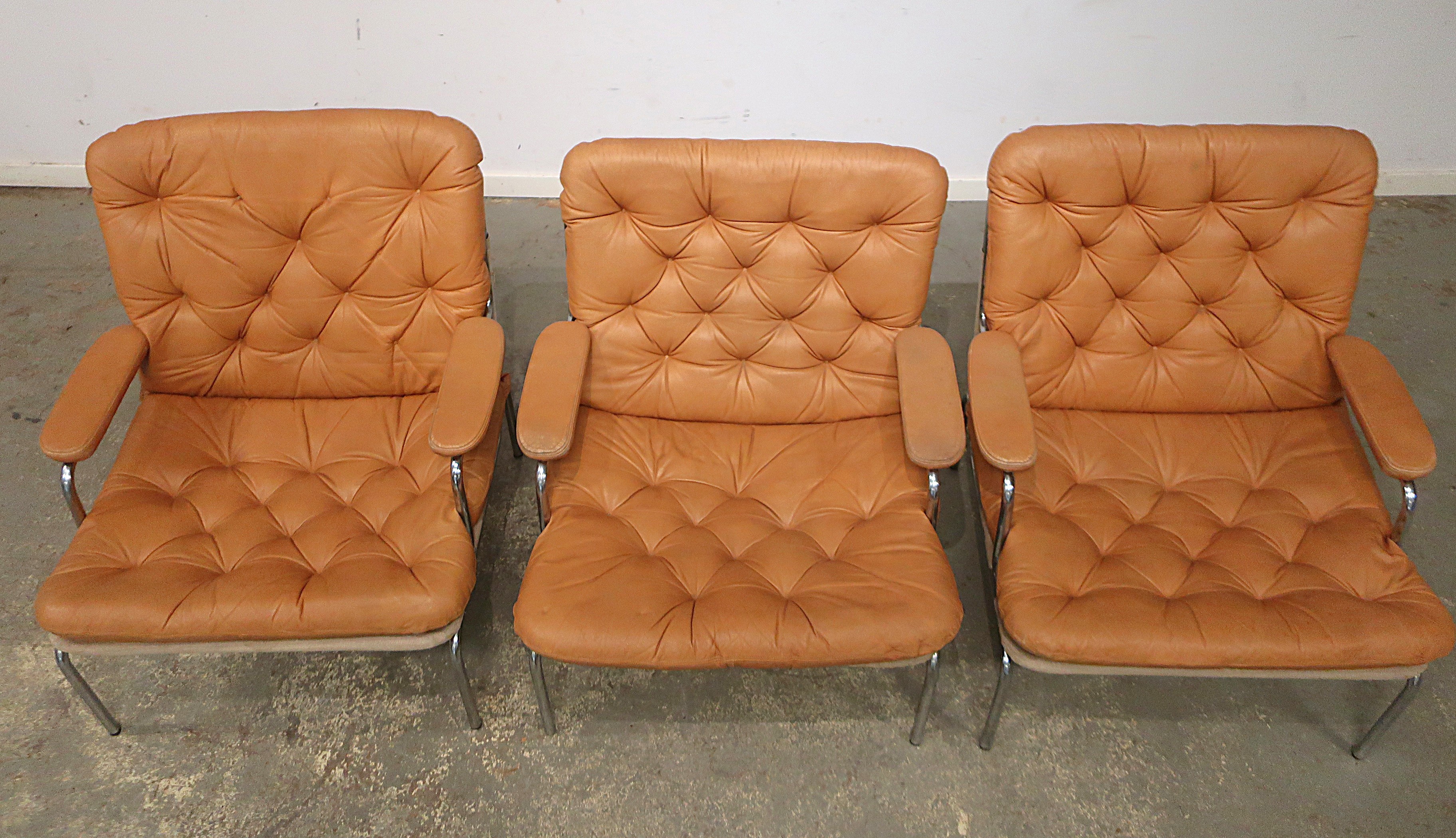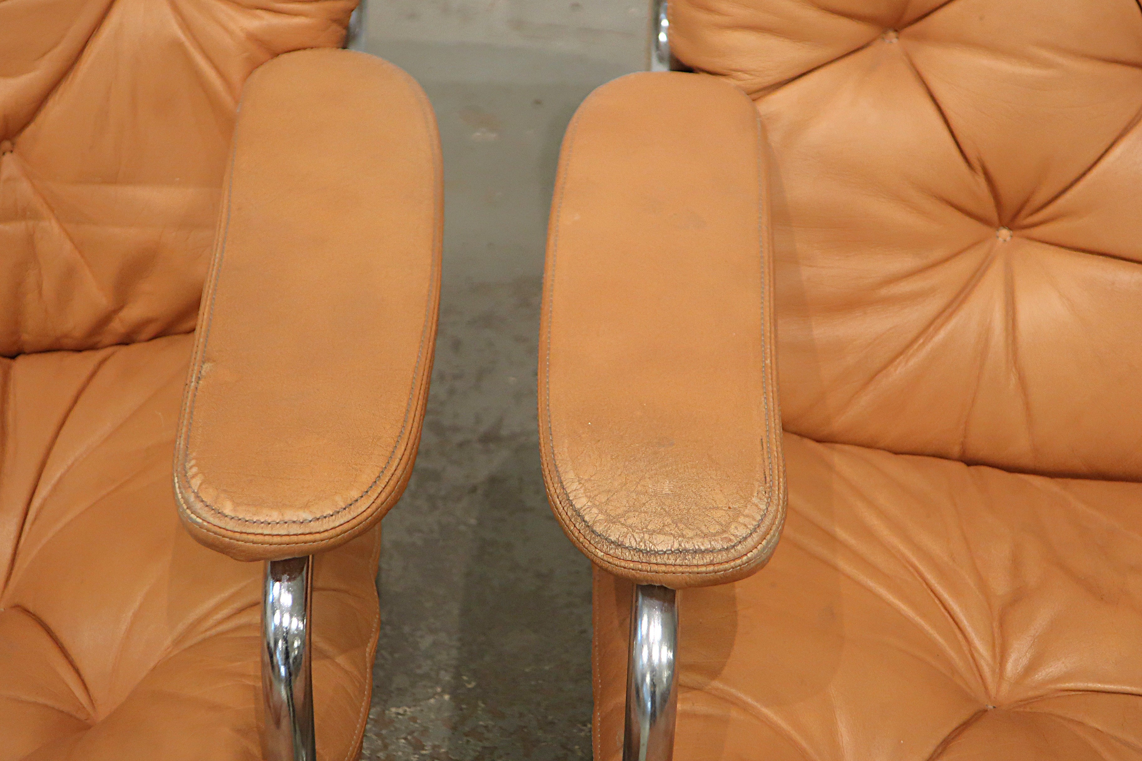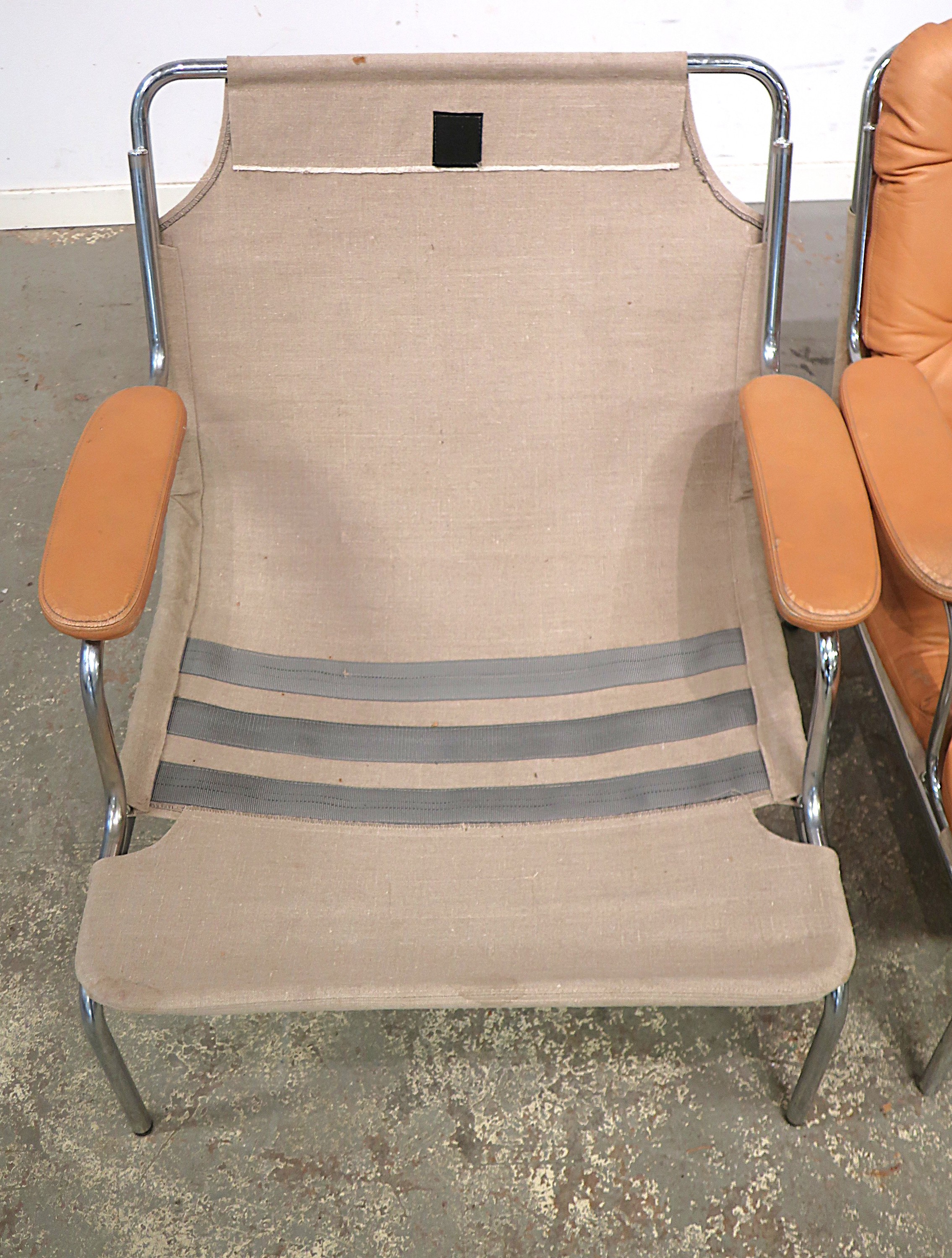 Stålrör, omärkta, dynor i skinn