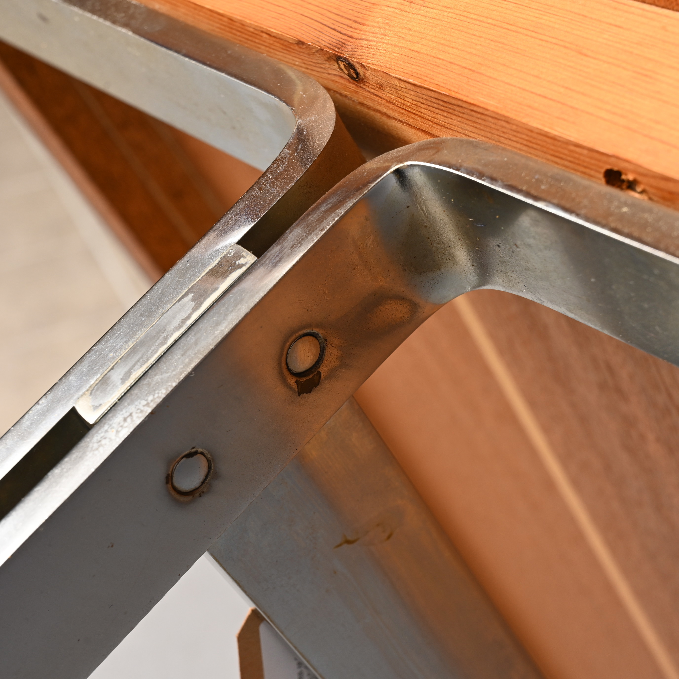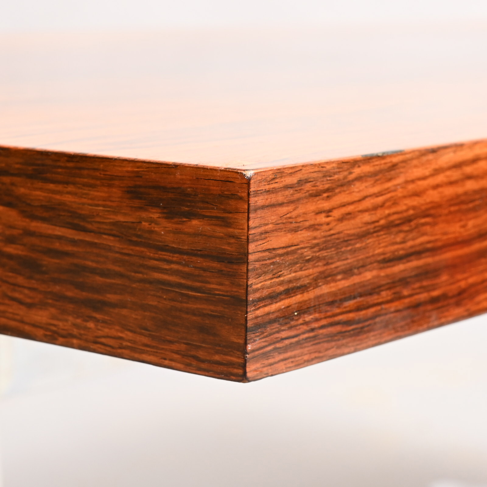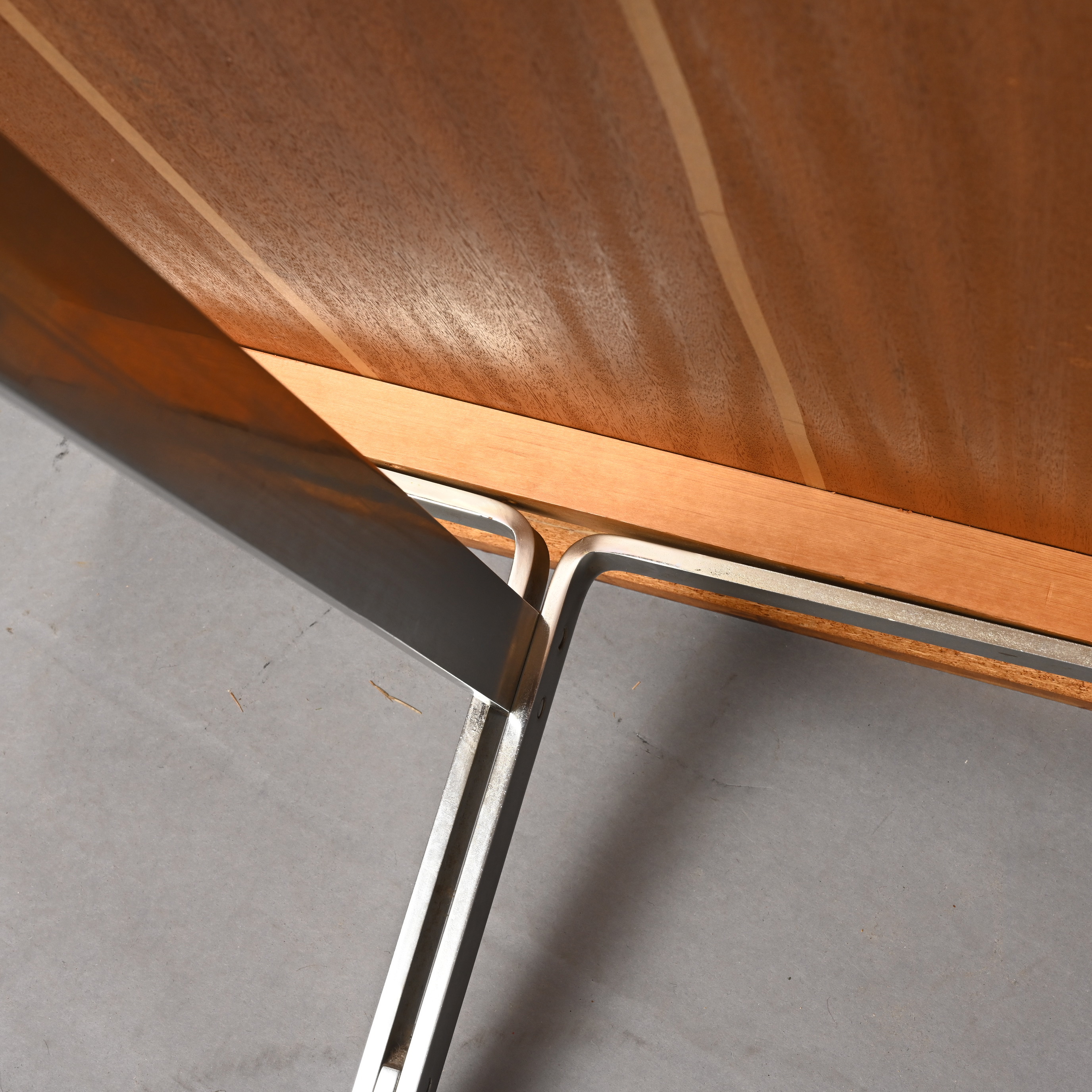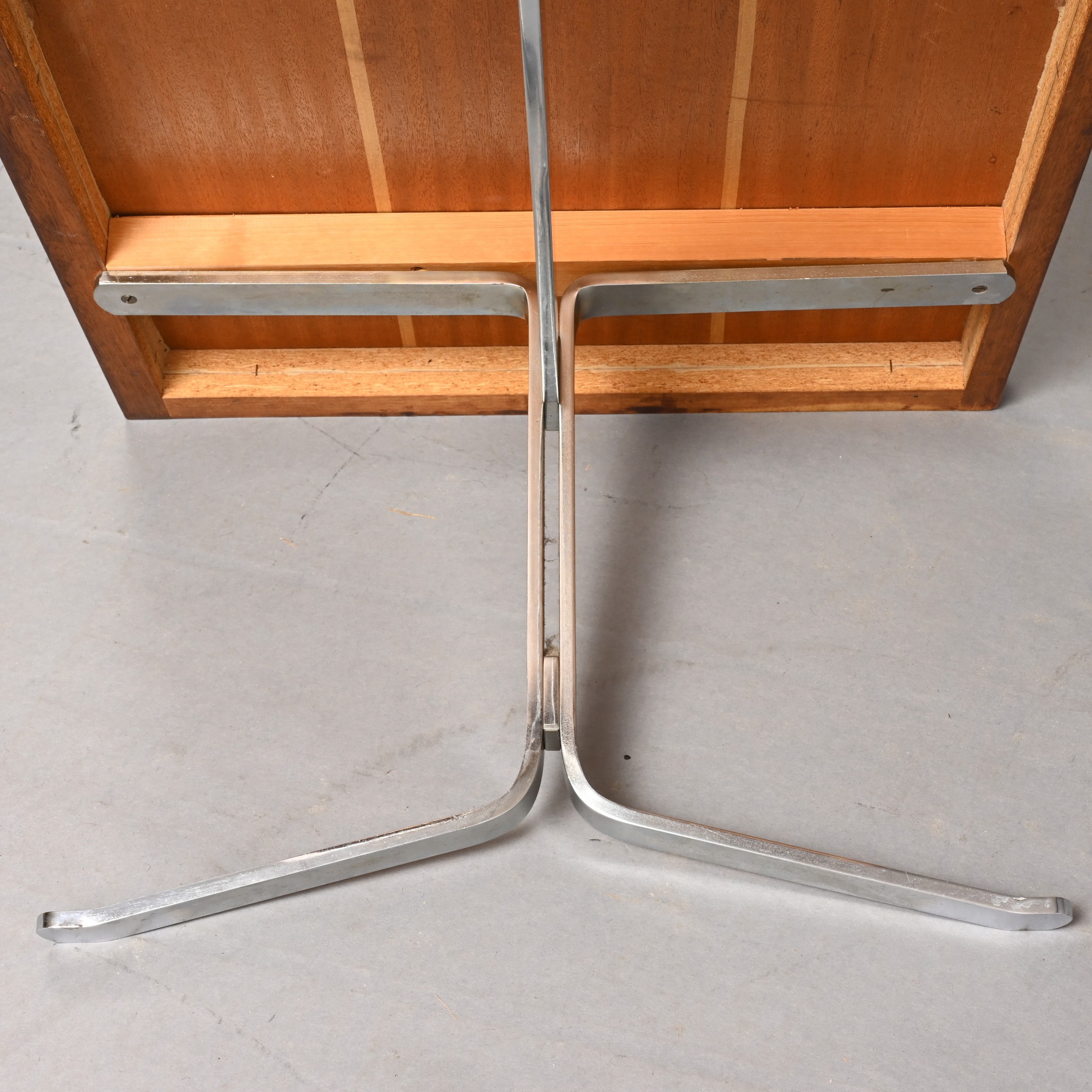 Bordsskiva fanerad med palisander, benställning av kromat stål. CITES-intyg medföljer, höjd 50, 140 x 65 cm