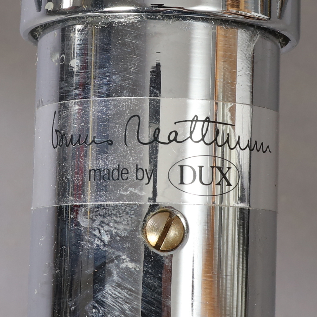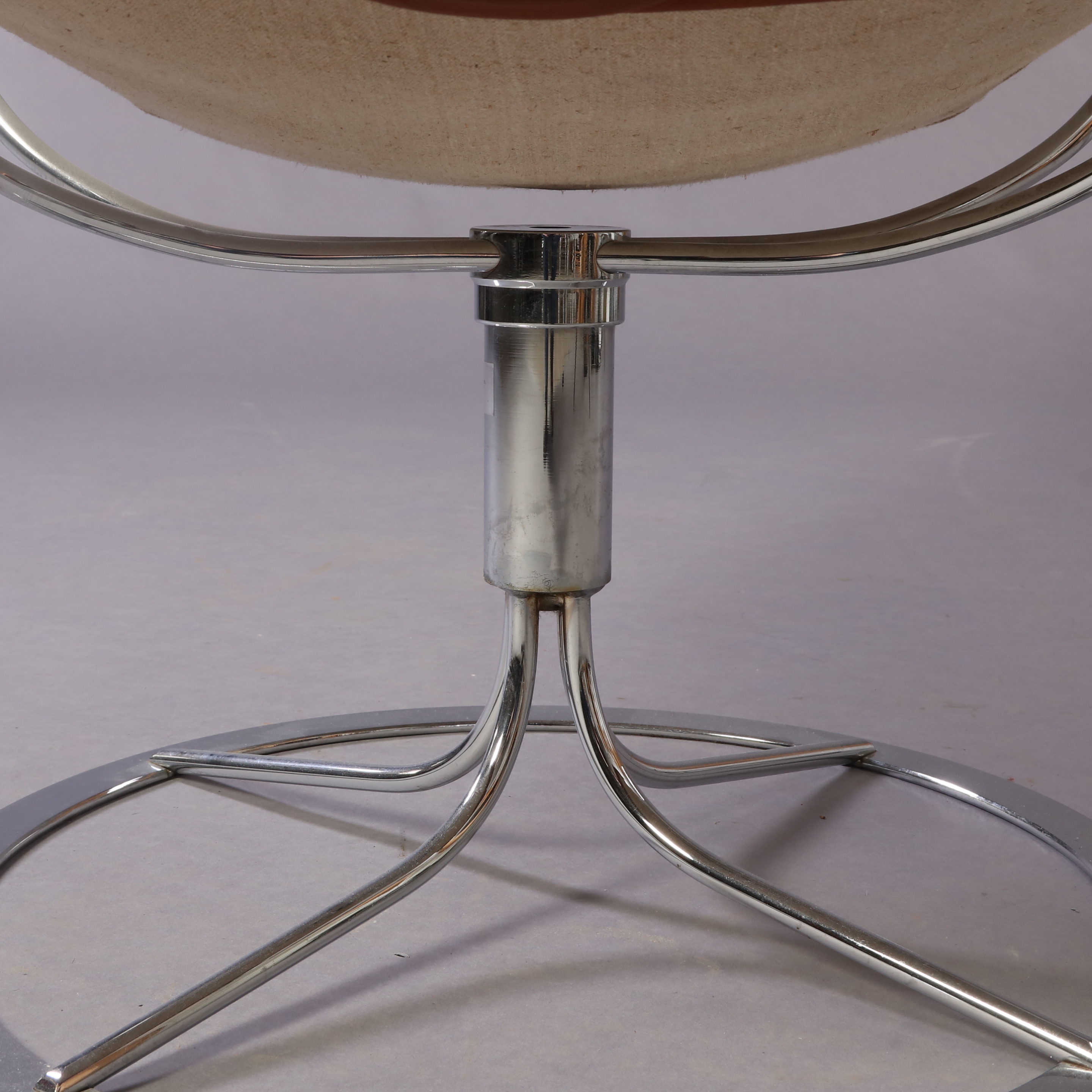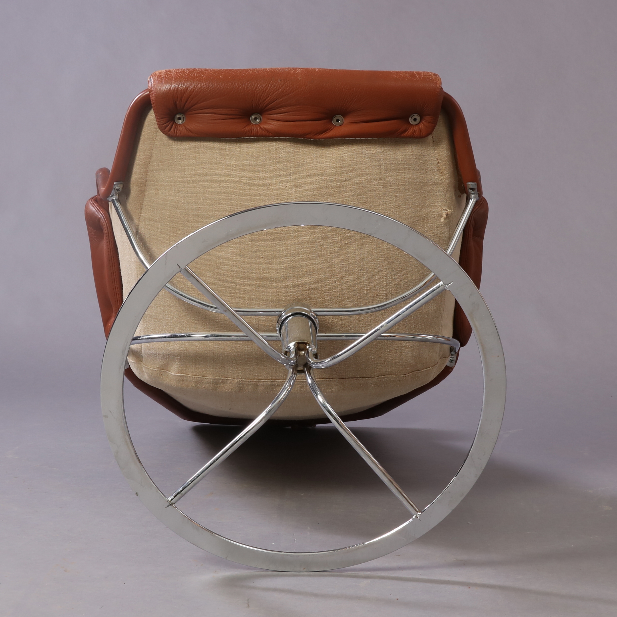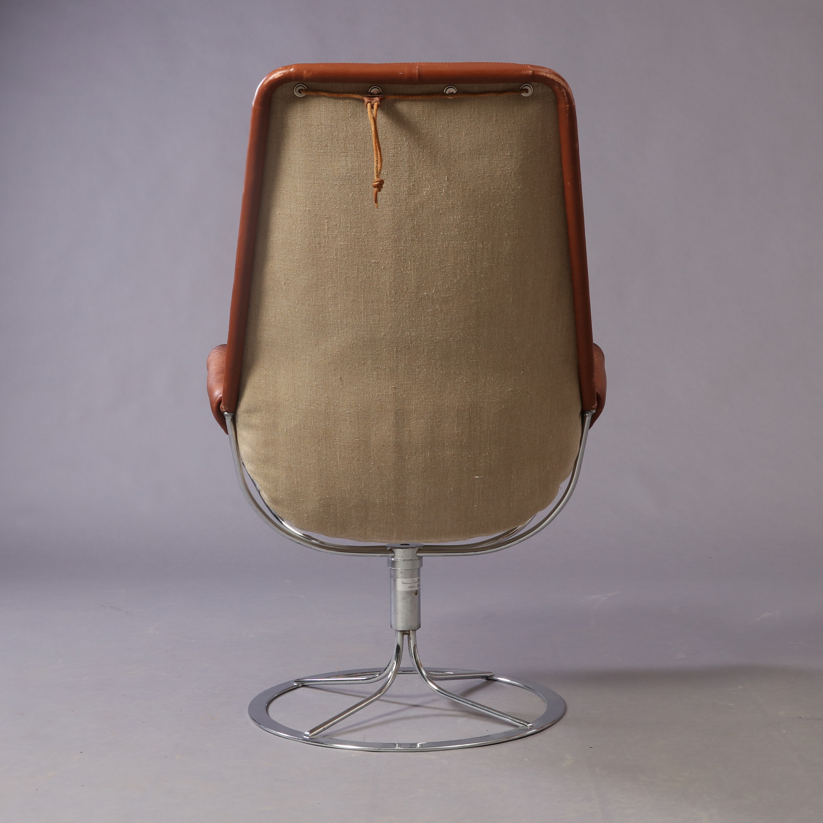 Dux, kromat metallunderrede, sits i brunt läder, snurrbar, sitthöjd 41 cm