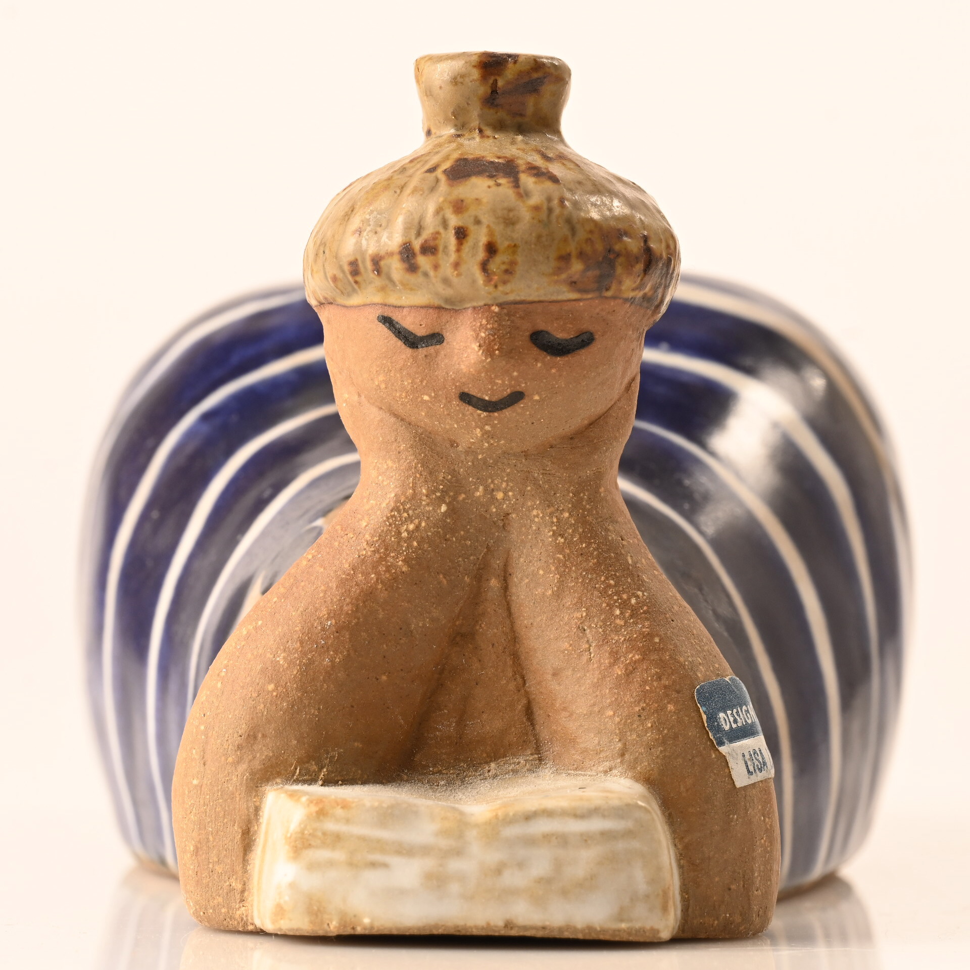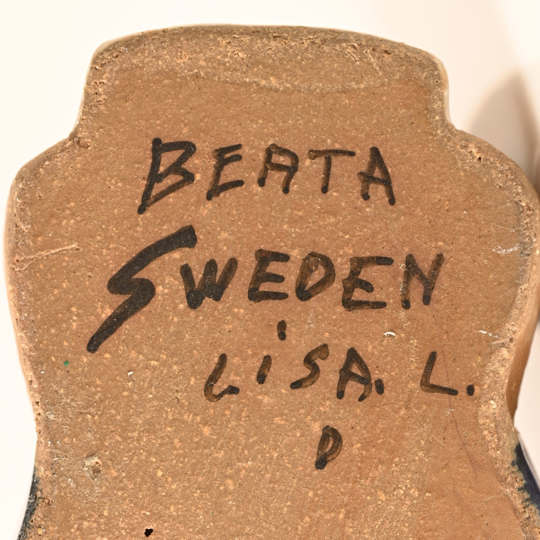 "Beata", ur serien ABC-flickorna, glaserat stengods, Gustavsberg, etikettmärkt, undertill märkt 'Beata' Lisa L, Sweden, höjd 9 cm, längd ca 19 cm.