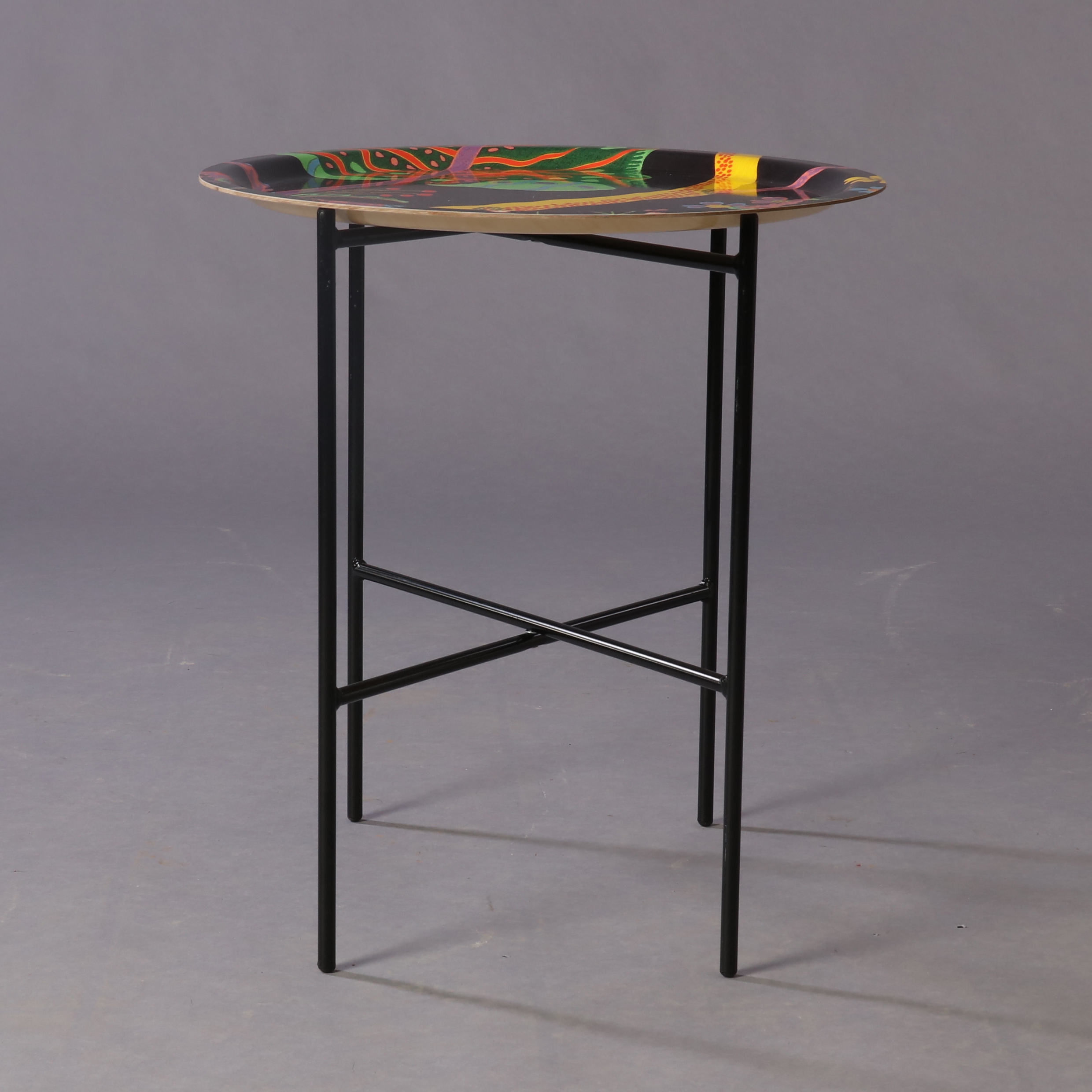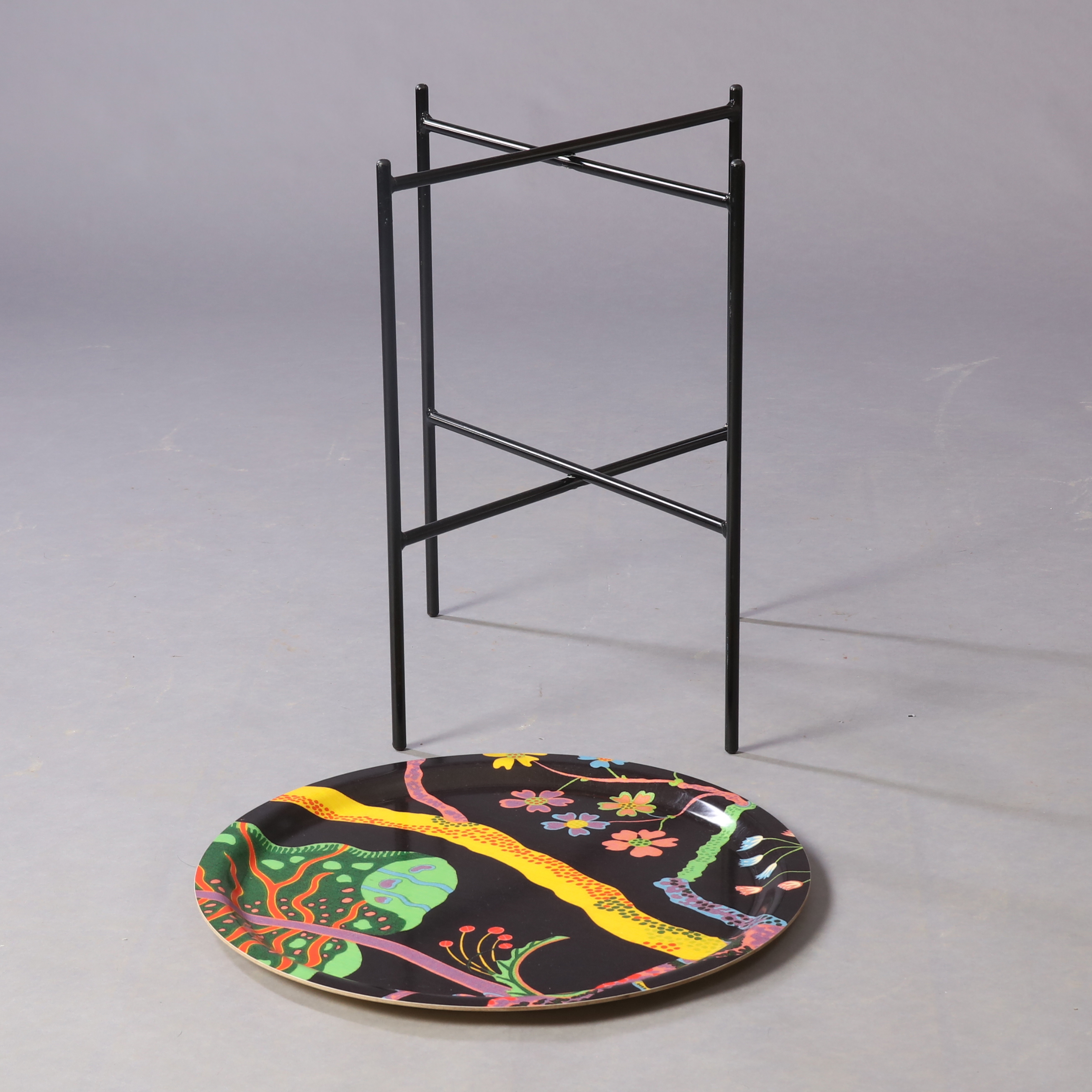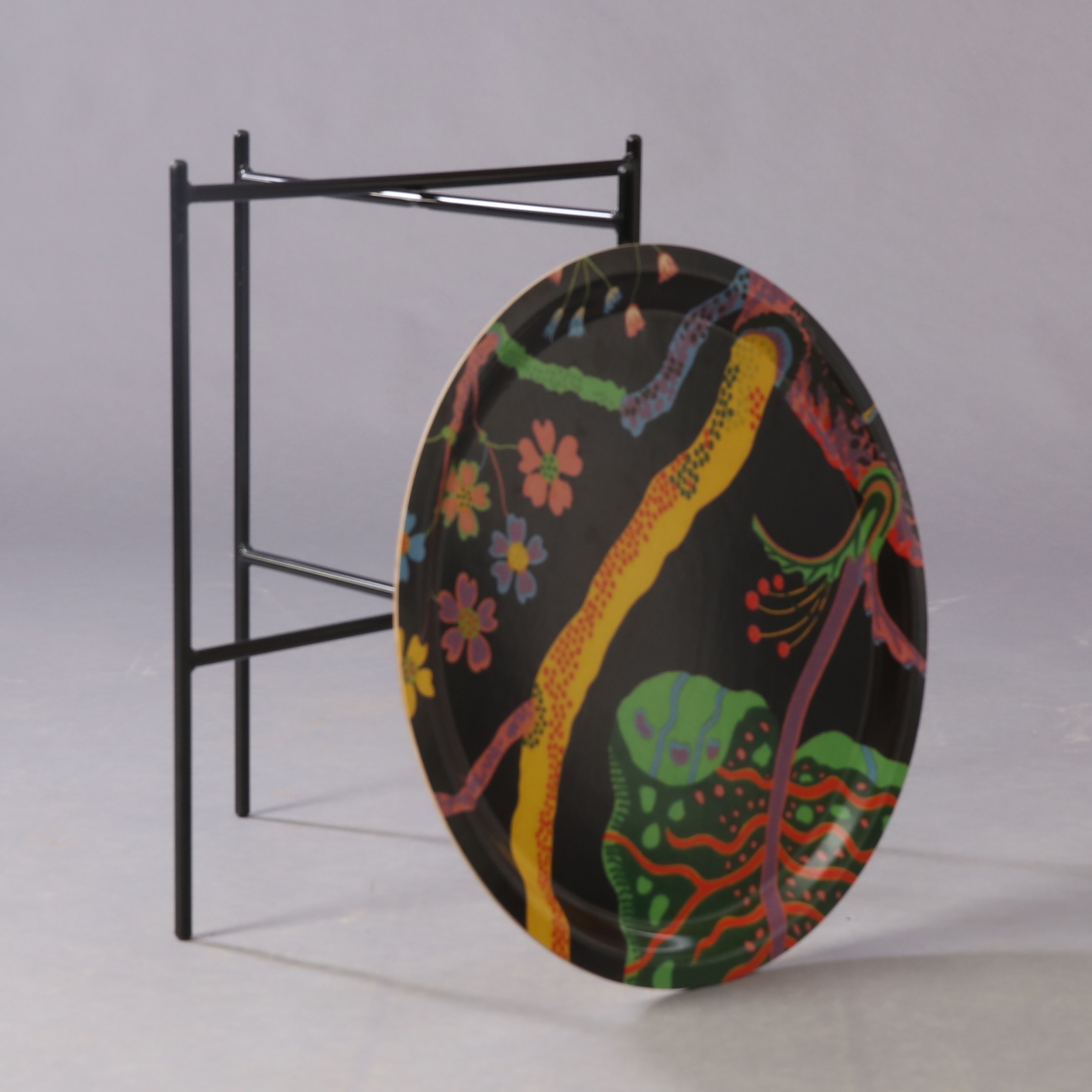 Svartlackerat metallunderrede, med bricka "Hawaii", höjd 54, diam 49 cm