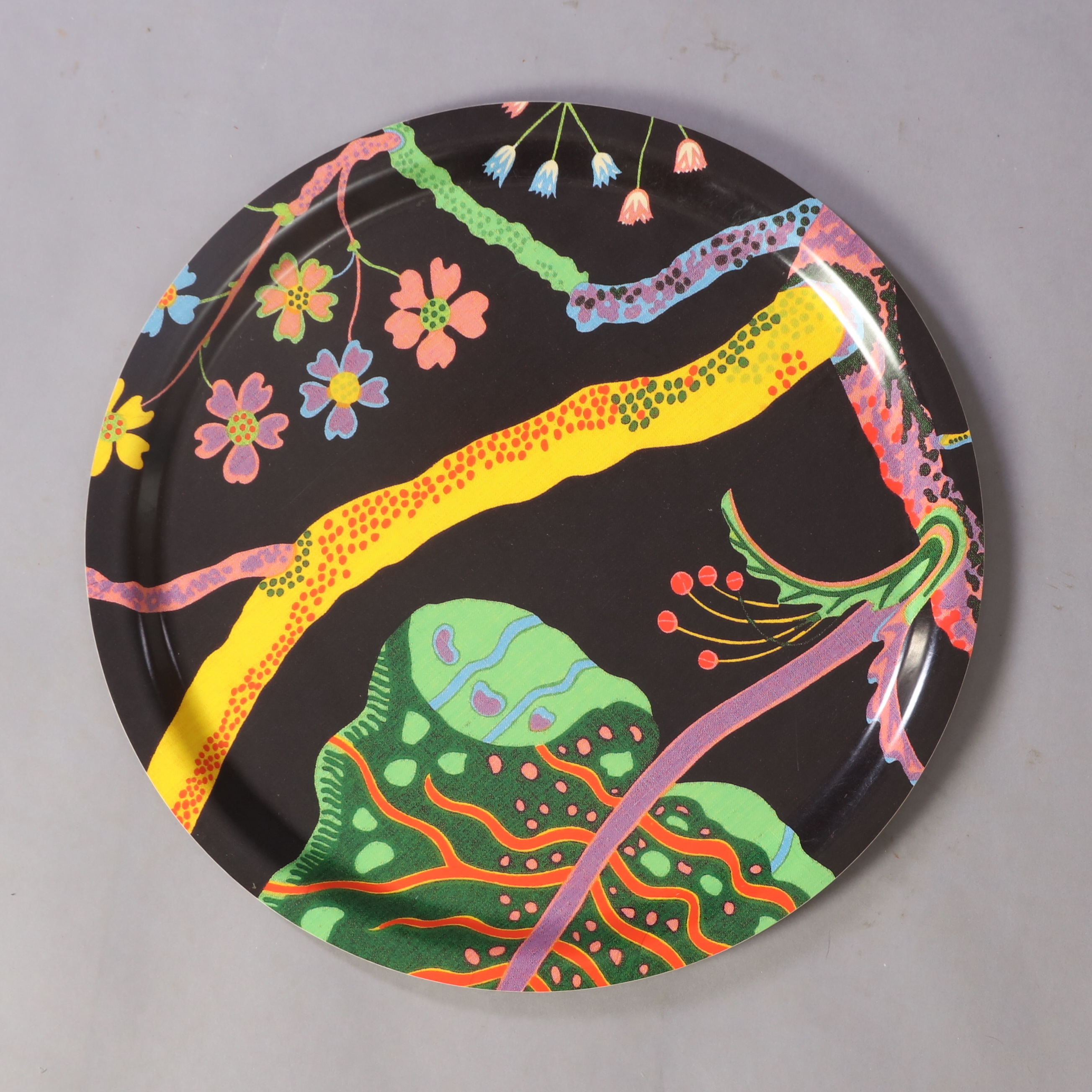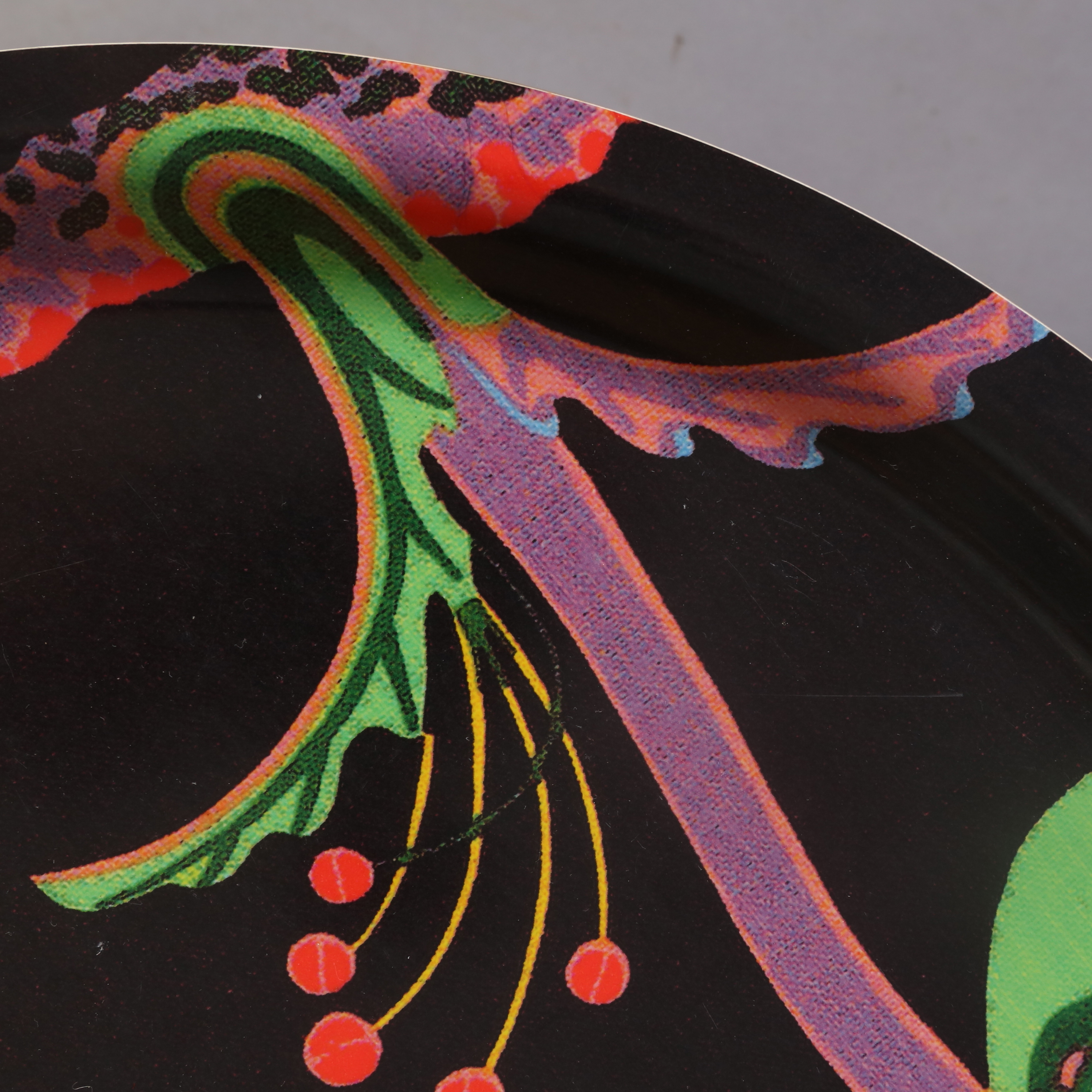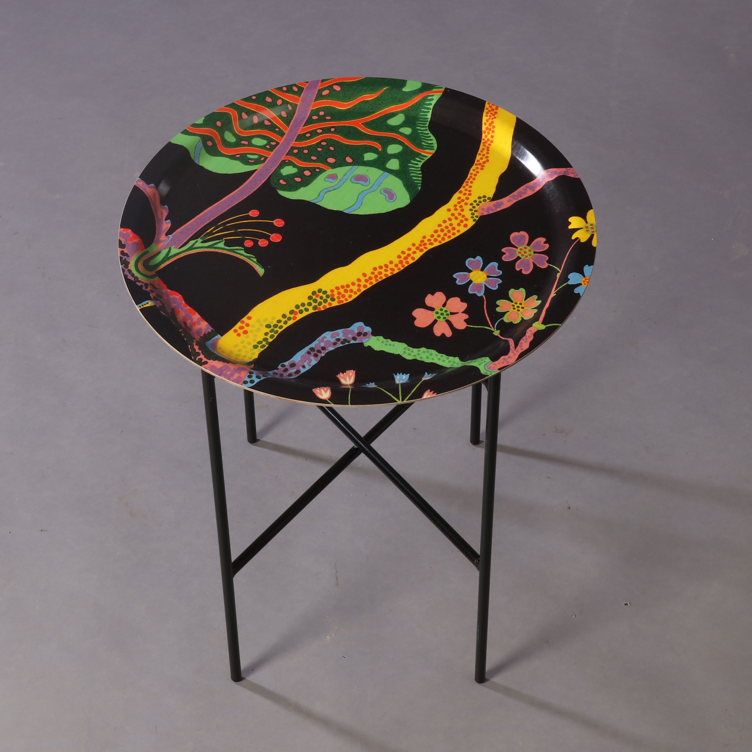 Svartlackerat metallunderrede, med bricka "Hawaii", höjd 54, diam 49 cm