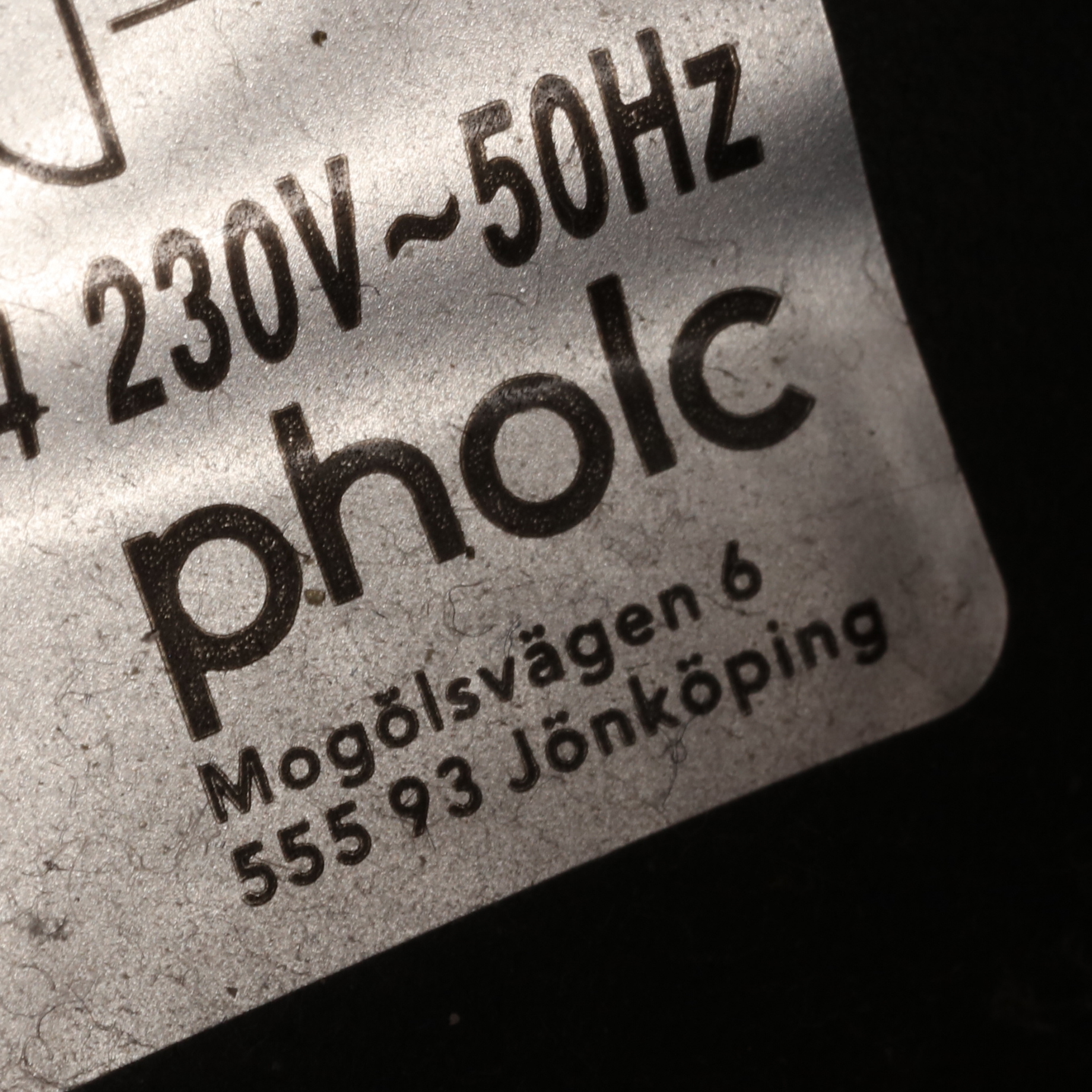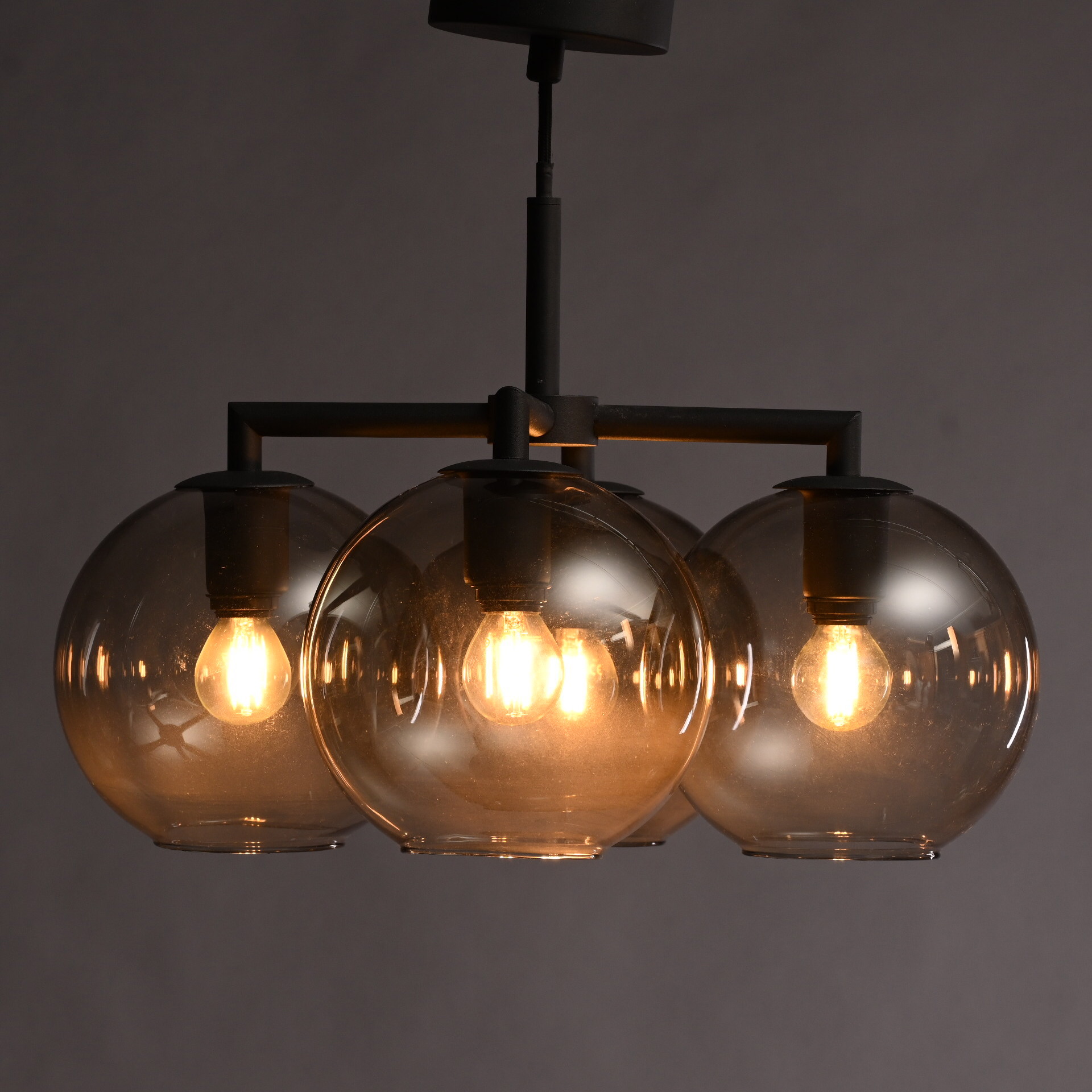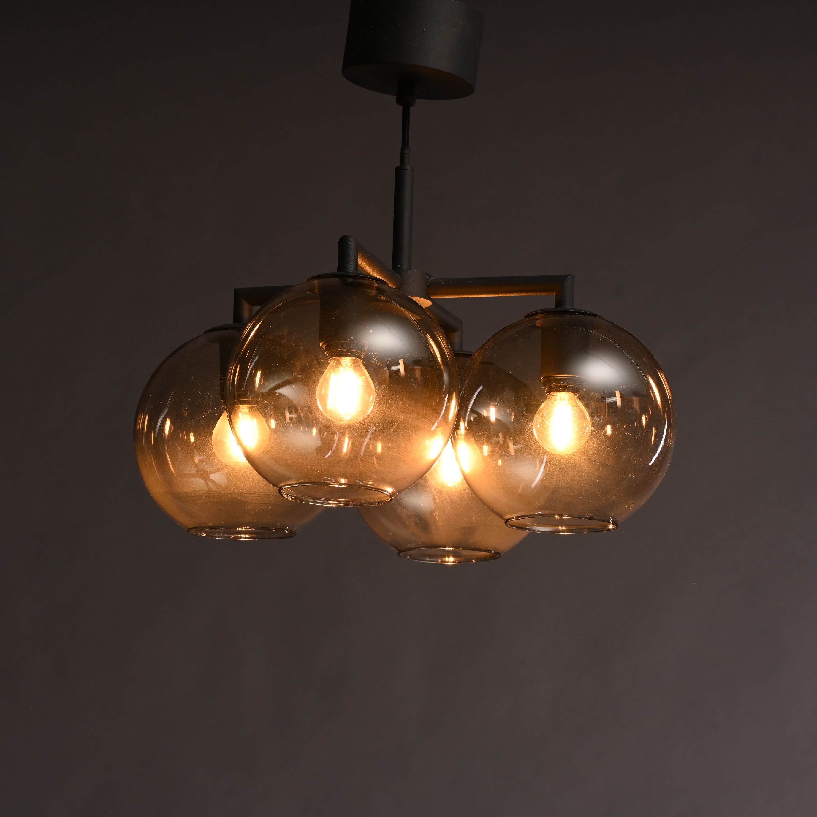 4 ljuspunkter, rökfärgade kupor i glas, etikettmärkt PHOLC, höjd exkl sladd 30, diam 47 cm