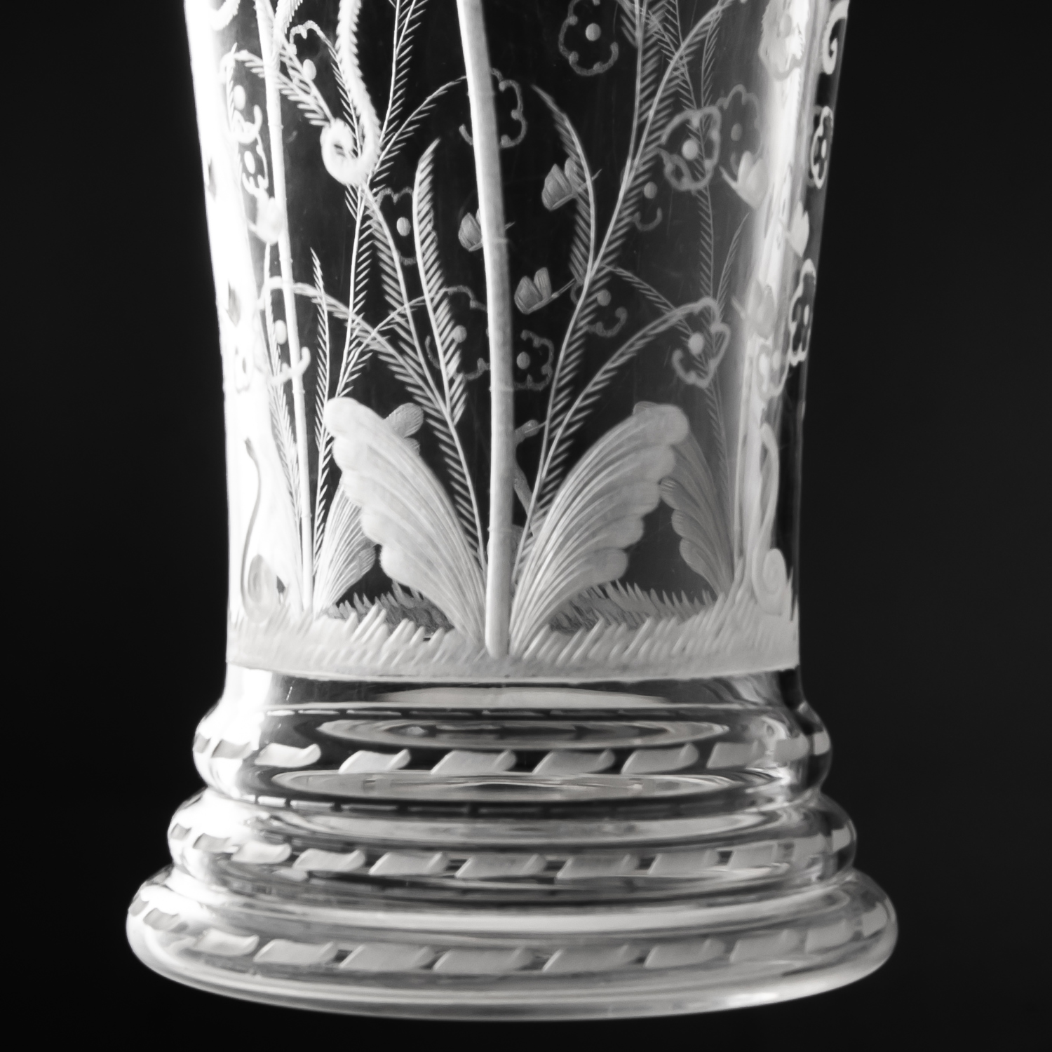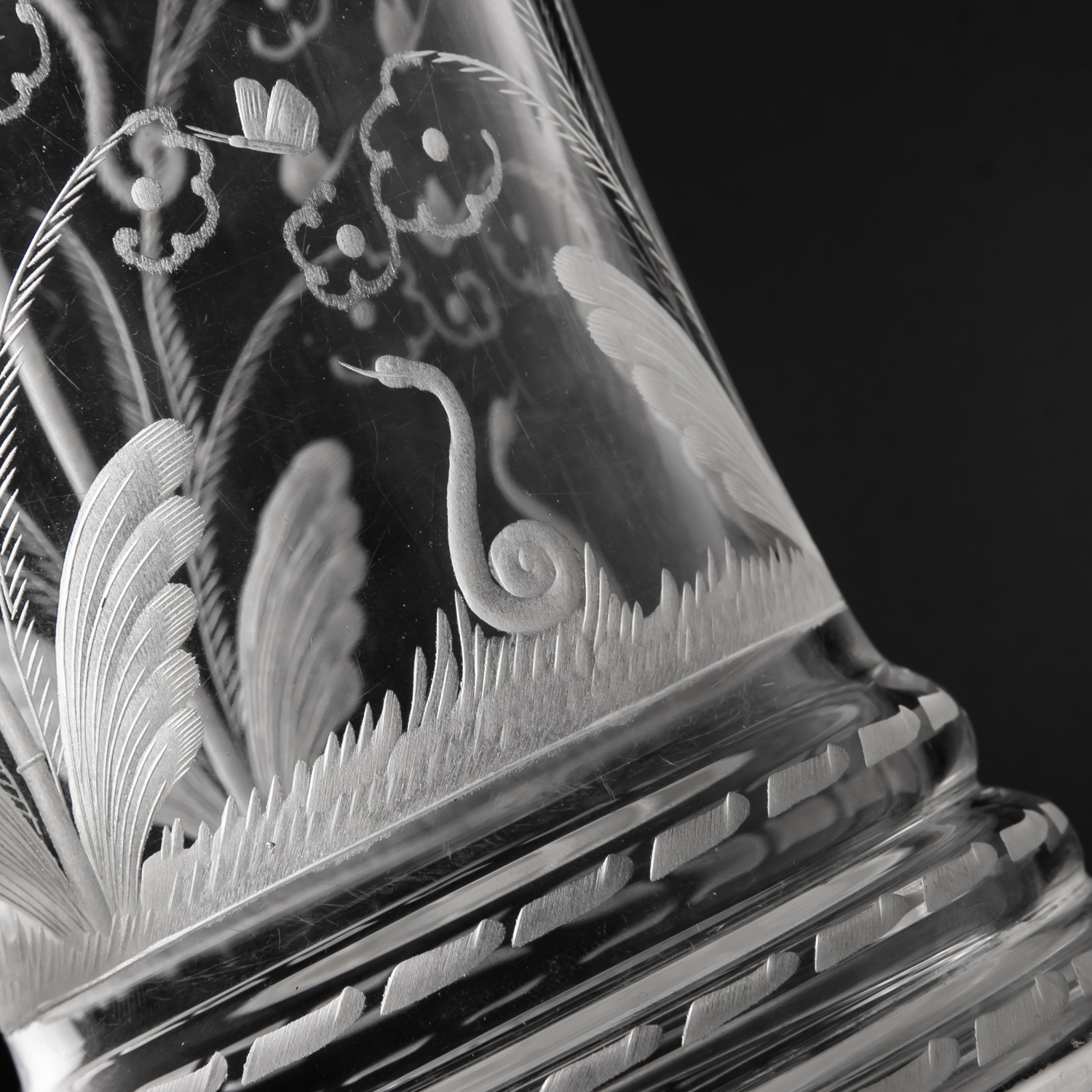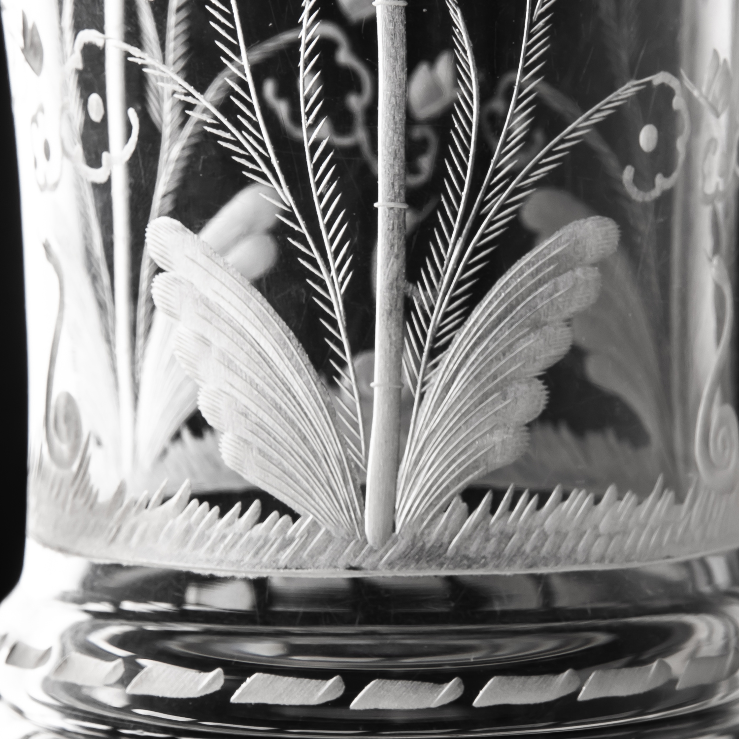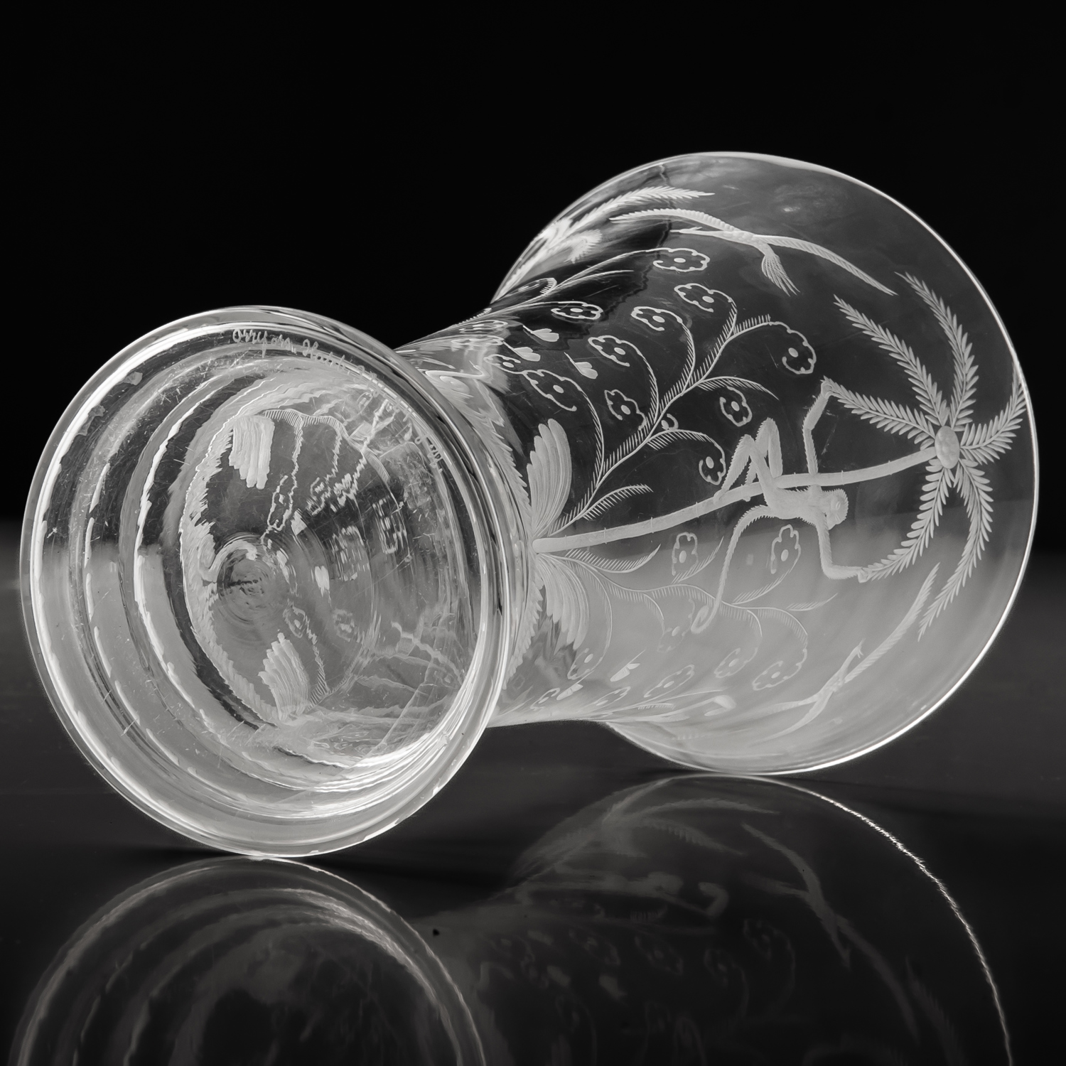 EDWARD HALD, "Urskogen", vas, Orrefors 1924, graverad dekor av apor och fåglar i urskogsvegetation, signerad: Orrefors Hald 378.24.J.02.