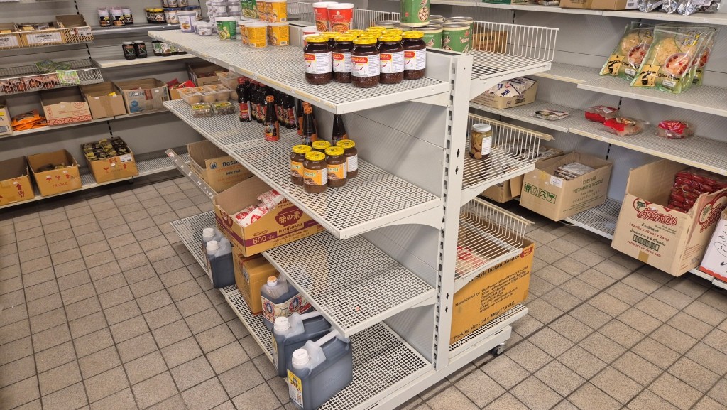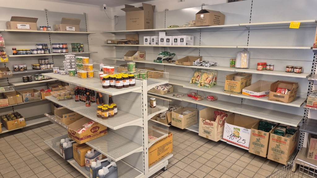 Butikshylla 12-sektioner, ca 50 hyllplan + golvgondolBredd per sektion: 90cmHöjd: 244cmGolvgondol: 180x131cmInnehåll ingår ej.