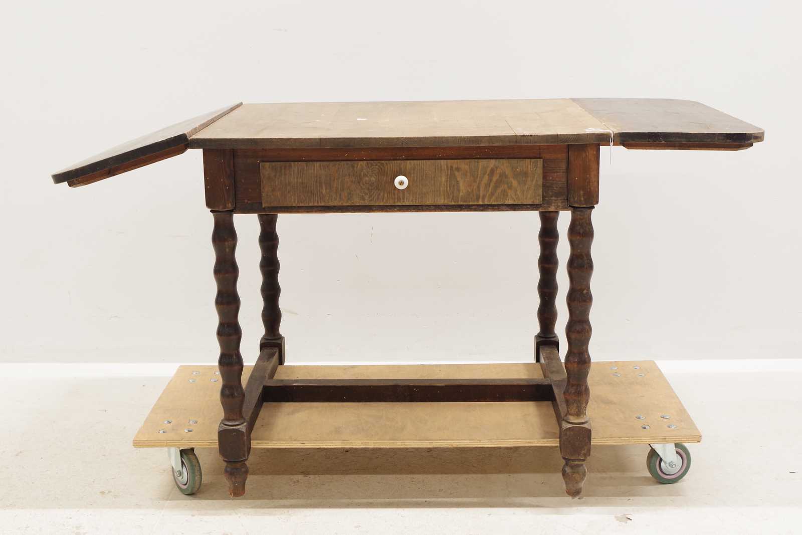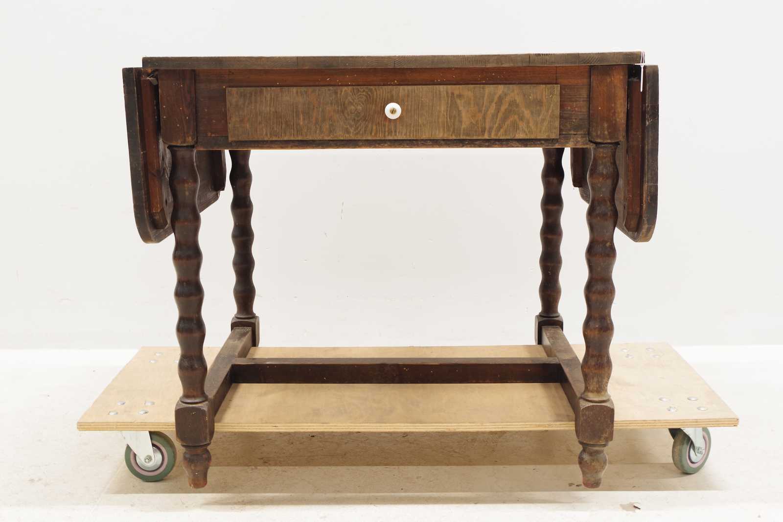 KLAFFBORD med låda, 1900 talets första hälft. H:77x 70x 80cm + 2st klaffar 30cm/st (slitage, fläckar)