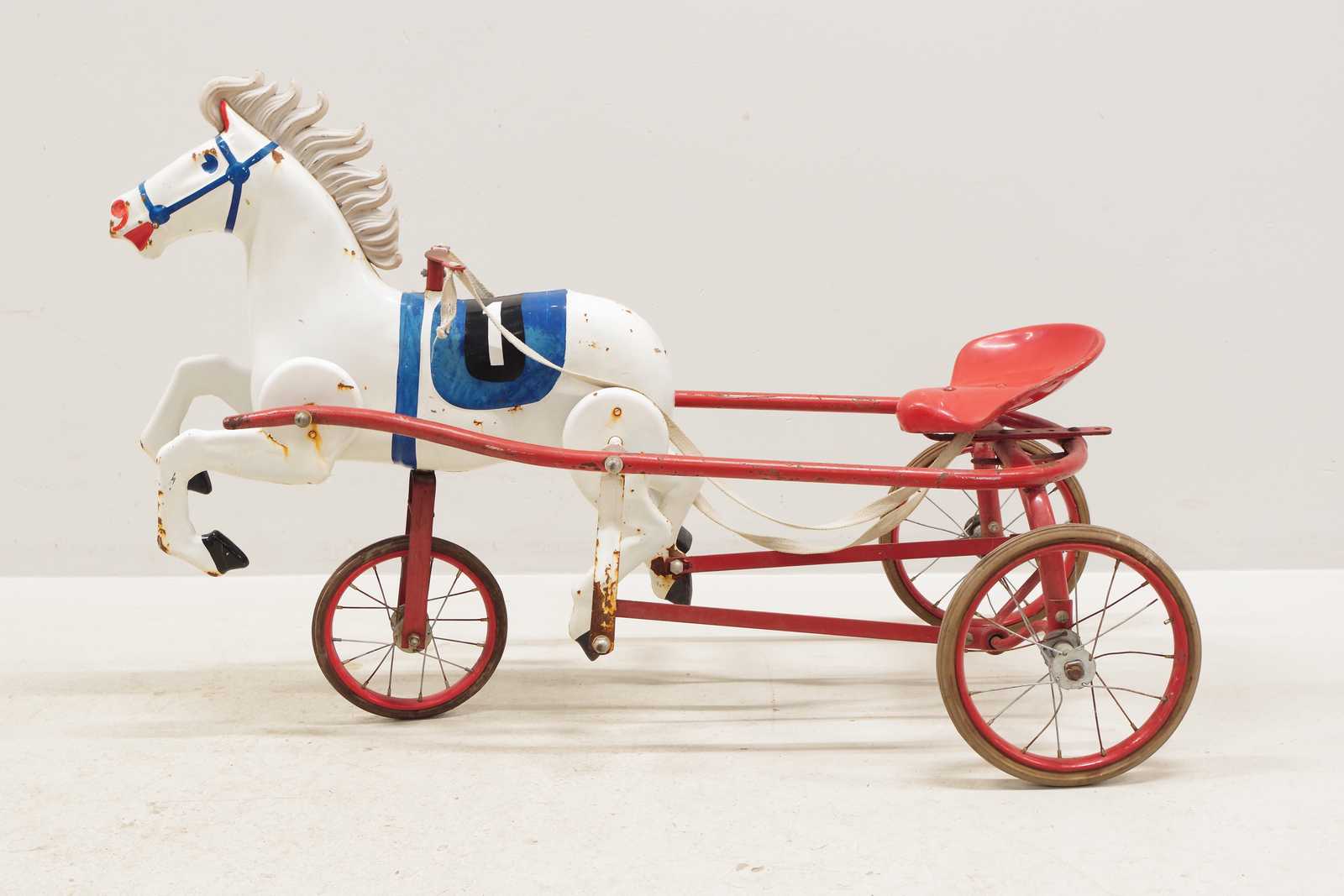 TRAMPHÄST i plåt, 1900-talets första hälft, L: ca 100cm (rost förekommer)