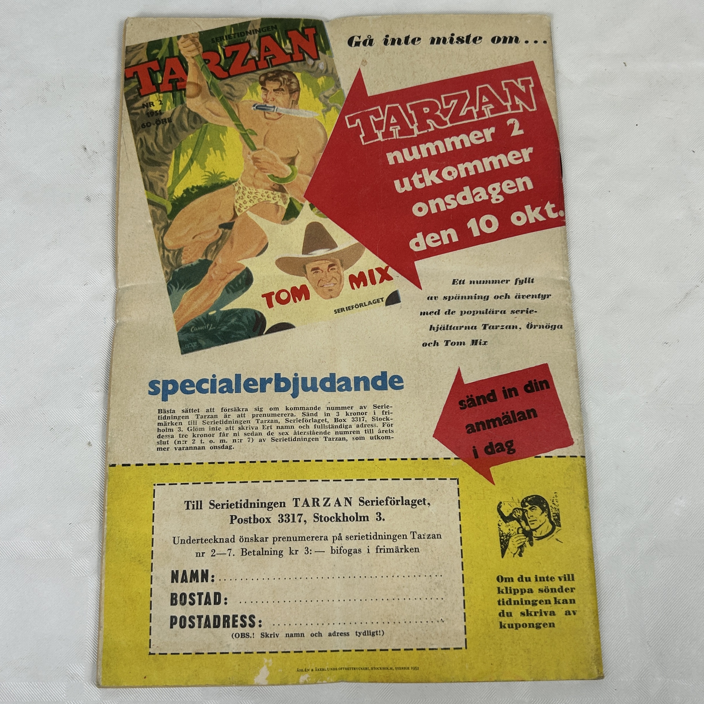 Serietidning, "Tarzan", Nr 1, 1951.