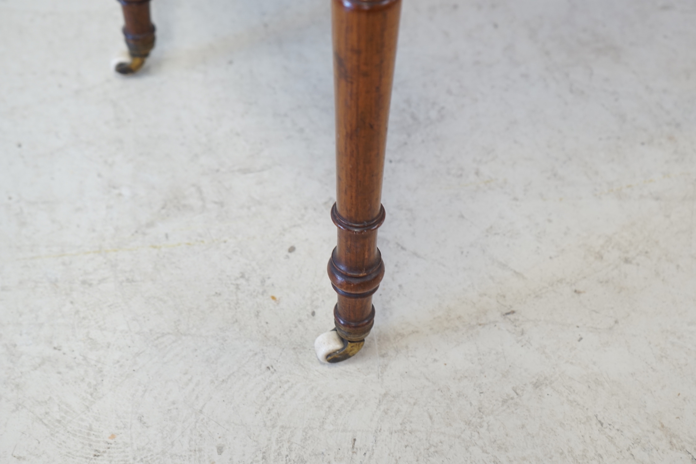 Sidobord, björk/marmorskiva, hjultrissor, omkring 1900.
