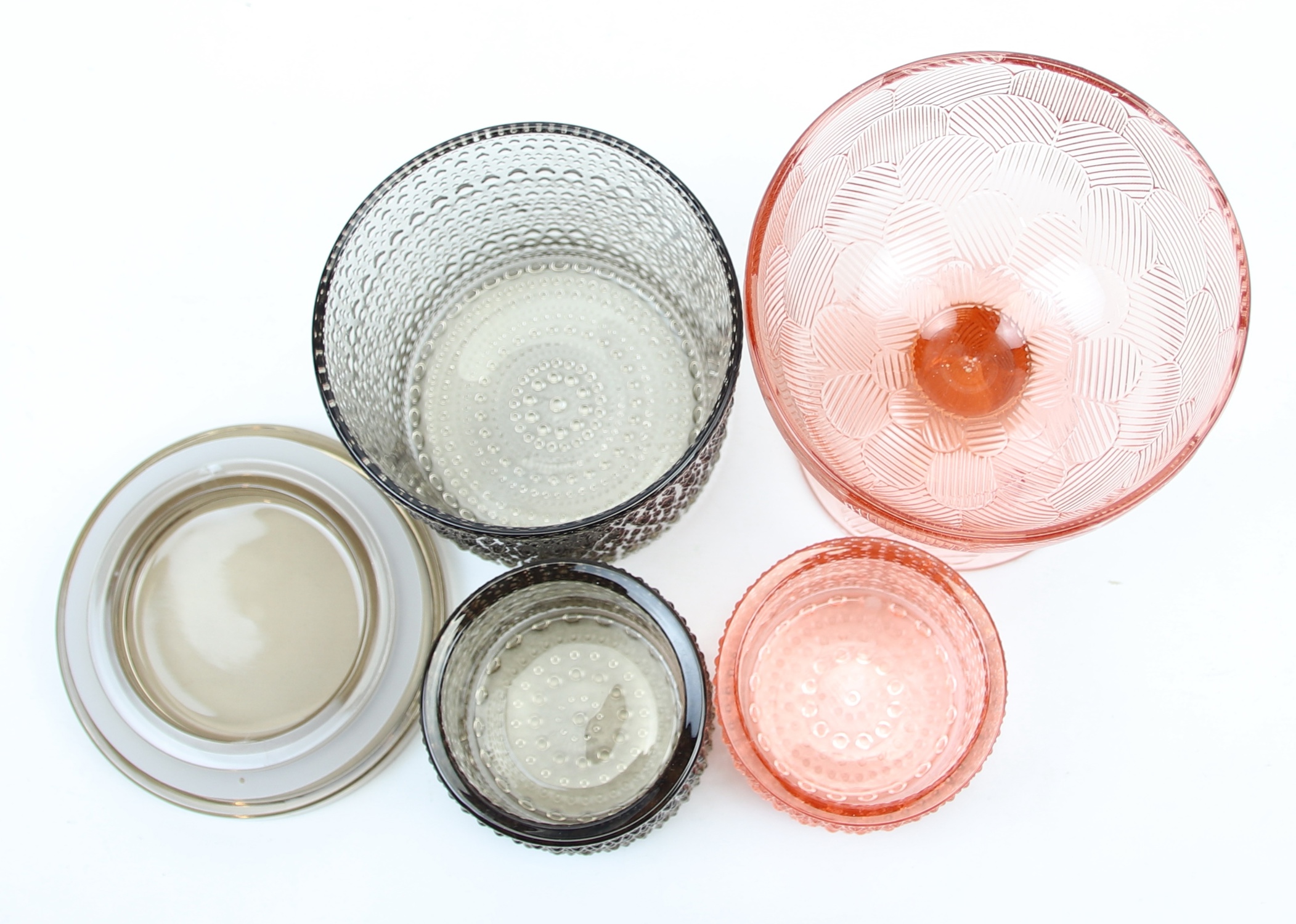 Ljuslyktor, skål, burk och karaff, 5 delar, glas, Iittala och Rosendahl.
