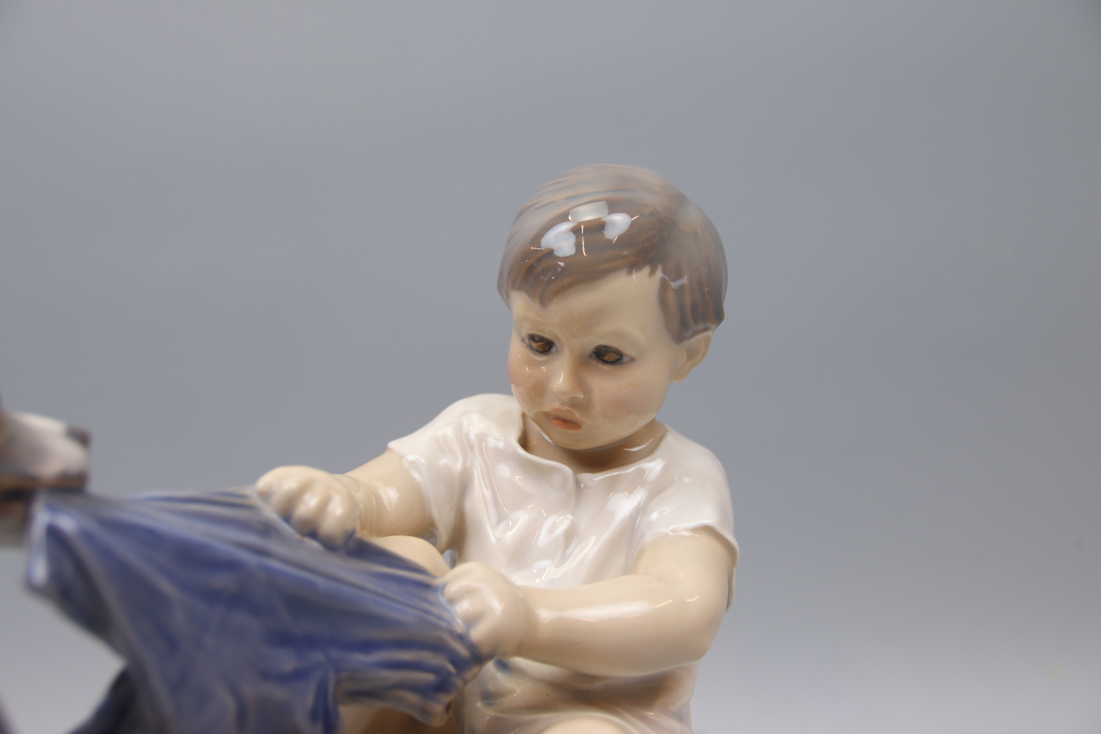 Bilder Figurin, porslin, pojke med hund nr. 1072, Dahl Jensen.