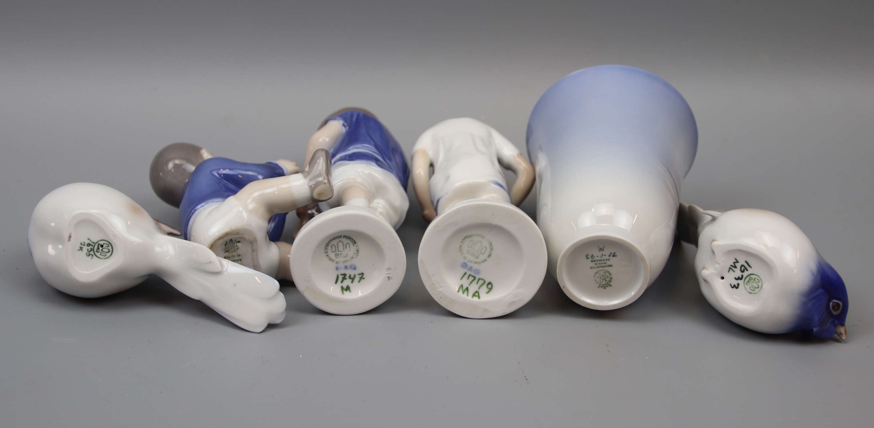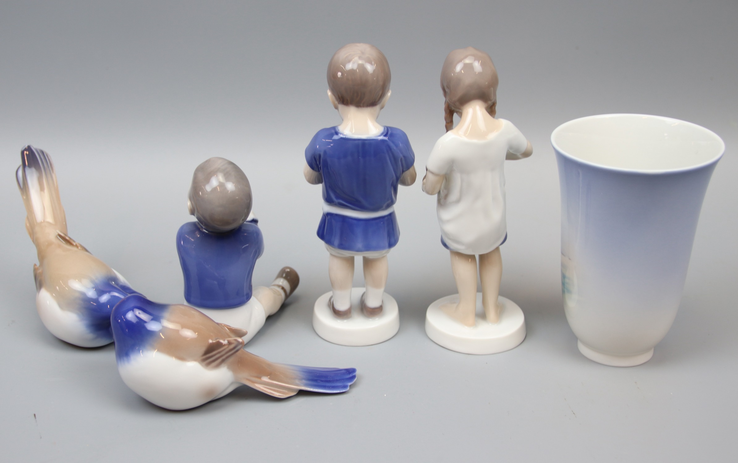 Bilder Figuriner och vas, 6 delar, porslin, Bing & Gröndahl, Danmark.