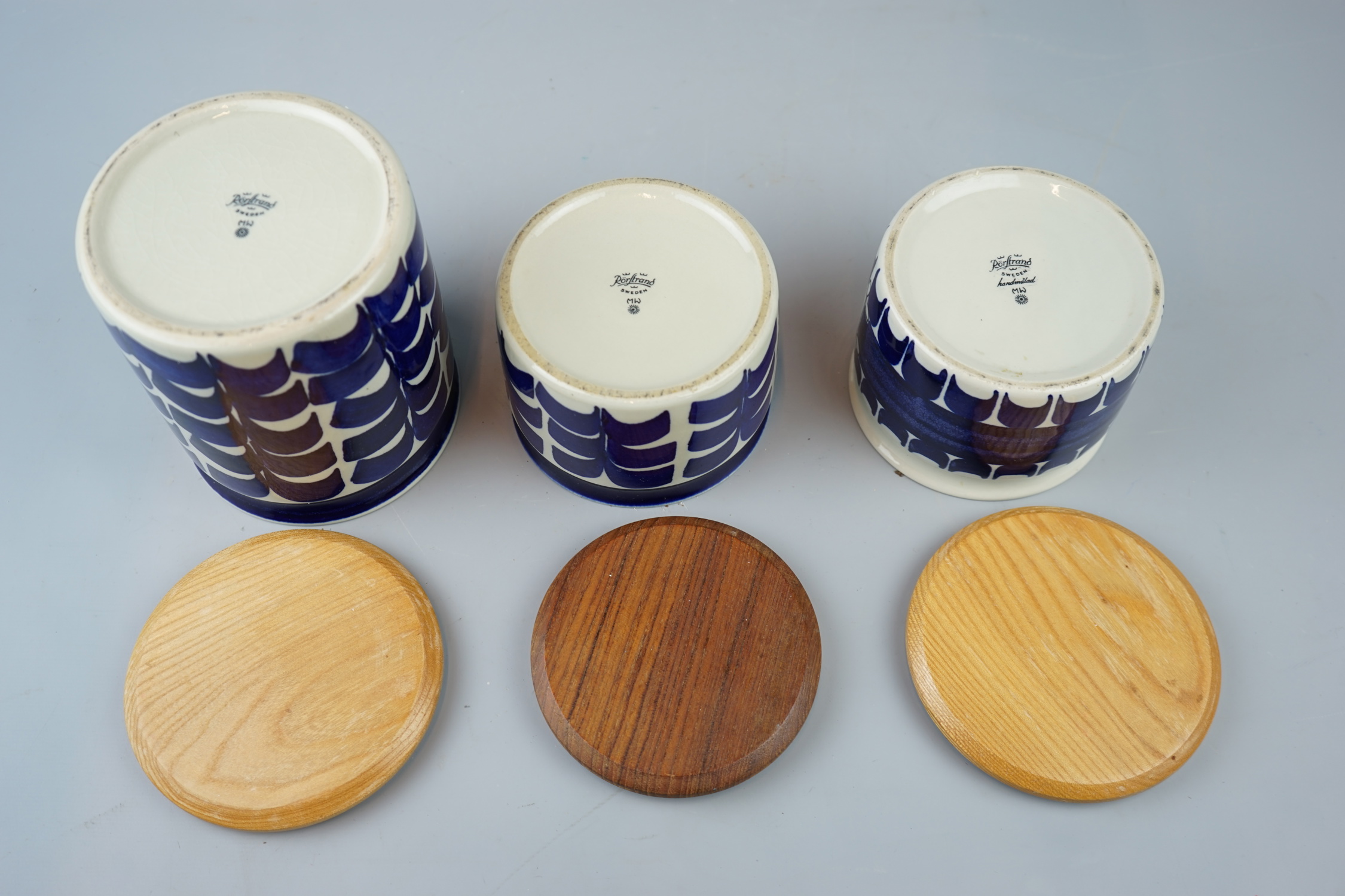 Marianne Westmann, burkar, 3 st, stengods, Rörstrand.