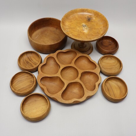 Träskålar, 1900-tal, bland annat teak, diameter 35 cm och mindre