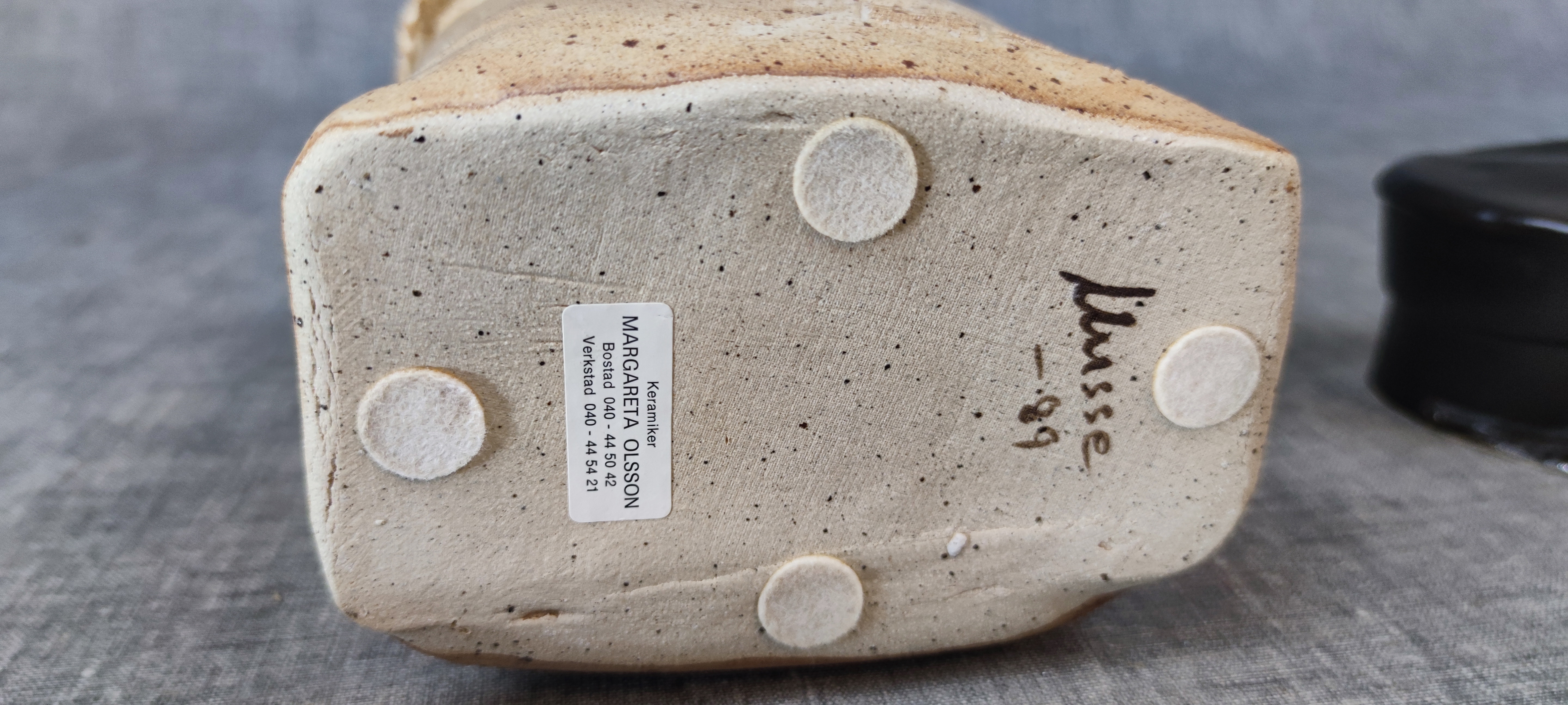Auktioner Keramik & Porslin Keramikvas & keramikhatt. Keramiker Margareta Olsson, Malmö. 1980-talet.
