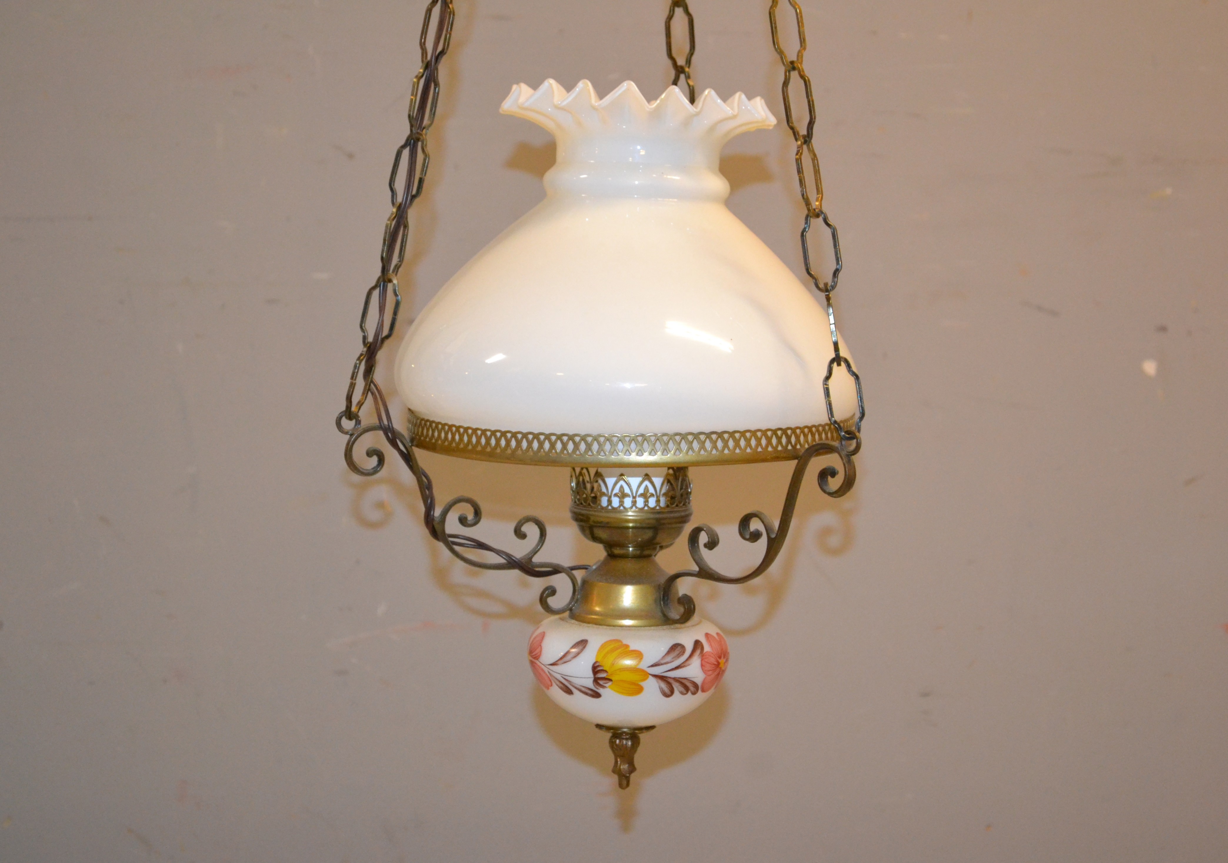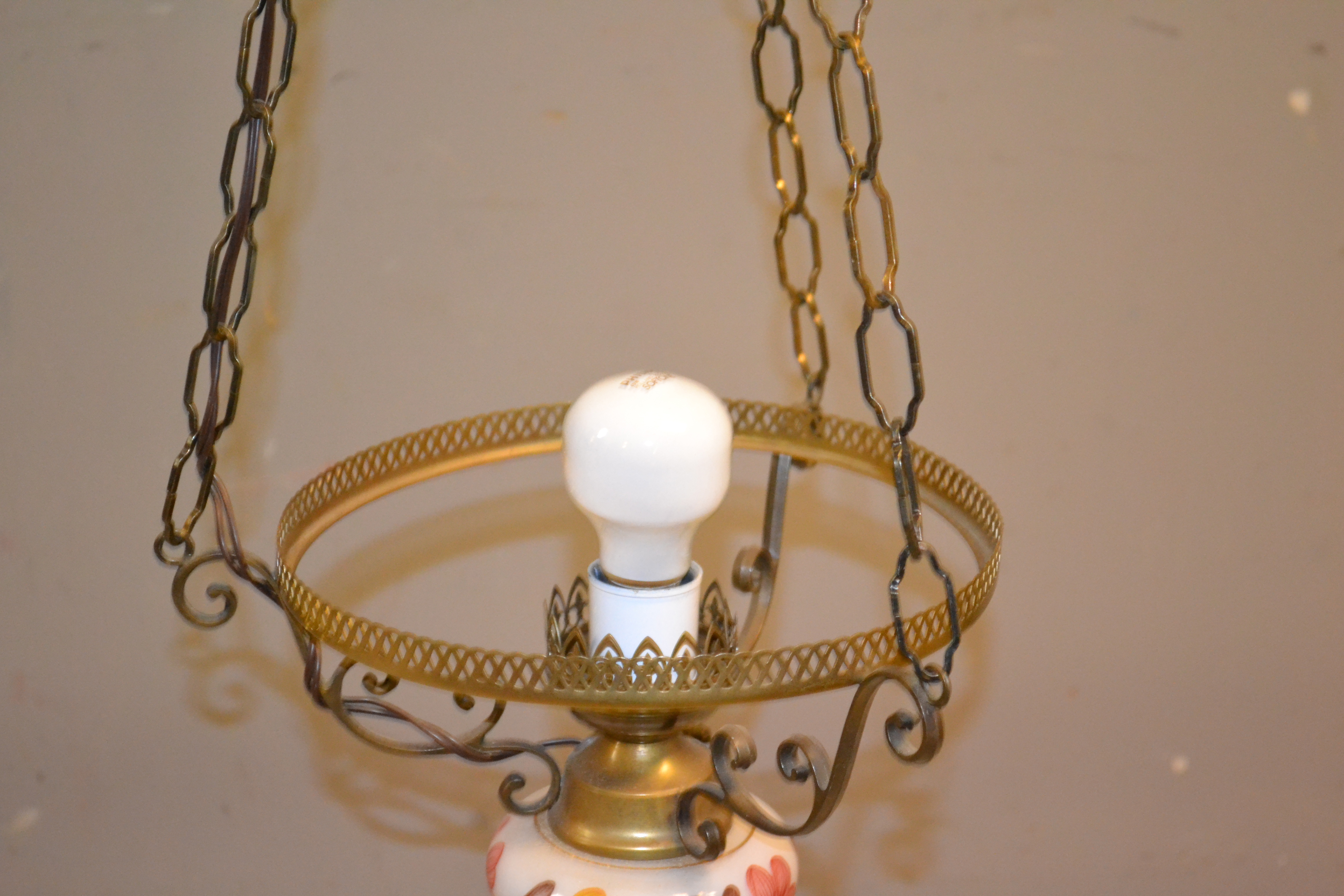 Taklampa. Porslin, glas & metall, 1900-talet.